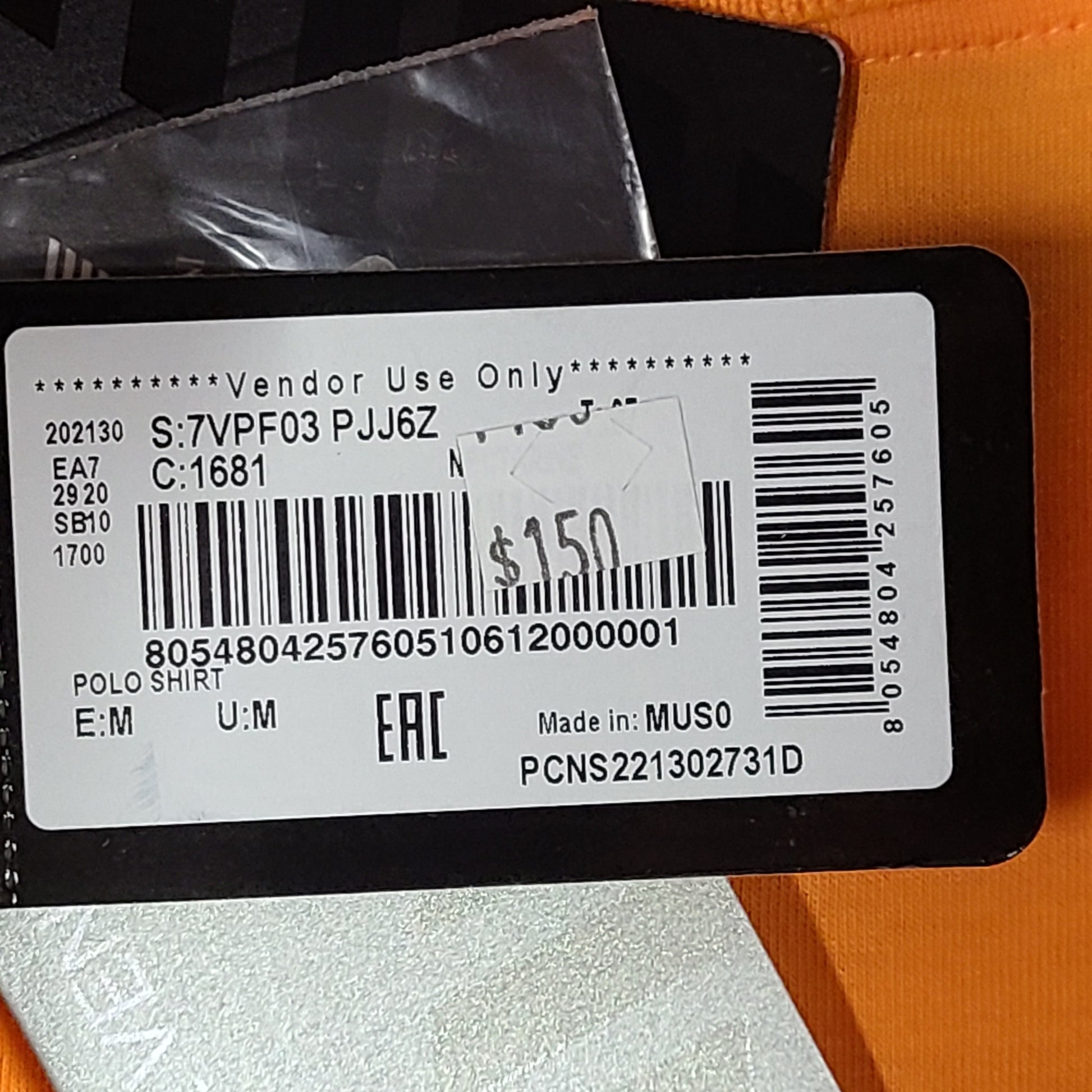 Emporio Armani EA7 Men's Natural Ventus 7 Stretch Polo Shirt Orange M NWT