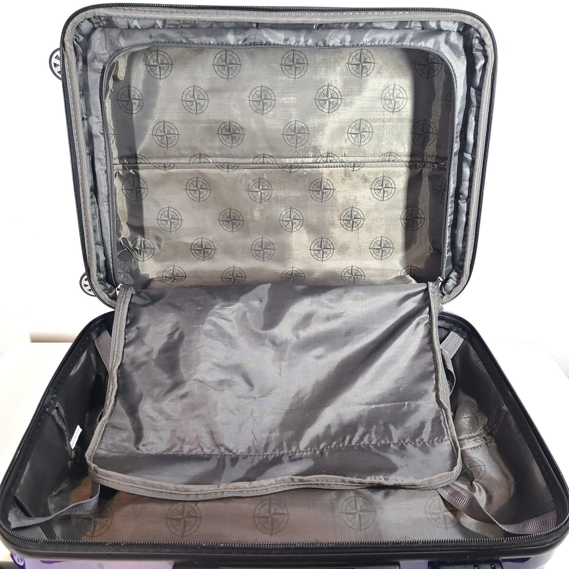 Fully lined interior with packing divider and cross straps to secure your belongings