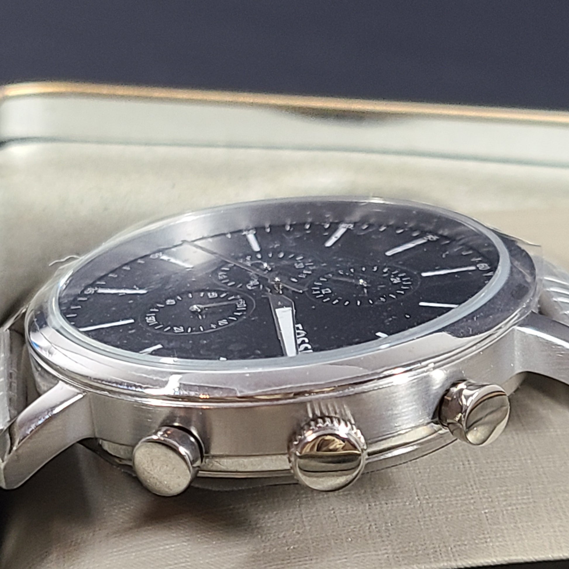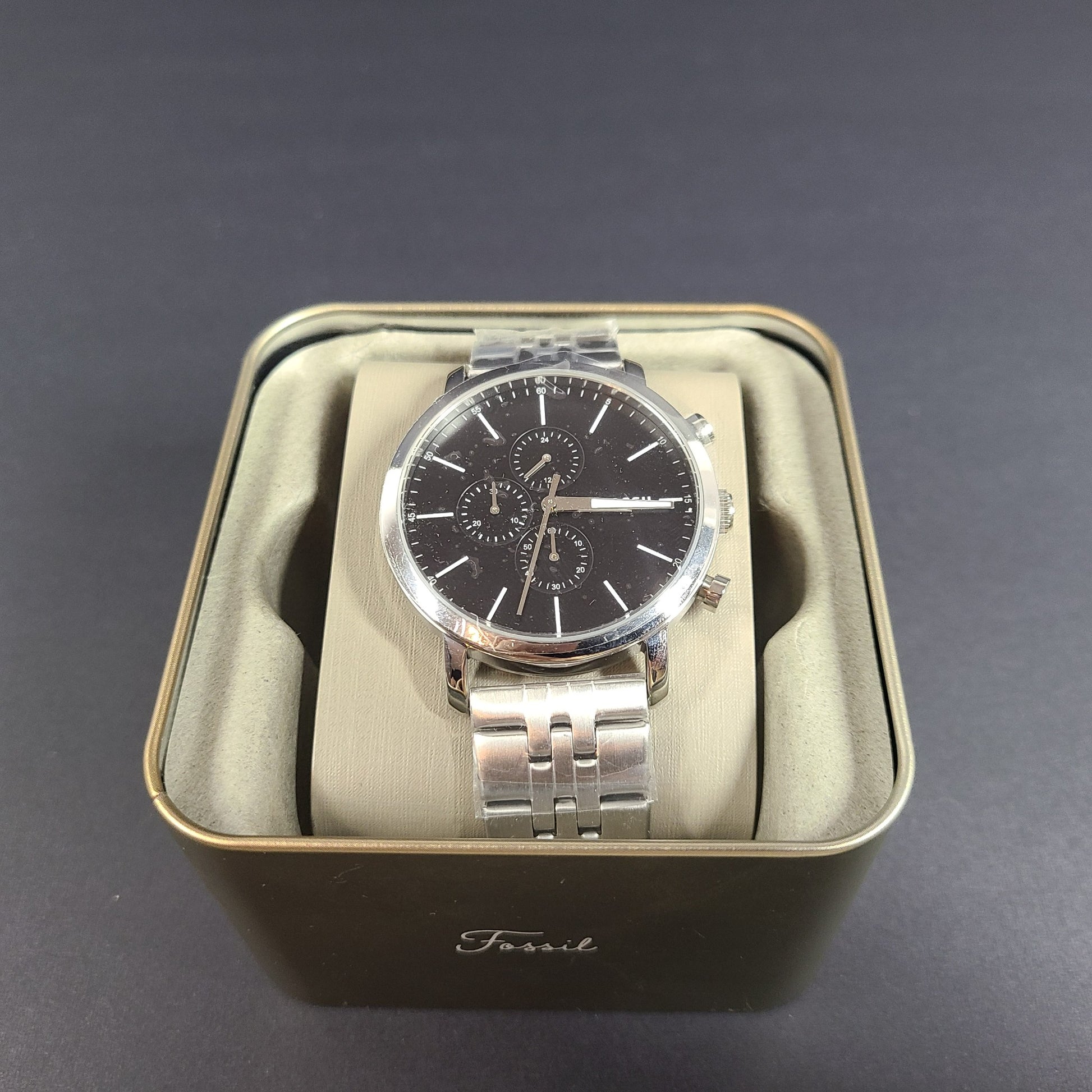 Fossil Men's Luther Chronograph Stainless Steel Watch BQ2328IE Silver Gift Box