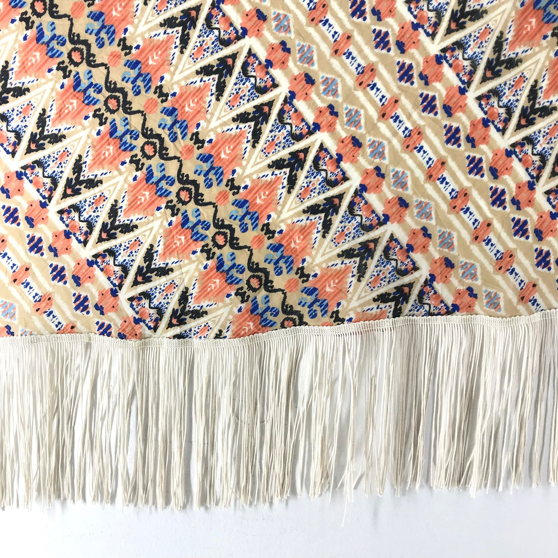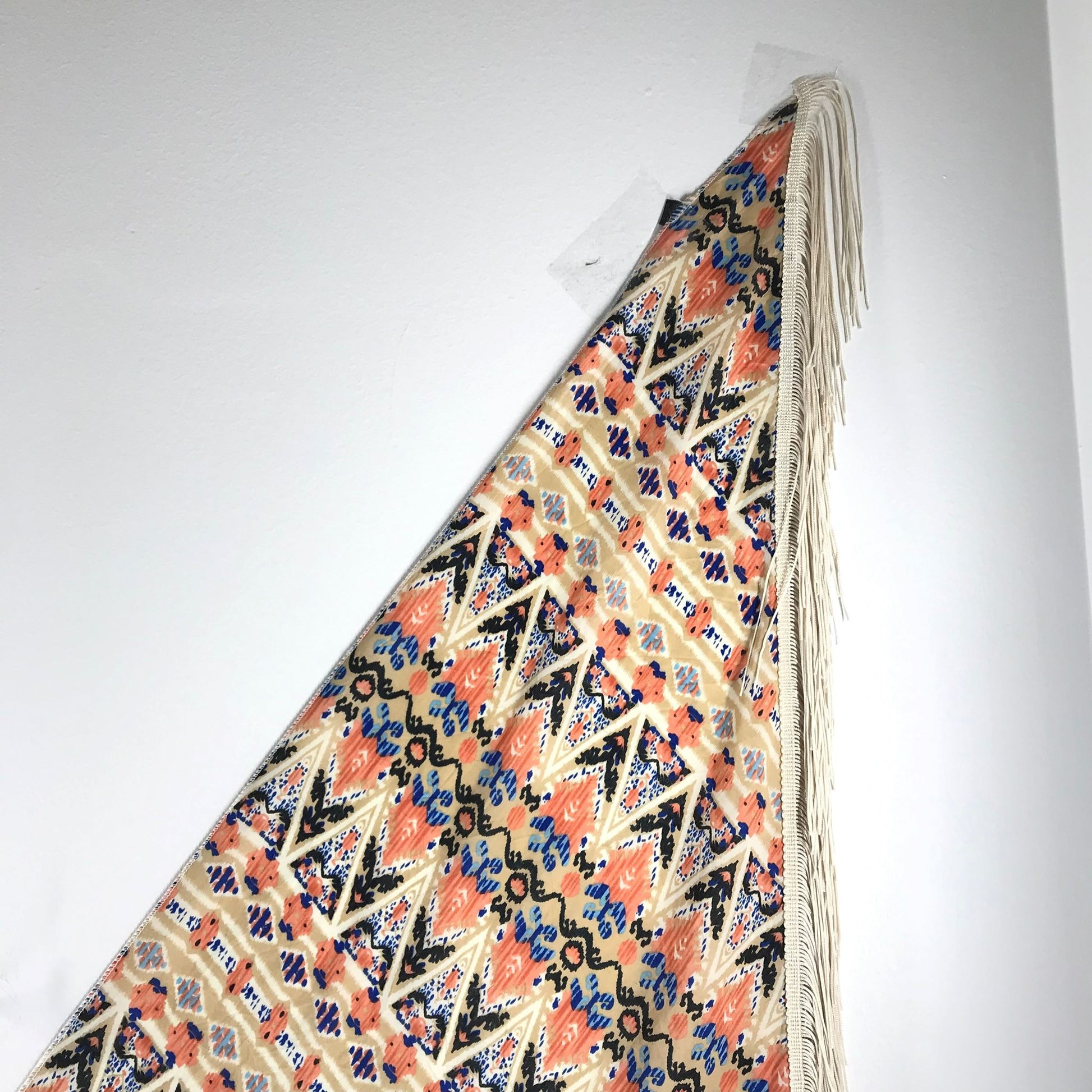 Fringed Geometric Patterned Triangular Shawl Scarf