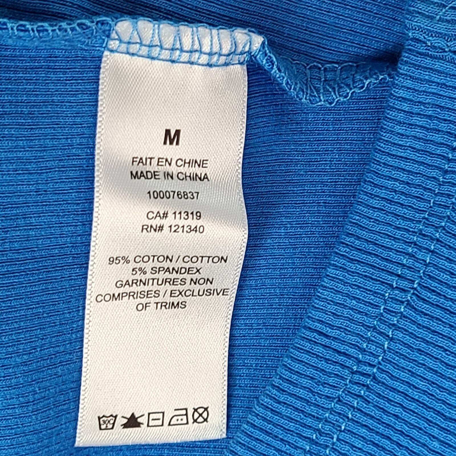 - Content: 95% cotton, 5% spandex