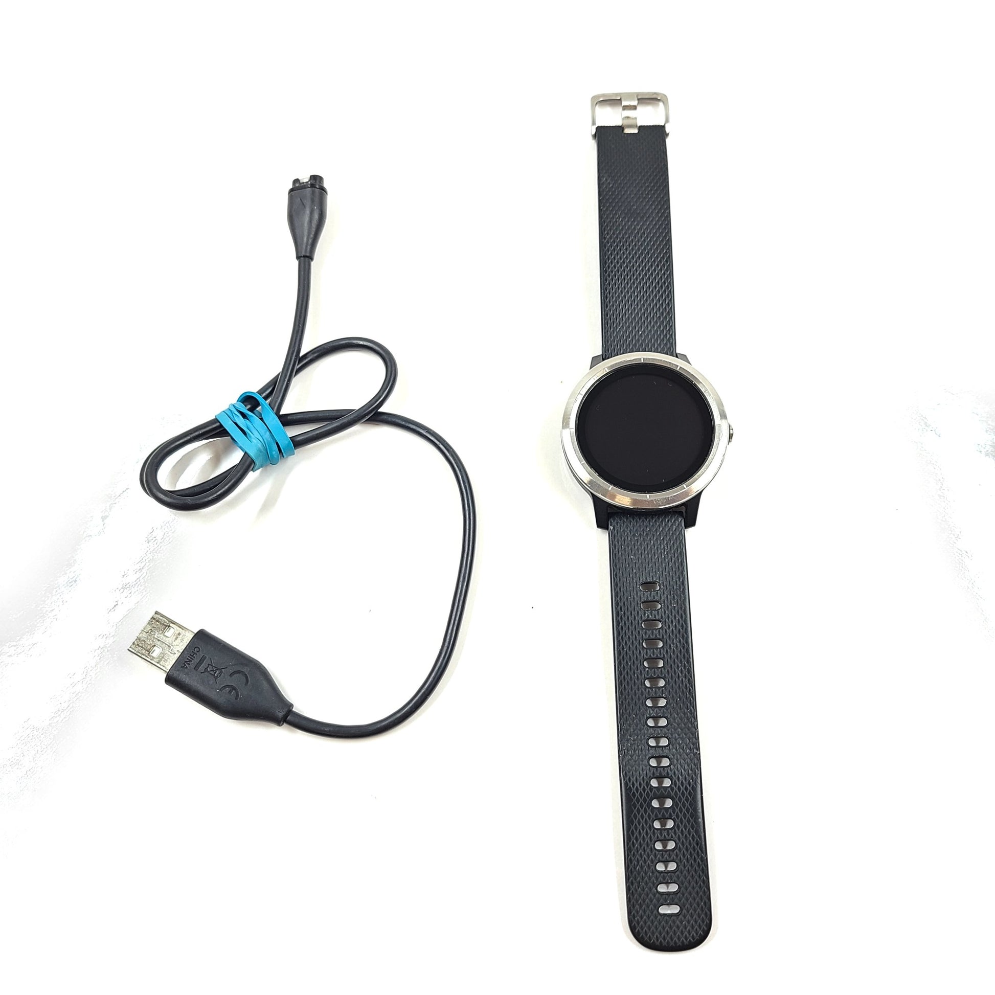 Includes: Fitness tracker watch and USB charge cable only. Original packaging not included.