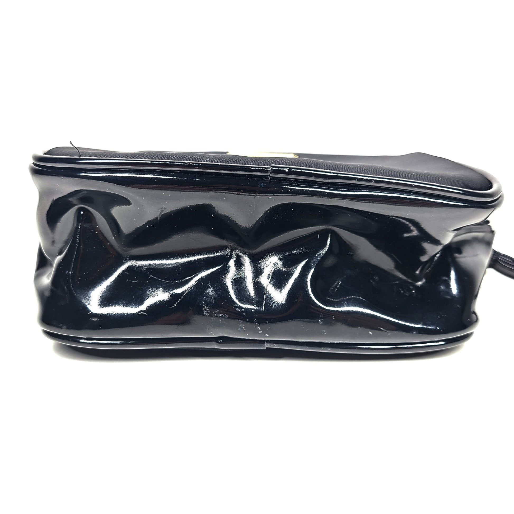 Satin/patent leather exterior.