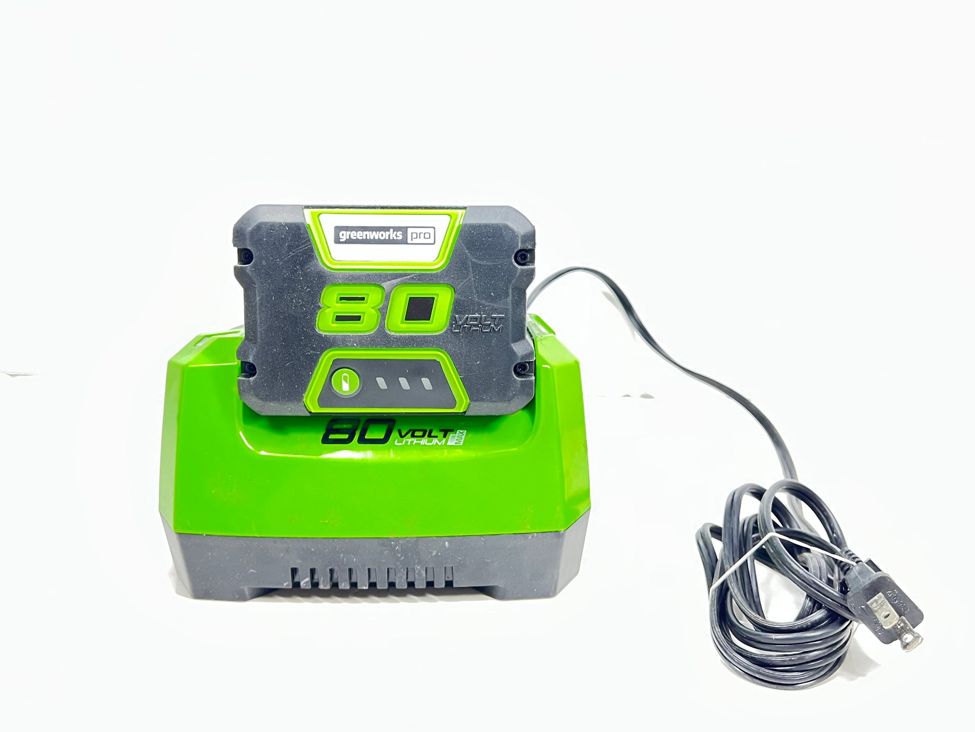Description: This listing includes a Greenworks Pro 80V Max lithium-ion battery charger (model 2901402) and a compatible 72V 2Ah 144Wh battery. Designed for Greenworks 80V Max tools, the charger delivers efficient and reliable charging performance, while the battery provides high output for extended use. Ideal for powering heavy-duty outdoor equipment.