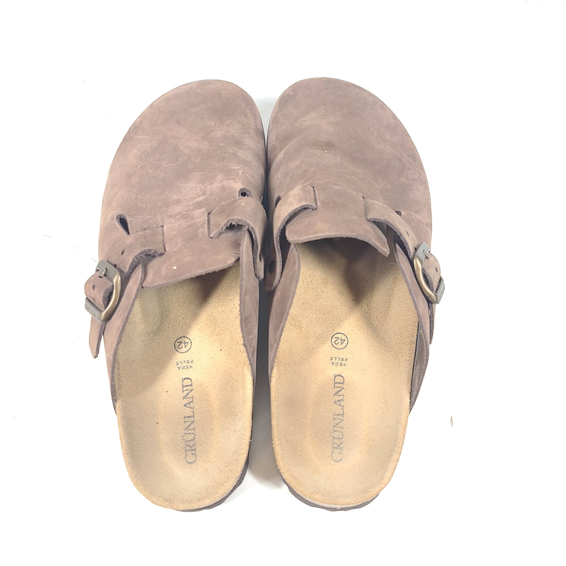 Grunland CB7033 Men's Robi Closed Leather Slipper Brown Sz 9 EUR 42 MINT