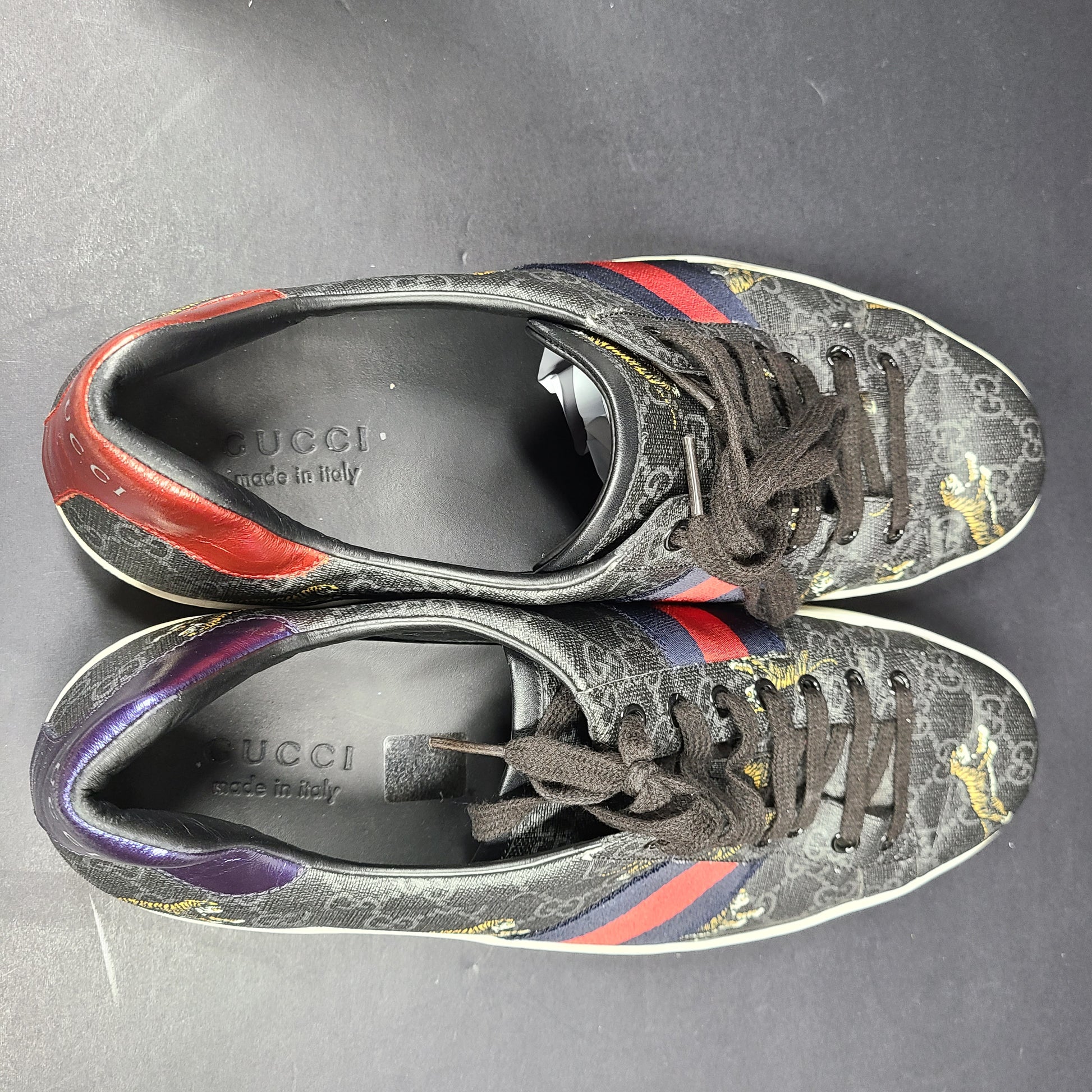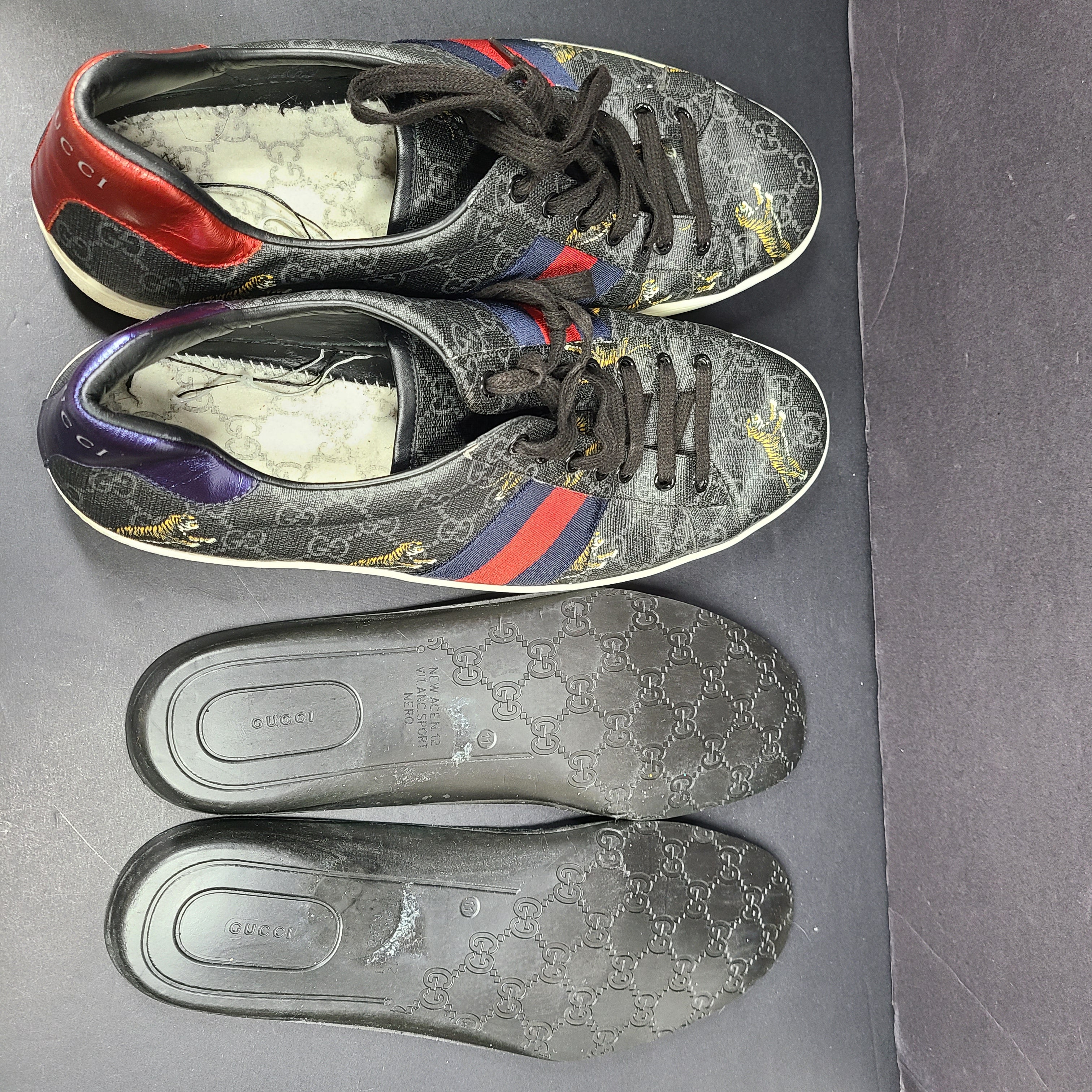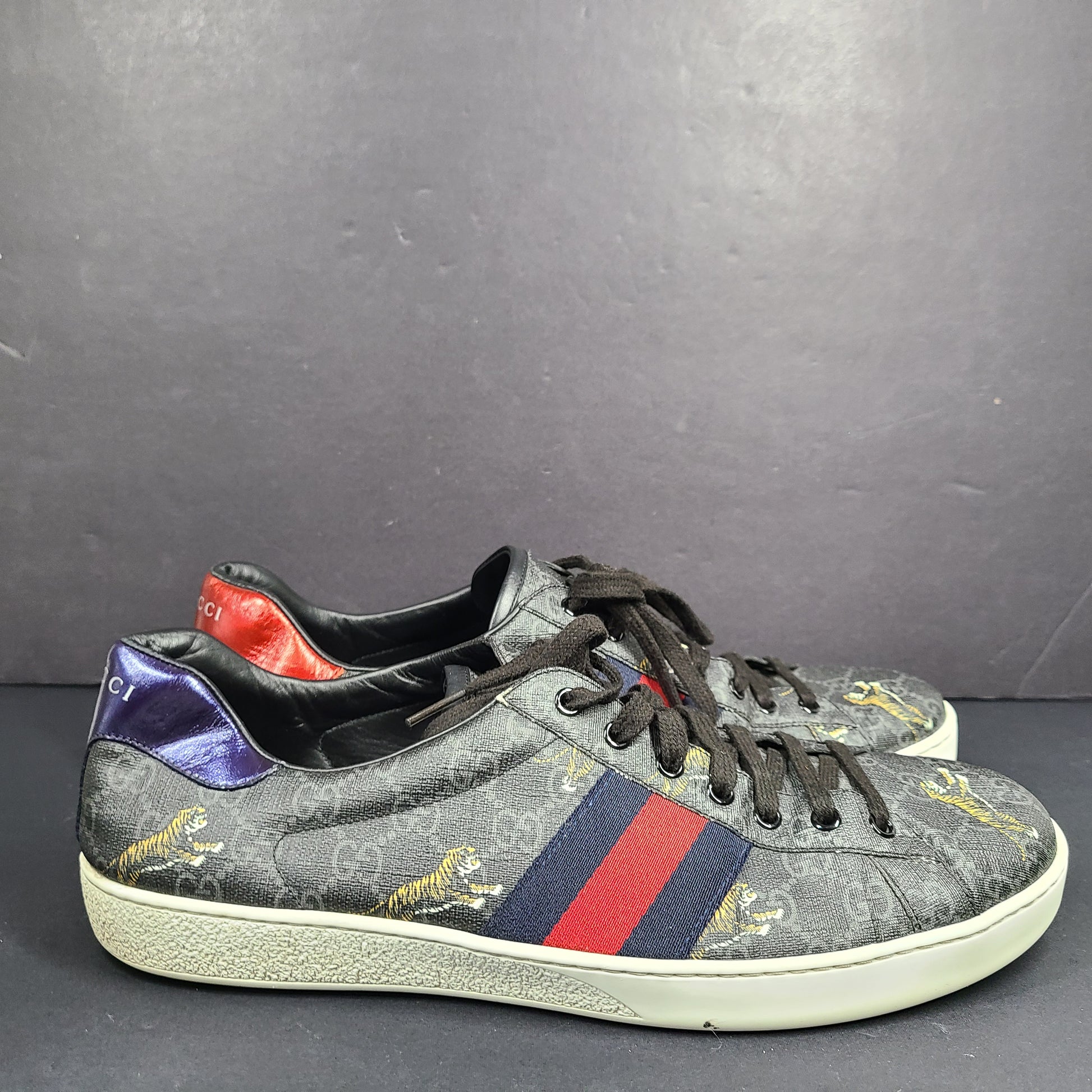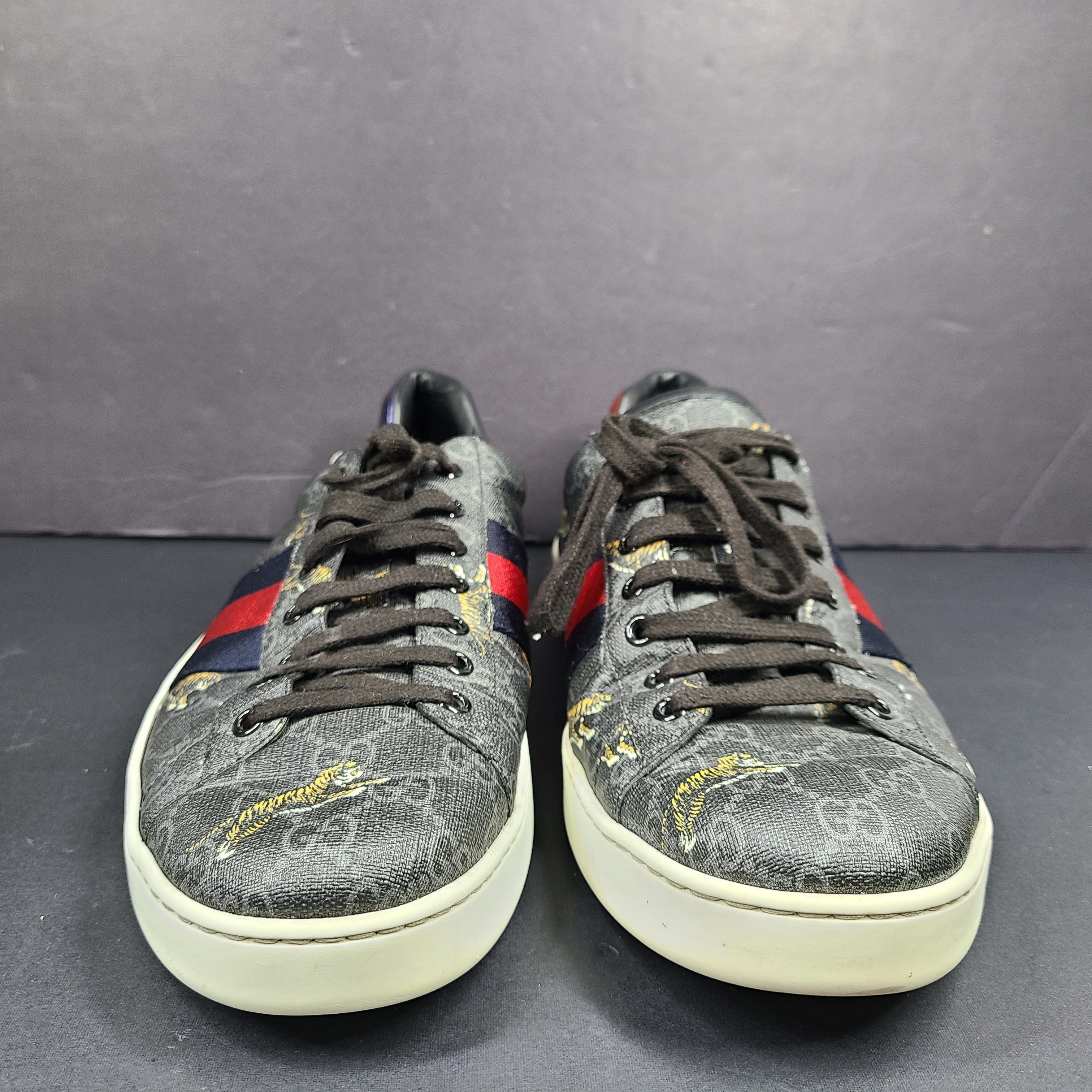 Gucci Ace GG Supreme Tiger Low Top Sneaker 429445 Gray Sz 12