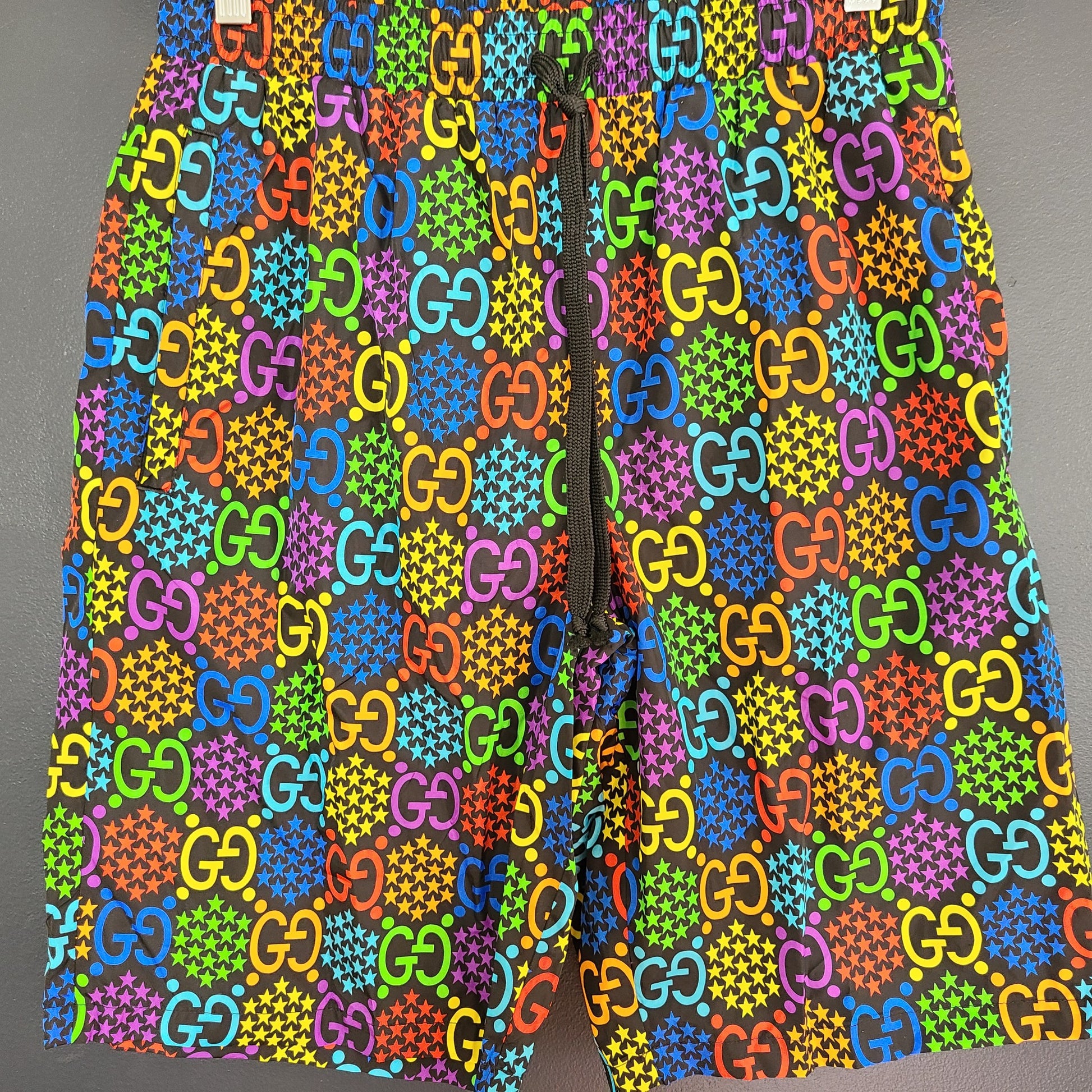Gucci GG Men's Psychedelic Swim Trunks Monogram 610764 Black Multicolor 46 (S)