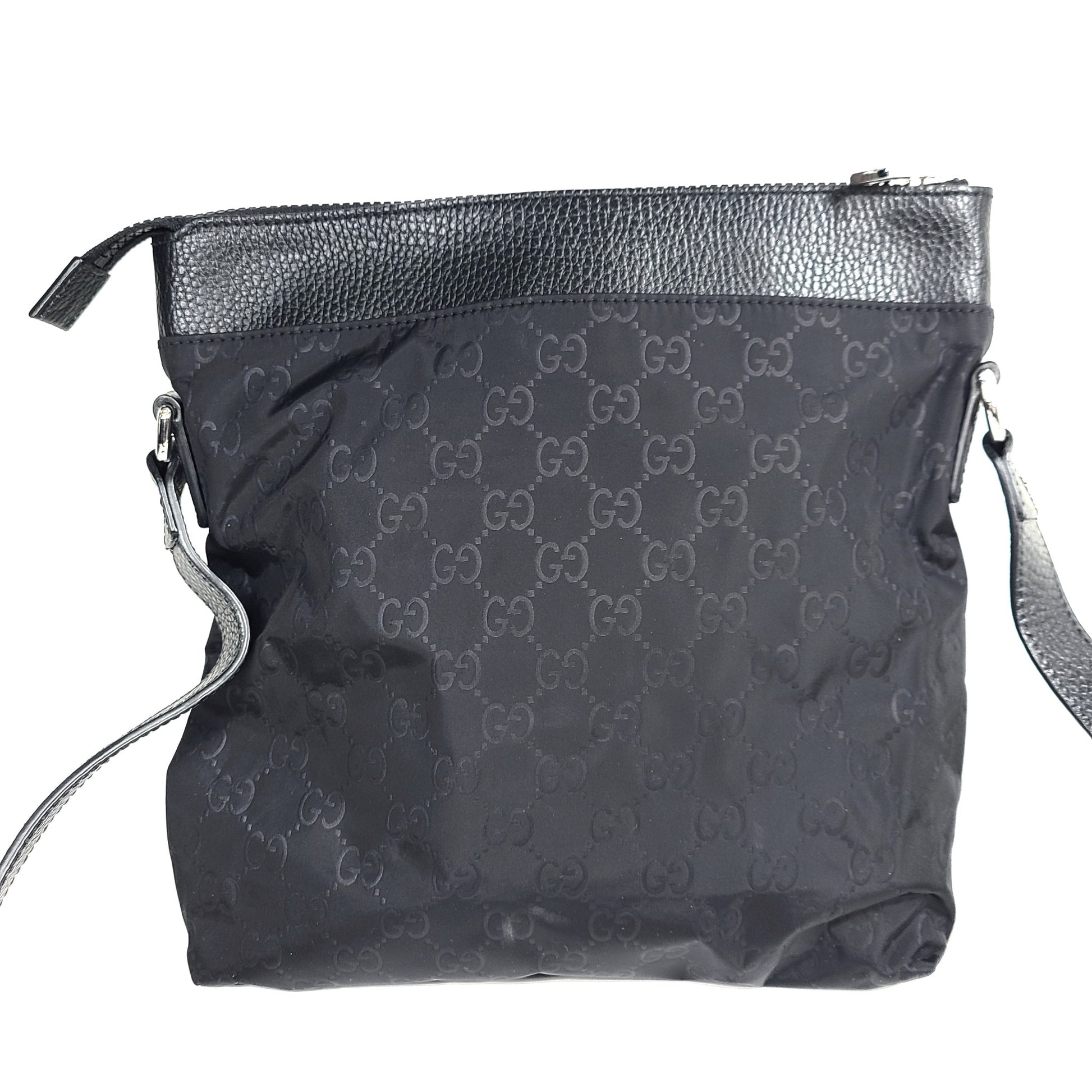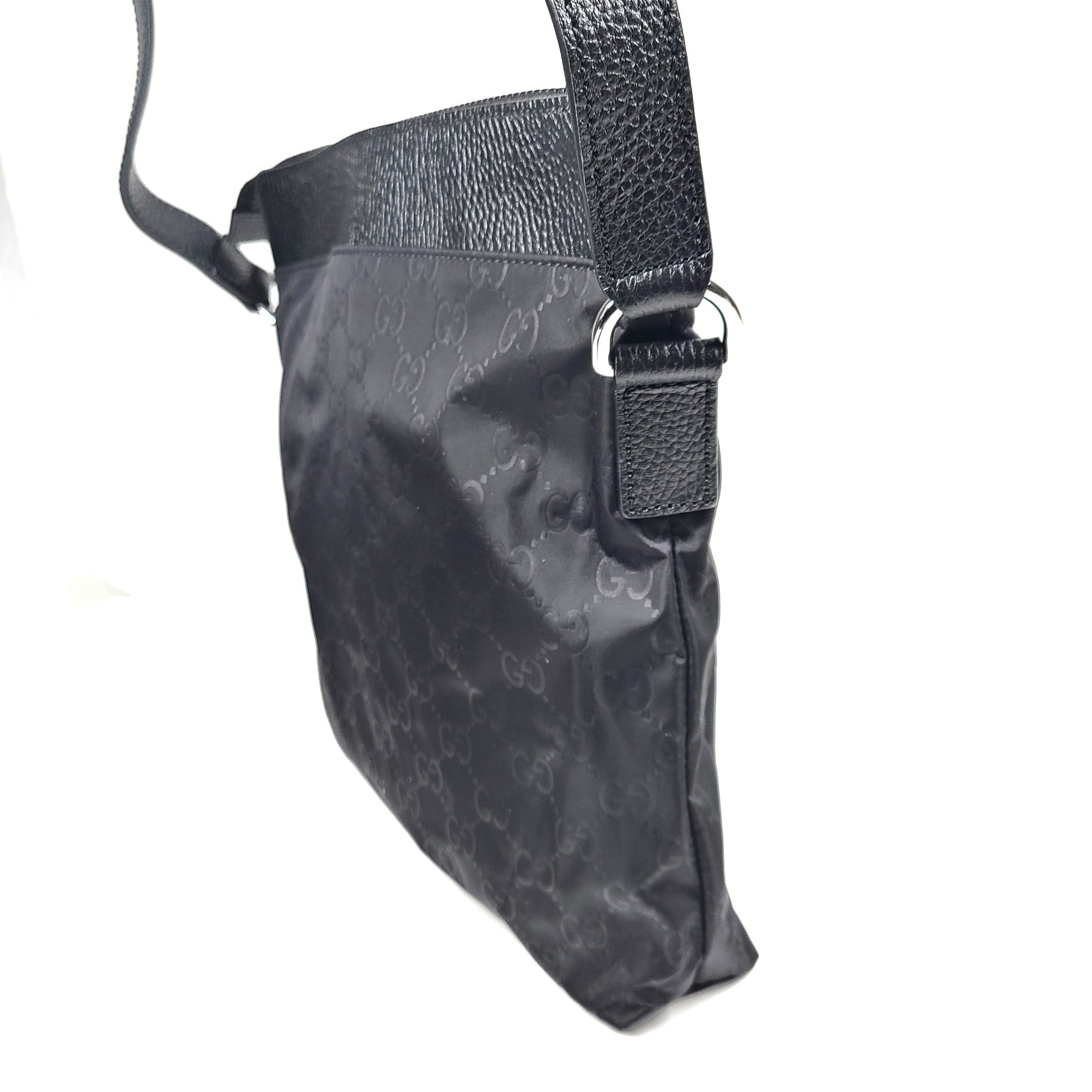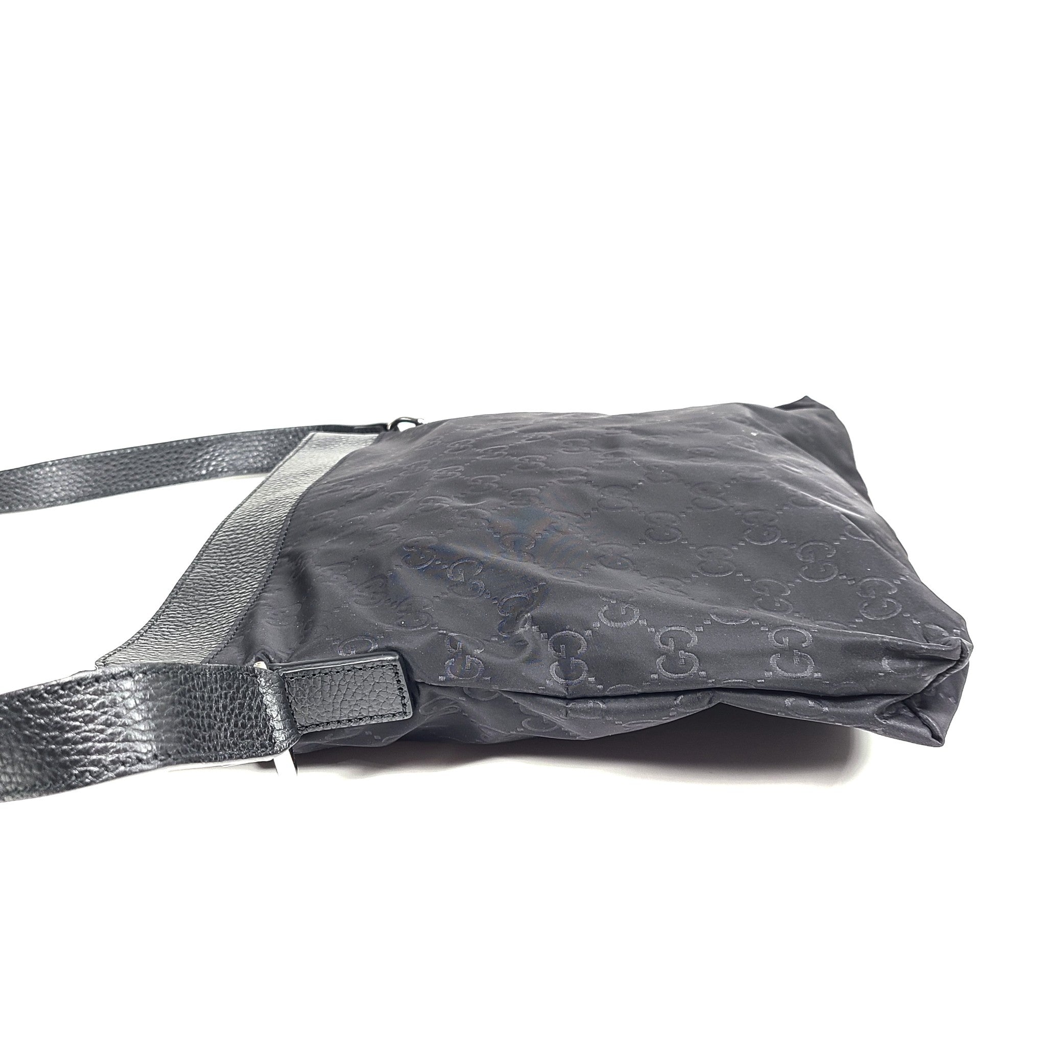 Gucci GG Nylon Monogram Dollar Calfskin Messenger Bag 510342 Crossbody Black