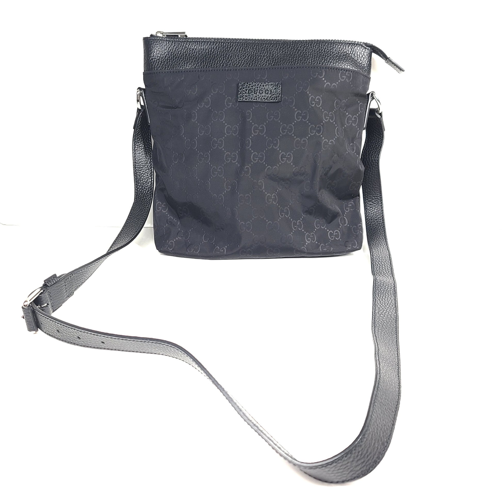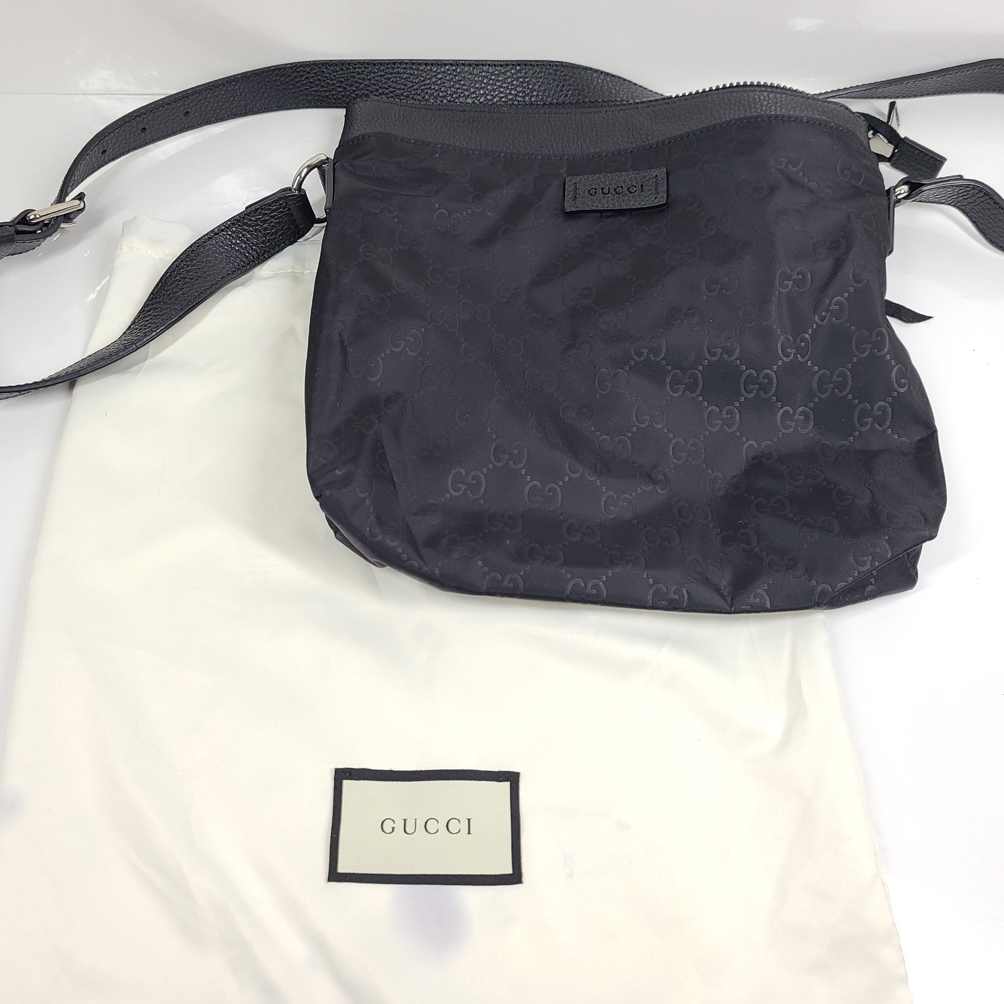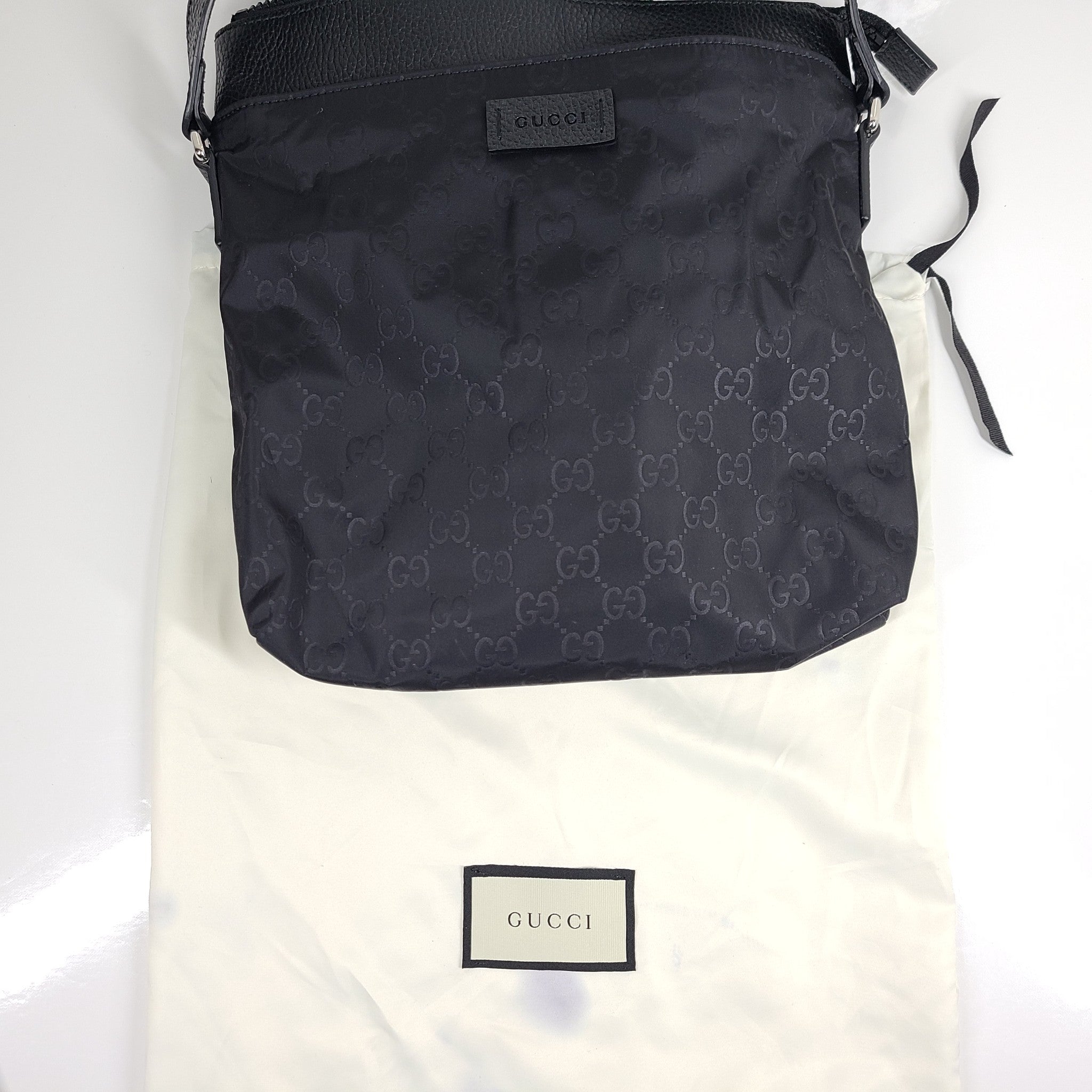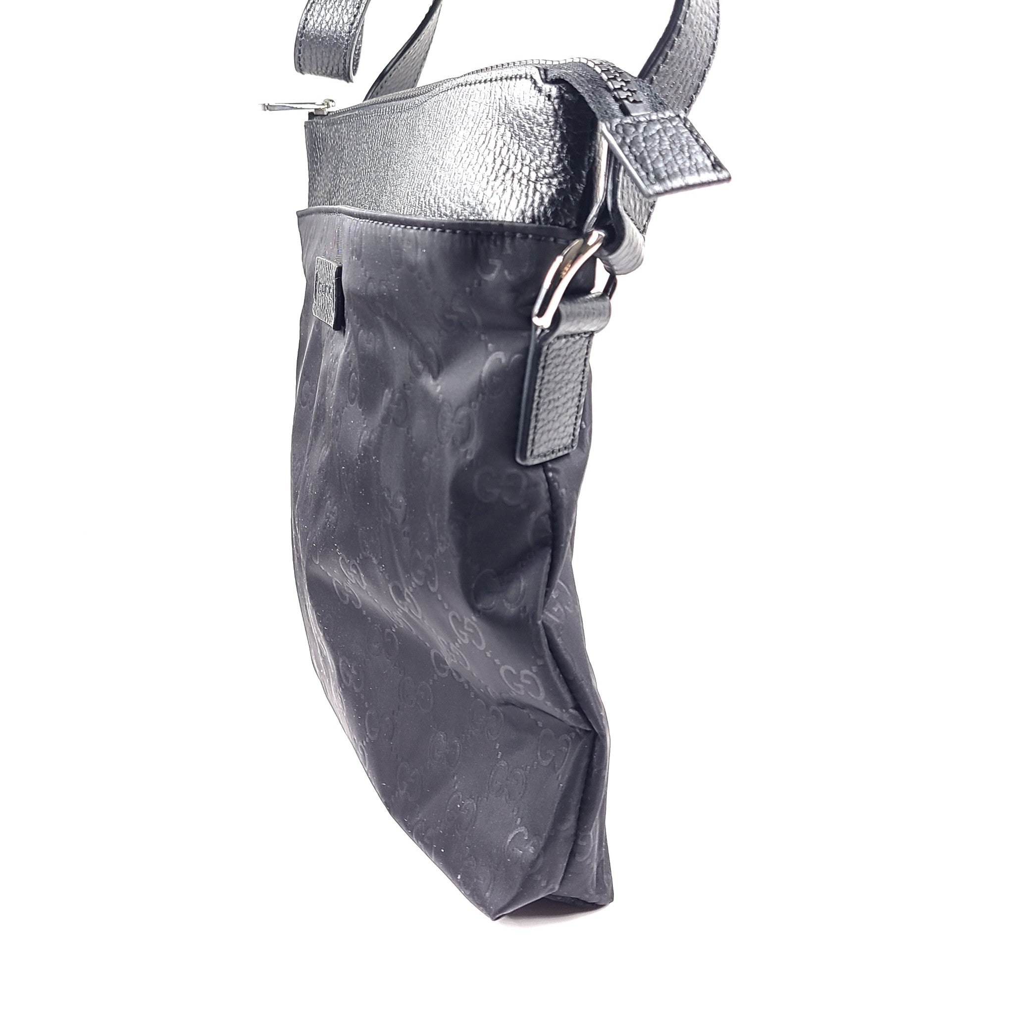Gucci GG Nylon Monogram Dollar Calfskin Messenger Bag 510342 Crossbody Black