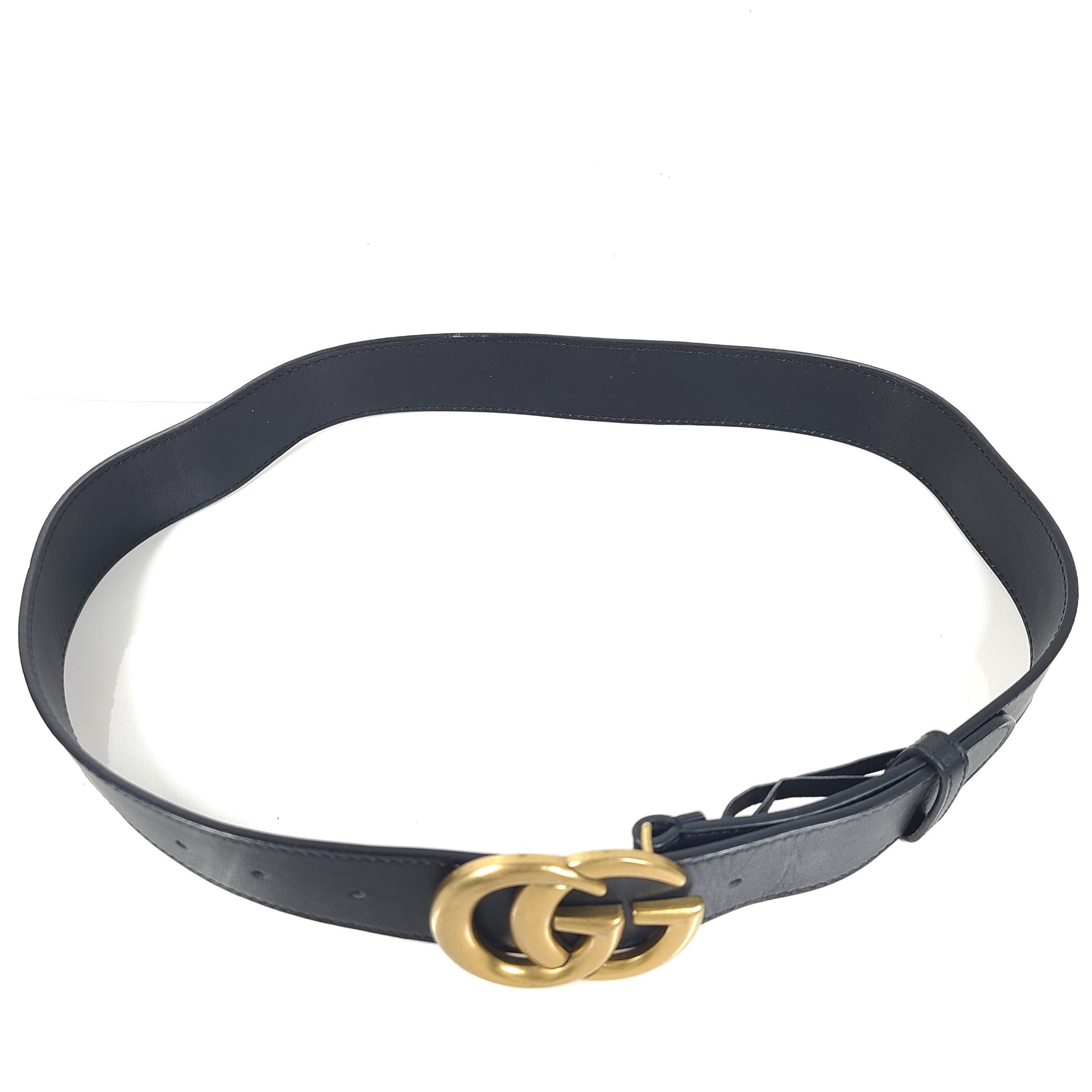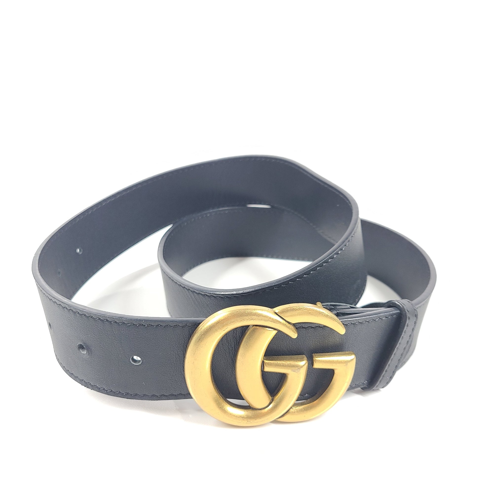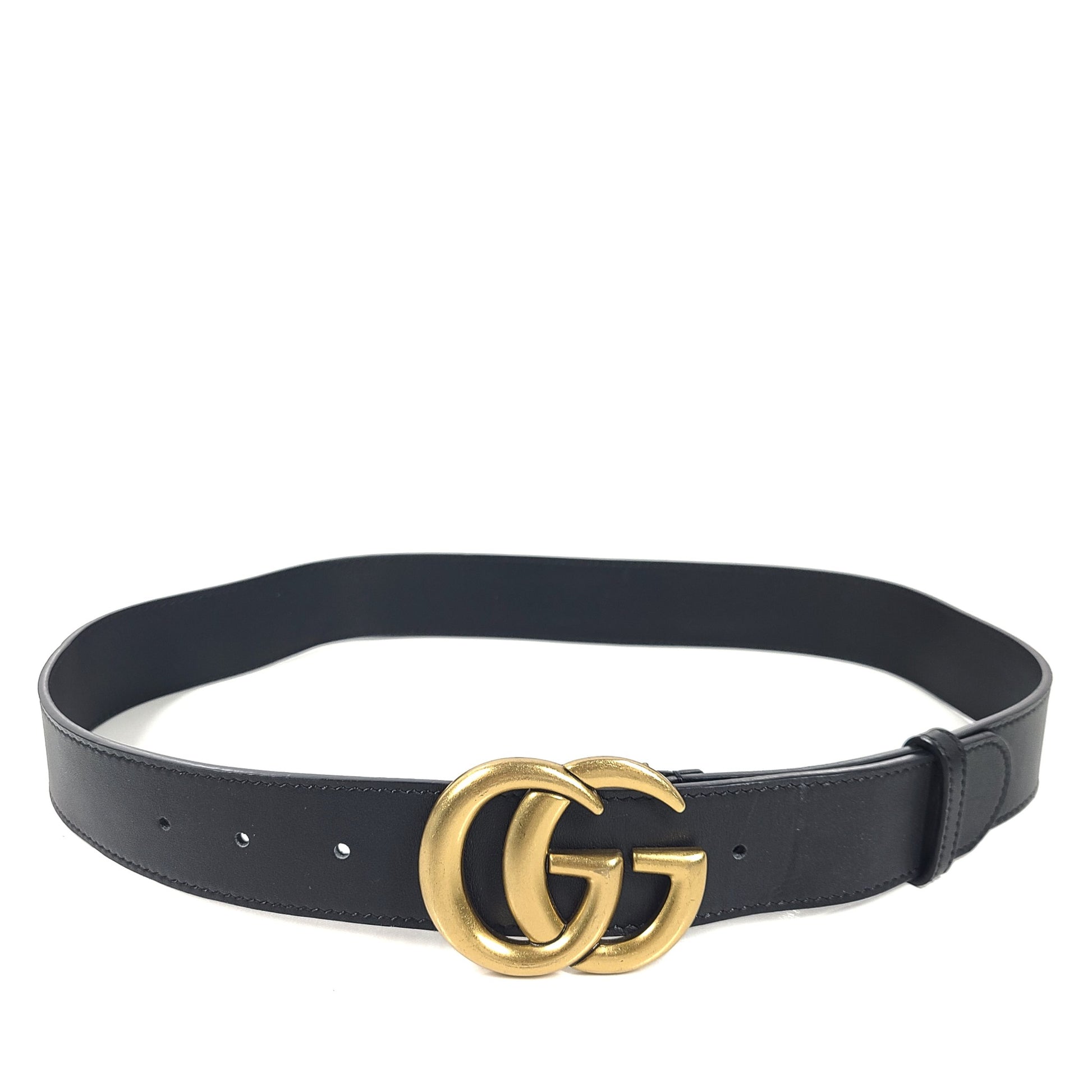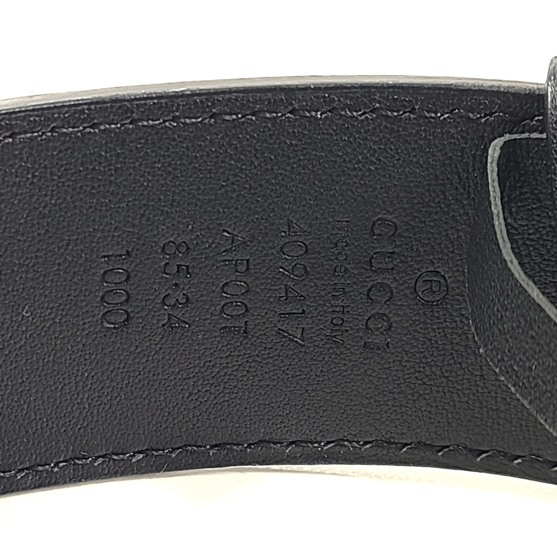 Gucci Men's GG Shiny Buckle Marmont Leather Logo Belt Black 85- 34"