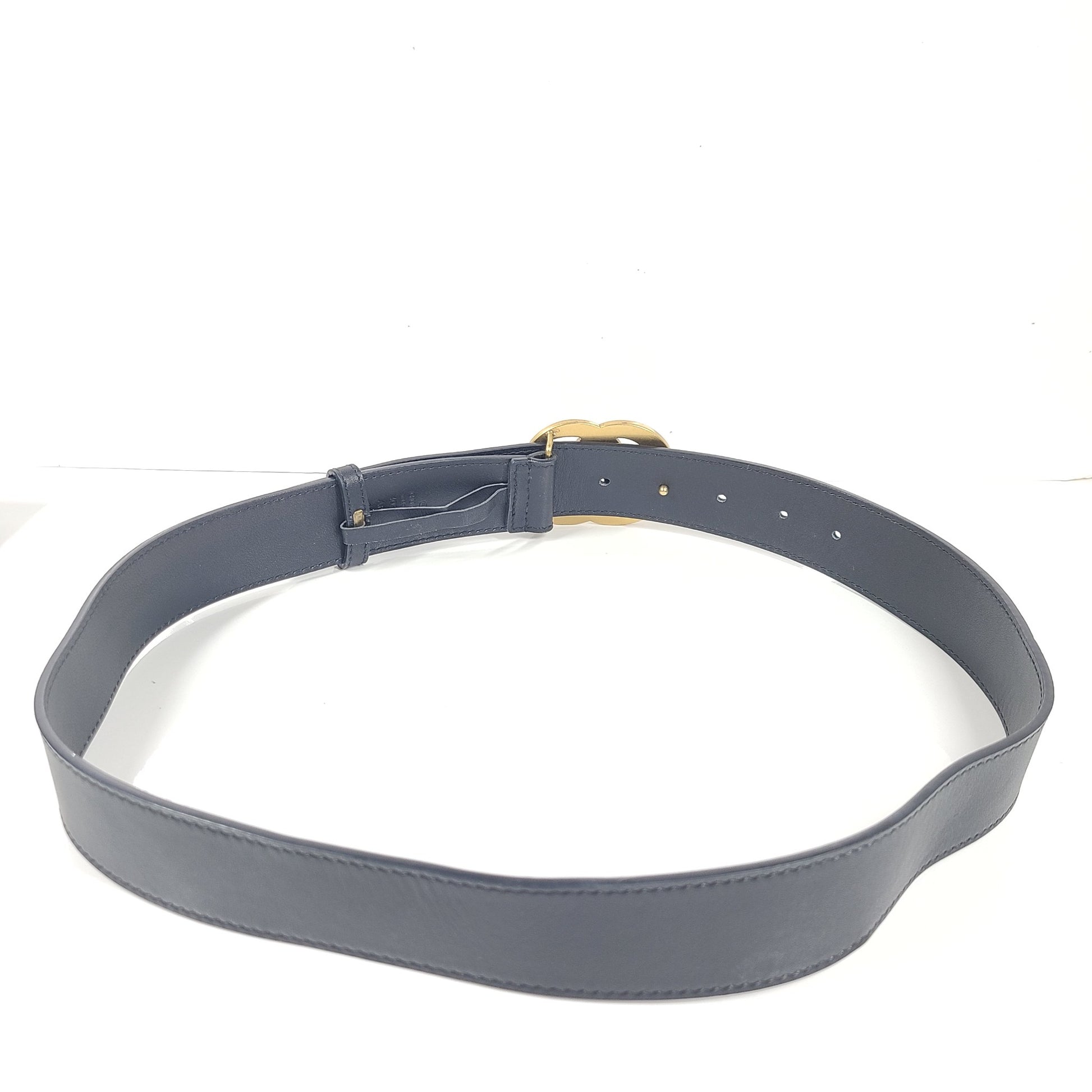 Belt measures 34" from buckle to center hole.