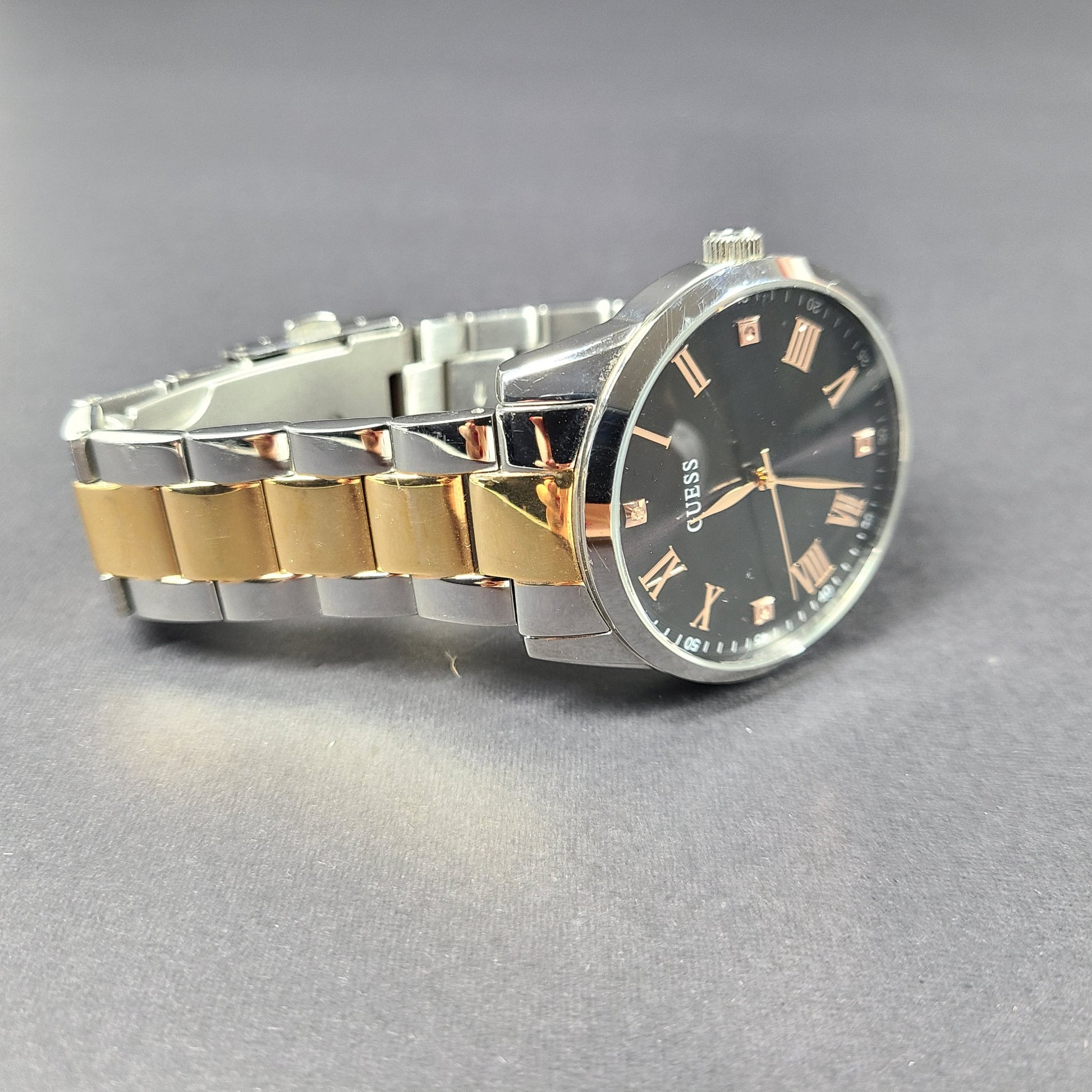 Guess Men's 'Elect' Gold and Silver Tone Stainless Steel Watch Roman Numerals