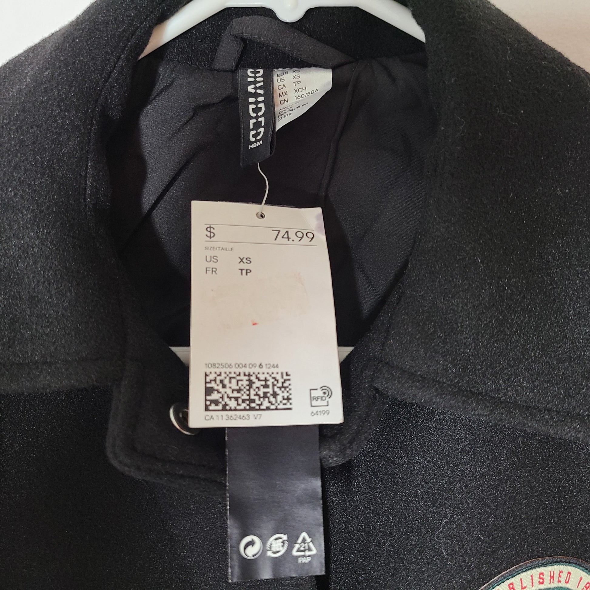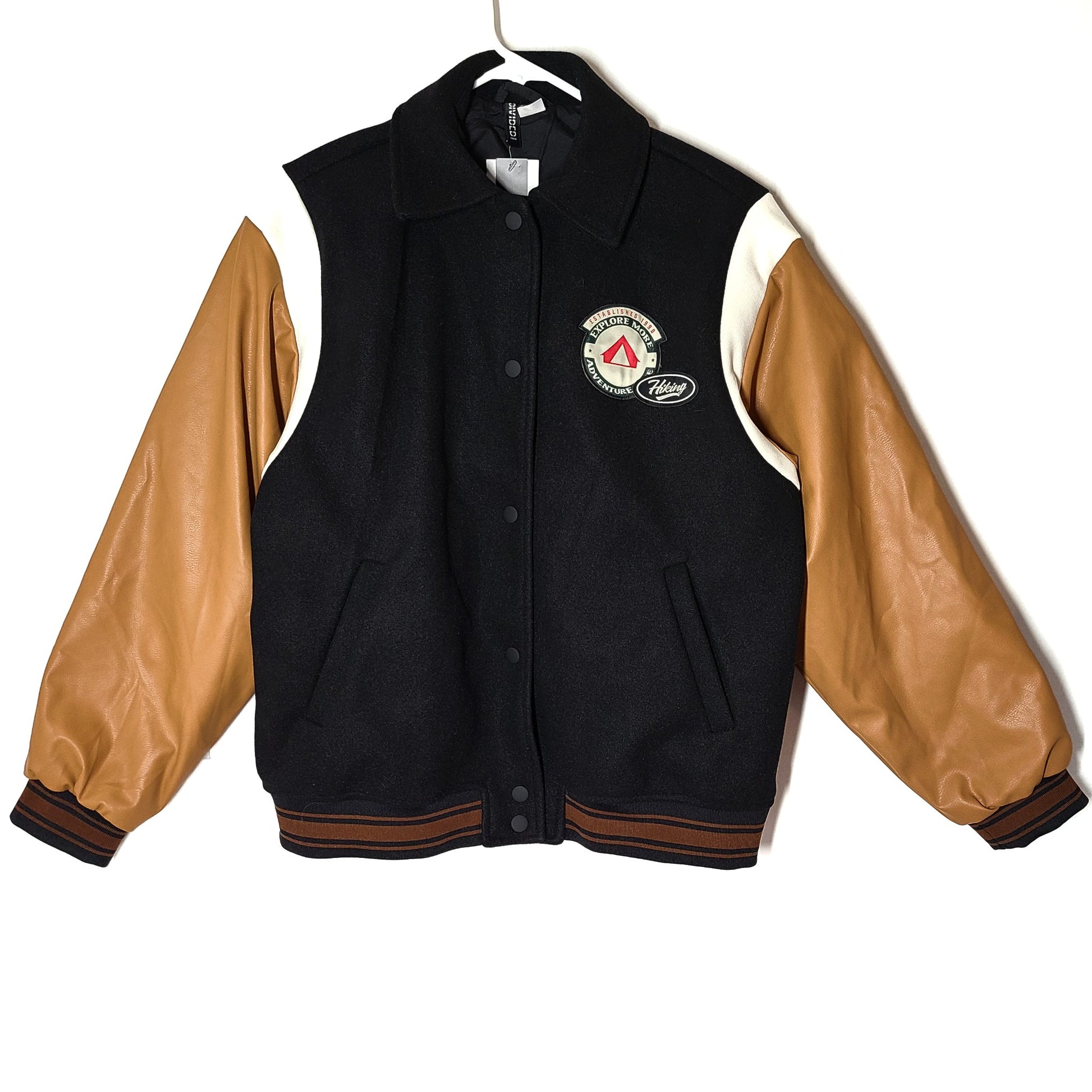 H&M Women's Baseball Varsity Jacket Outdoor Camper Black Size XS