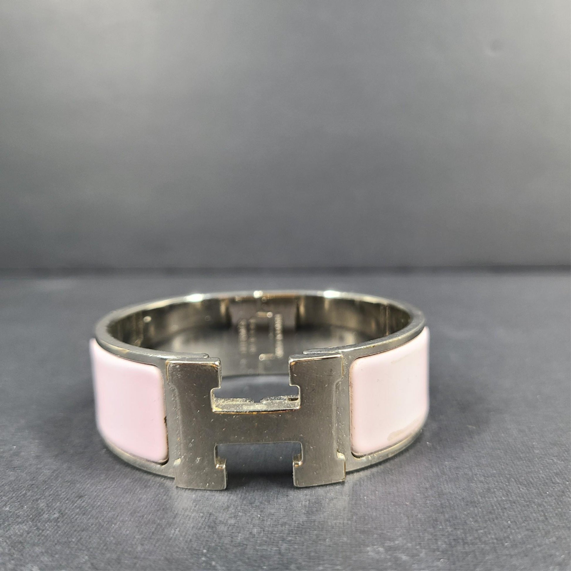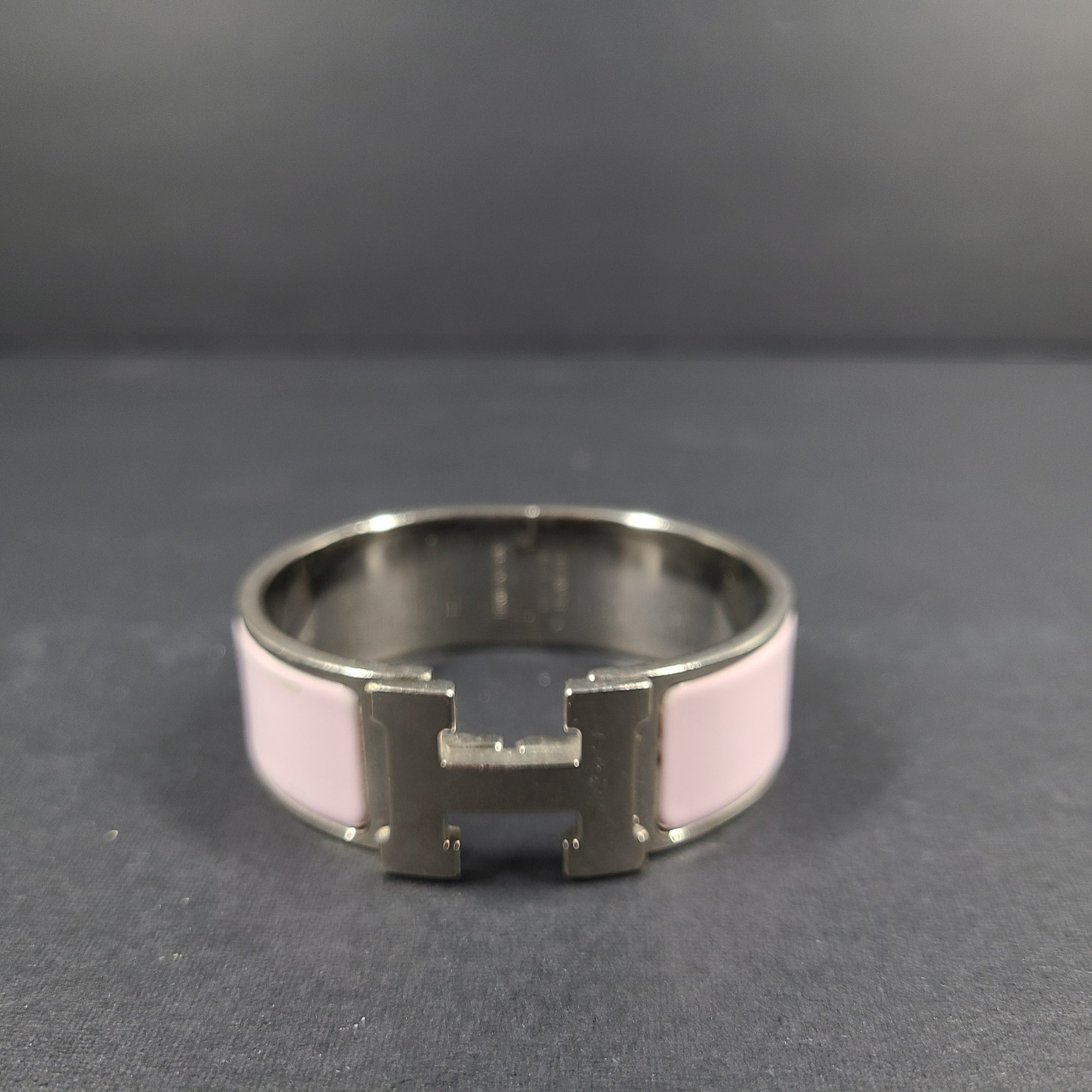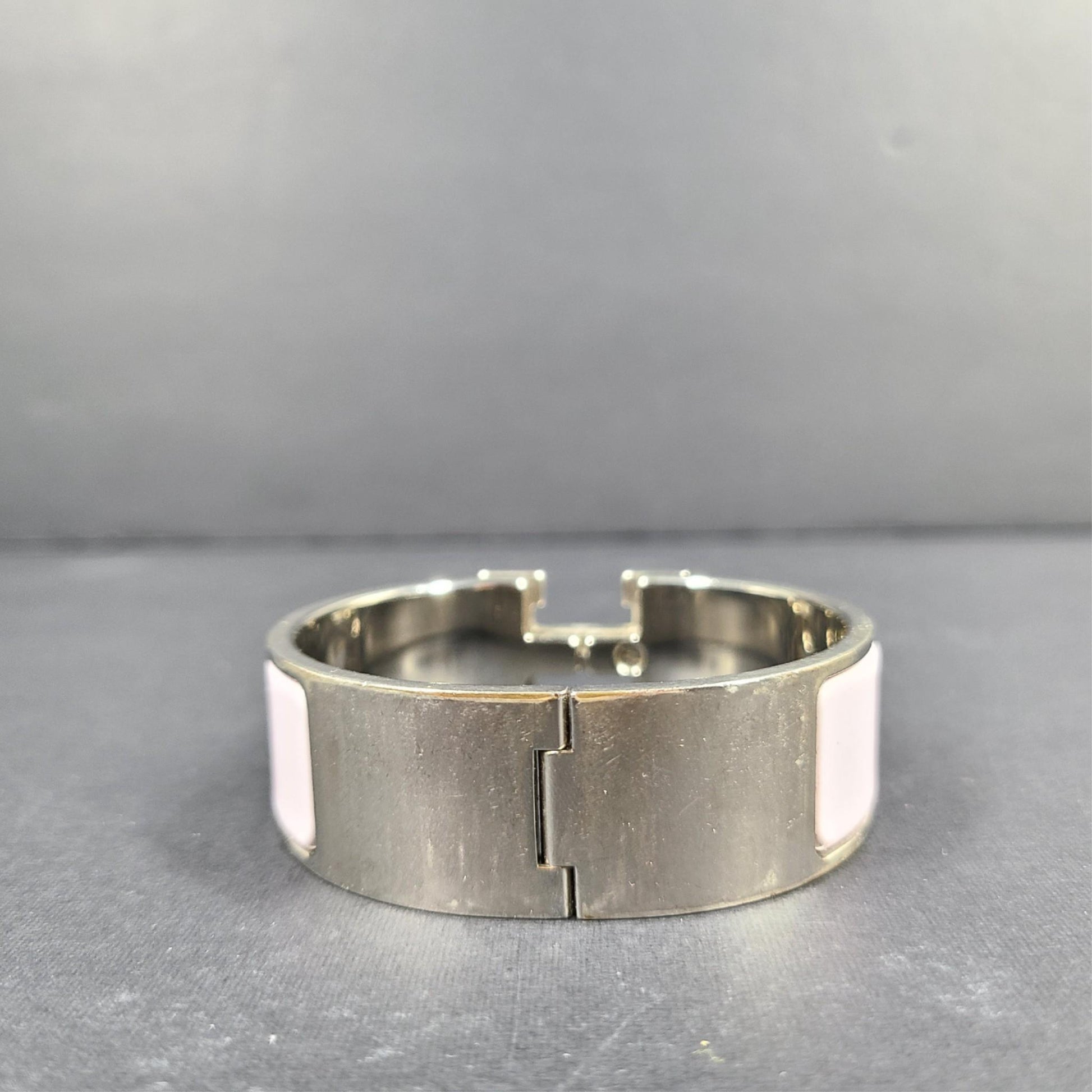 Hermes Clic Clac H Bracelet Silver Enamel Light Pink Wide PM 100% Authentic