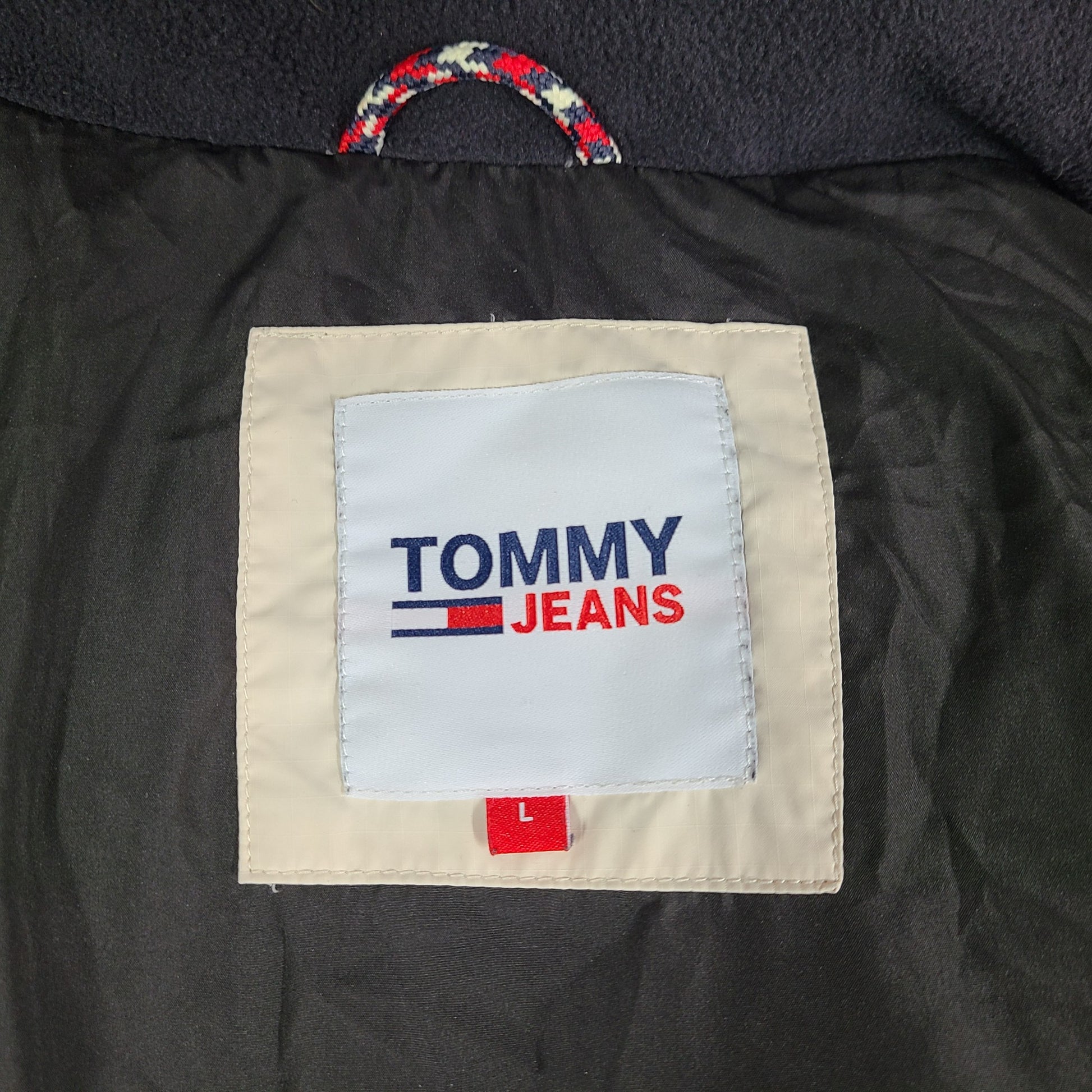- Tommy Jeans branding and a Tommy Jeans flag patch on chest.