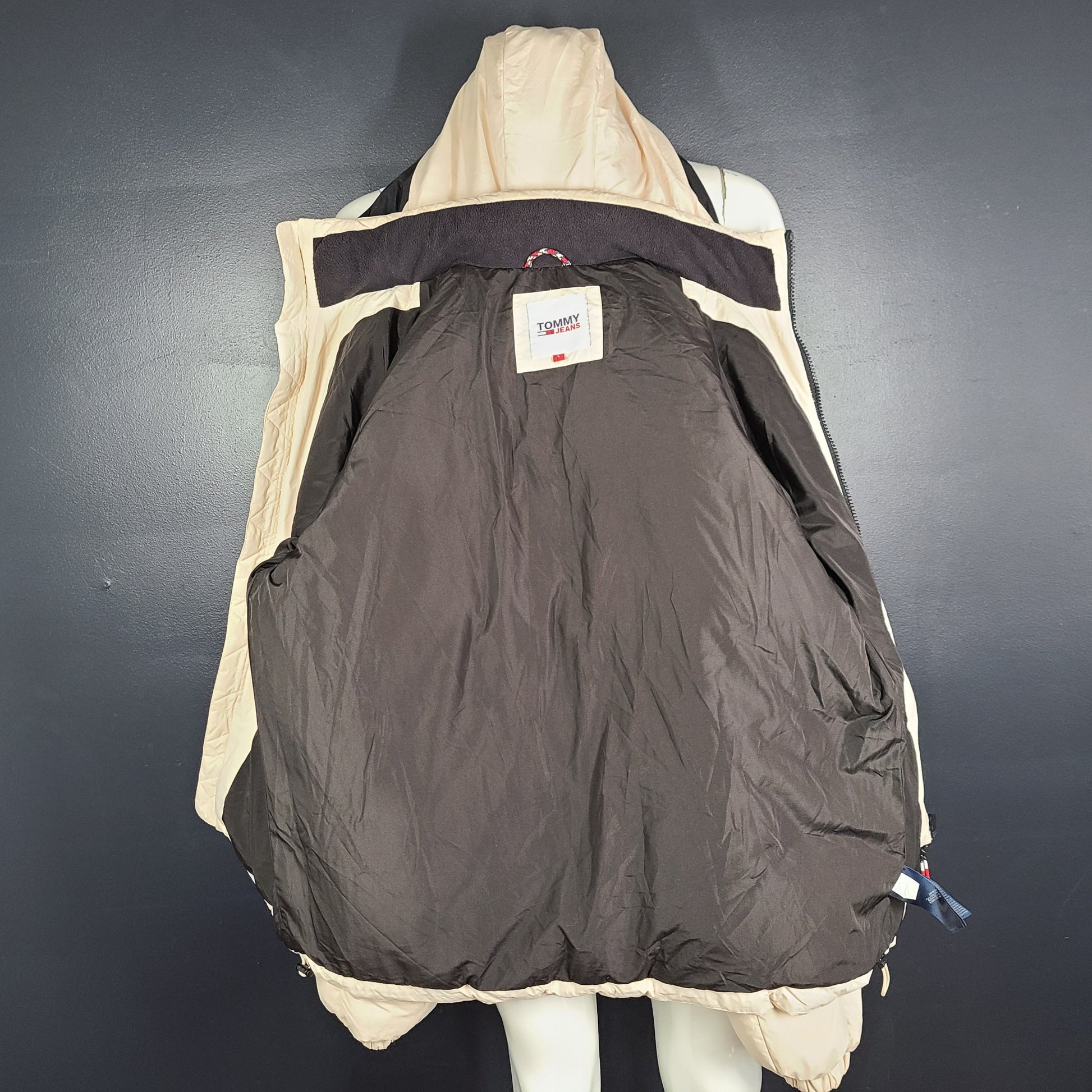 Hilfiger Tommy Jeans Men's Essential Down Hooded Puffer Jacket Beige Sz L