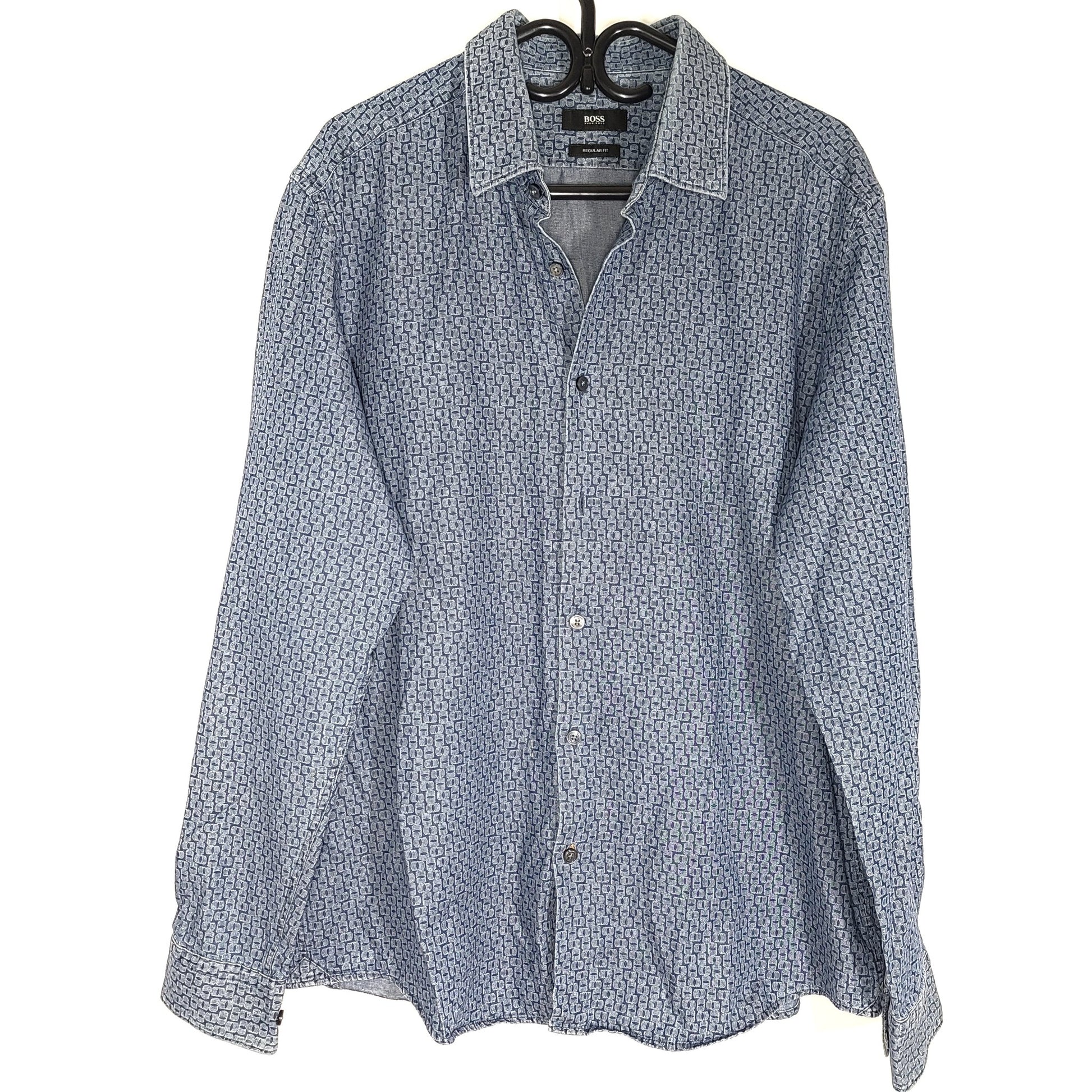 Hugo Boss Men's Standard Fit Patterned Denim Casual Button Up Shirt XL