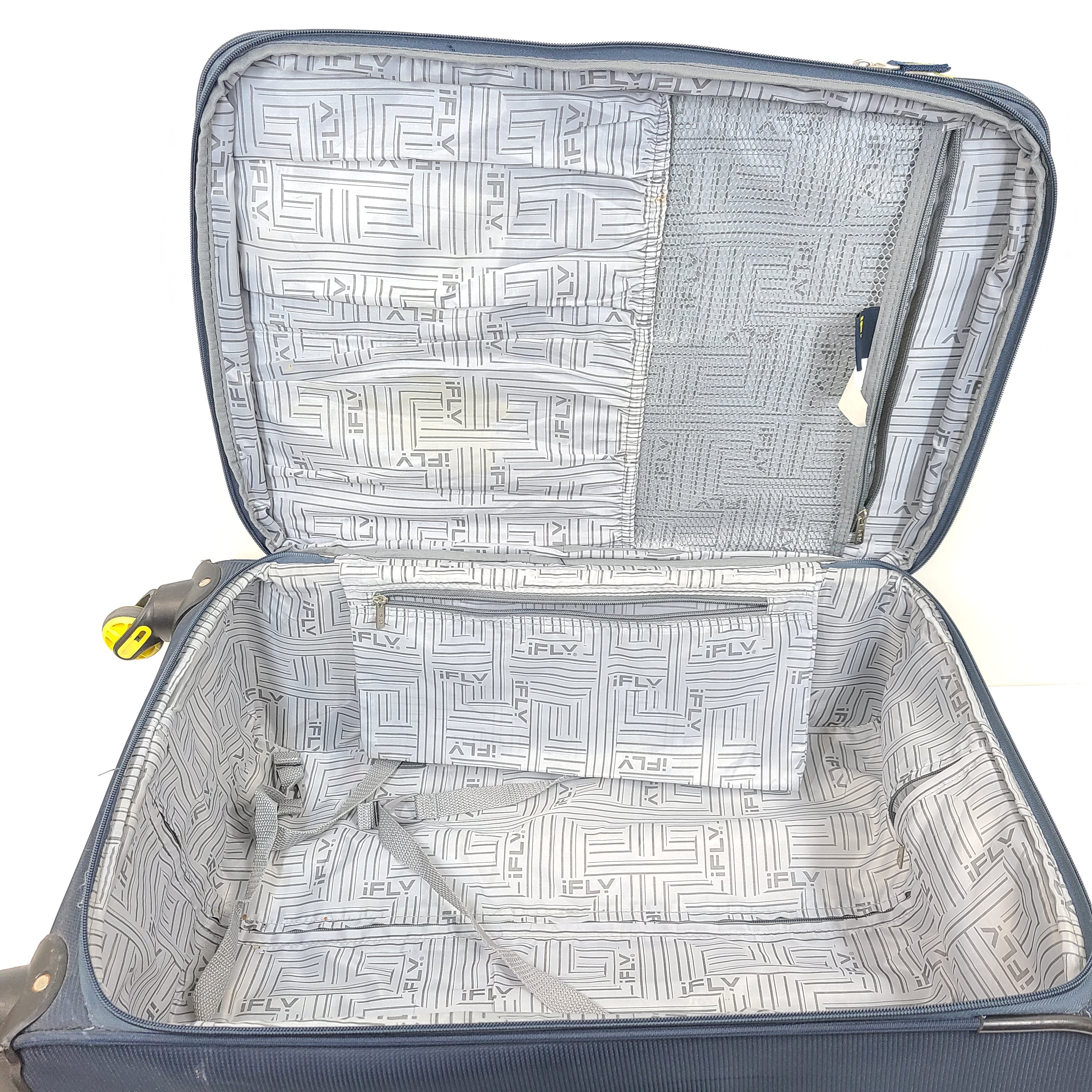 iFLY 27" Medium Softshell Spinner Luggage Expandable Suitcase Blue