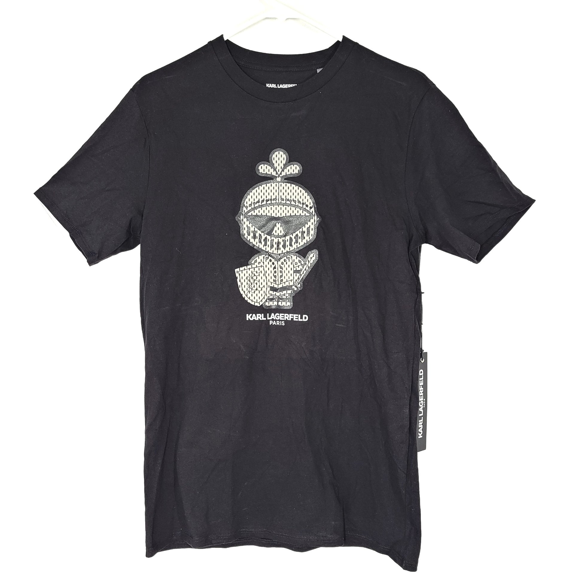 Karl Lagerfeld Logo silver artwork print at the front.