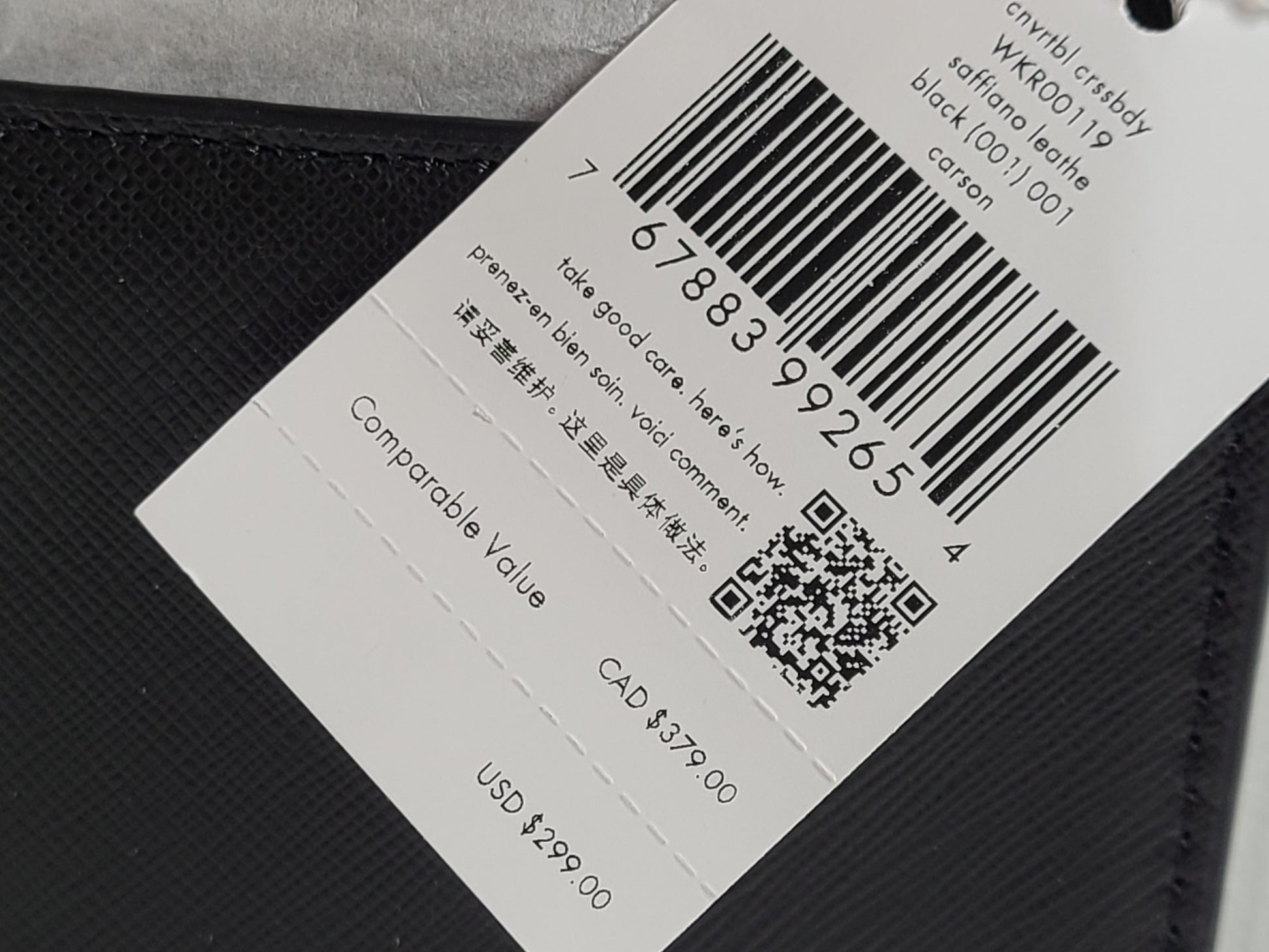 Kate Spade Carson Convertible Crossbody Bag Leather Small WKR00119 Black NWT