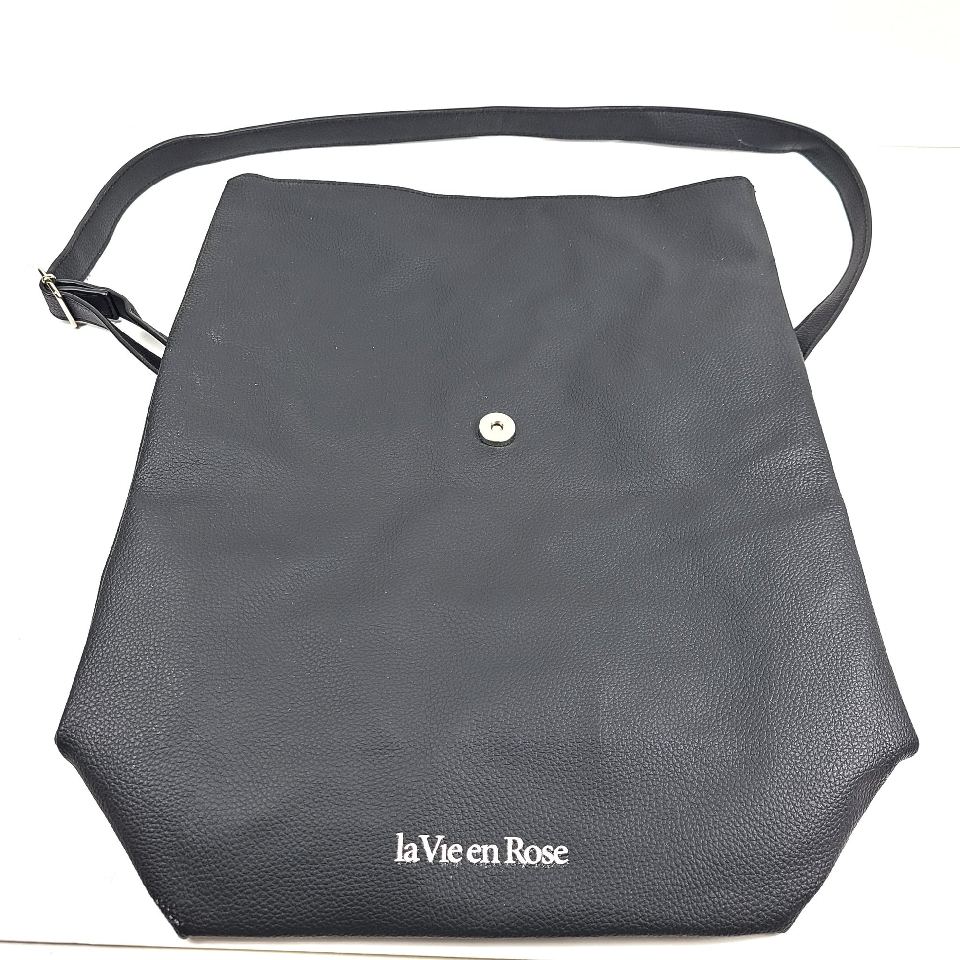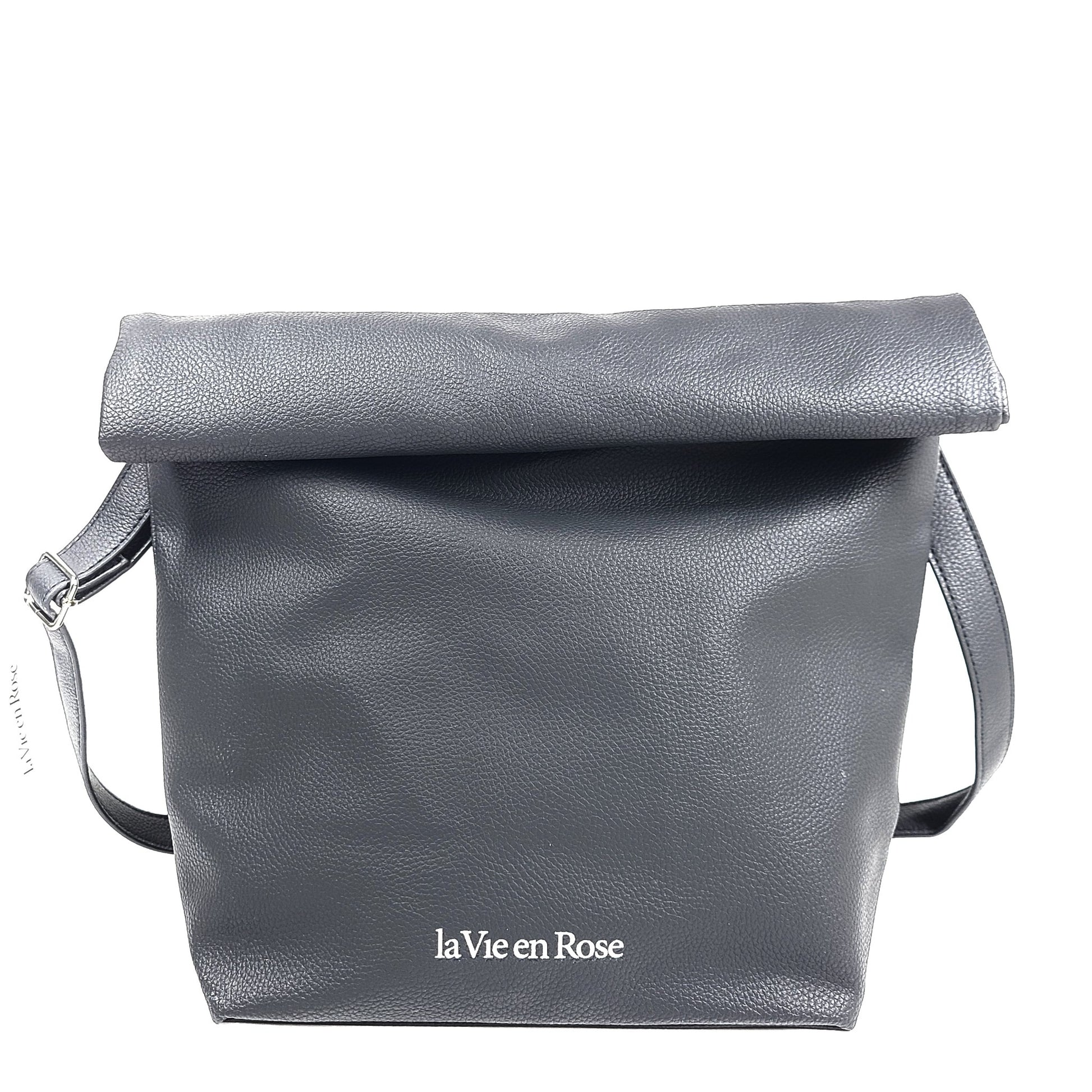 La Vie En Rose Faux Leather Lunch Bag Crossbody Adjustable Strap Black