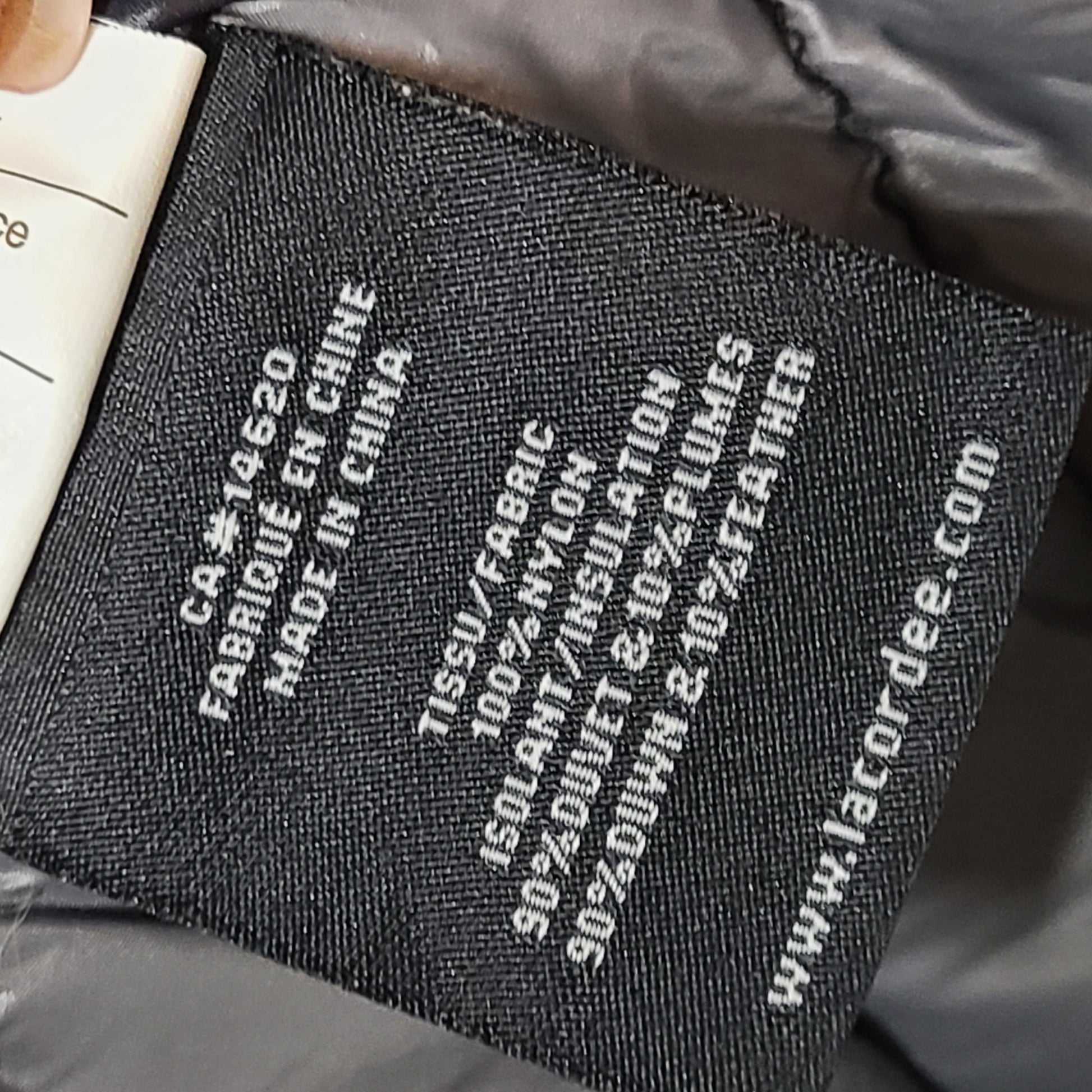 Fill: 90% Duck Down and 10% Feathers ; Shell: 100% Nylon; Lining: 100% Nylon.