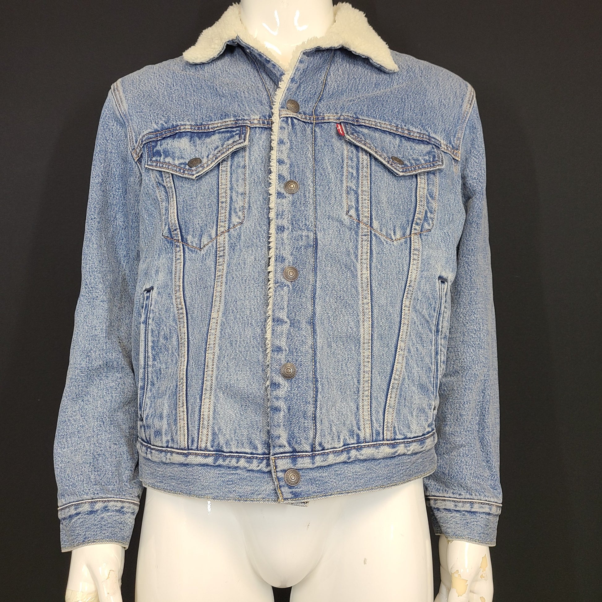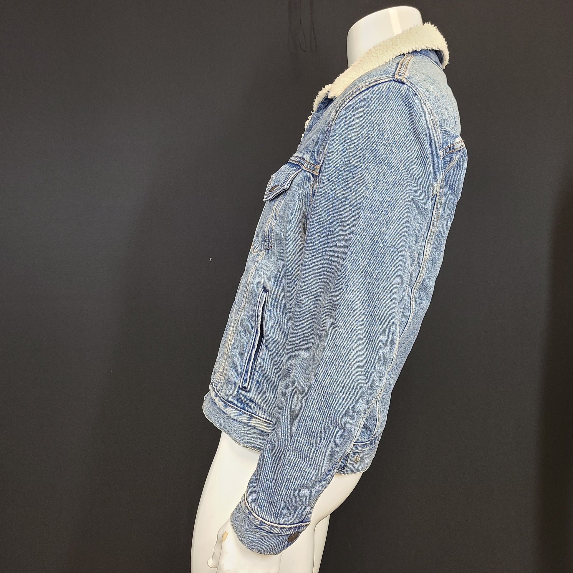 Levi's Premium Vintage Relaxed Sherpa Trucker Jacket Denim Jean Light Wash S