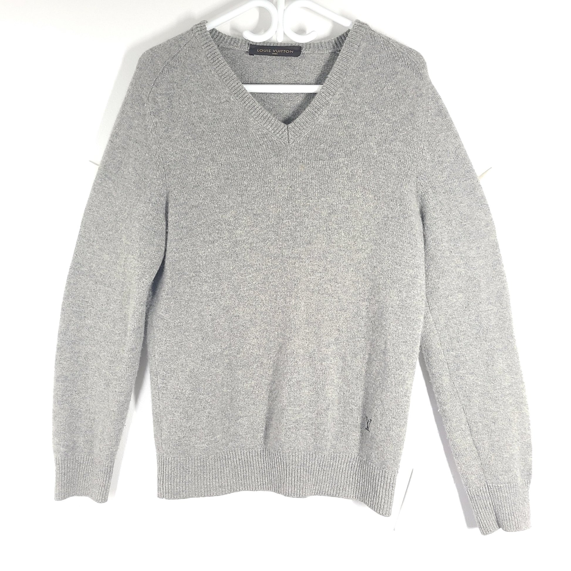 Louis Vuitton Men's Pure Cashmere V Neck Sweater Soft Made in Italy Gray Sz S