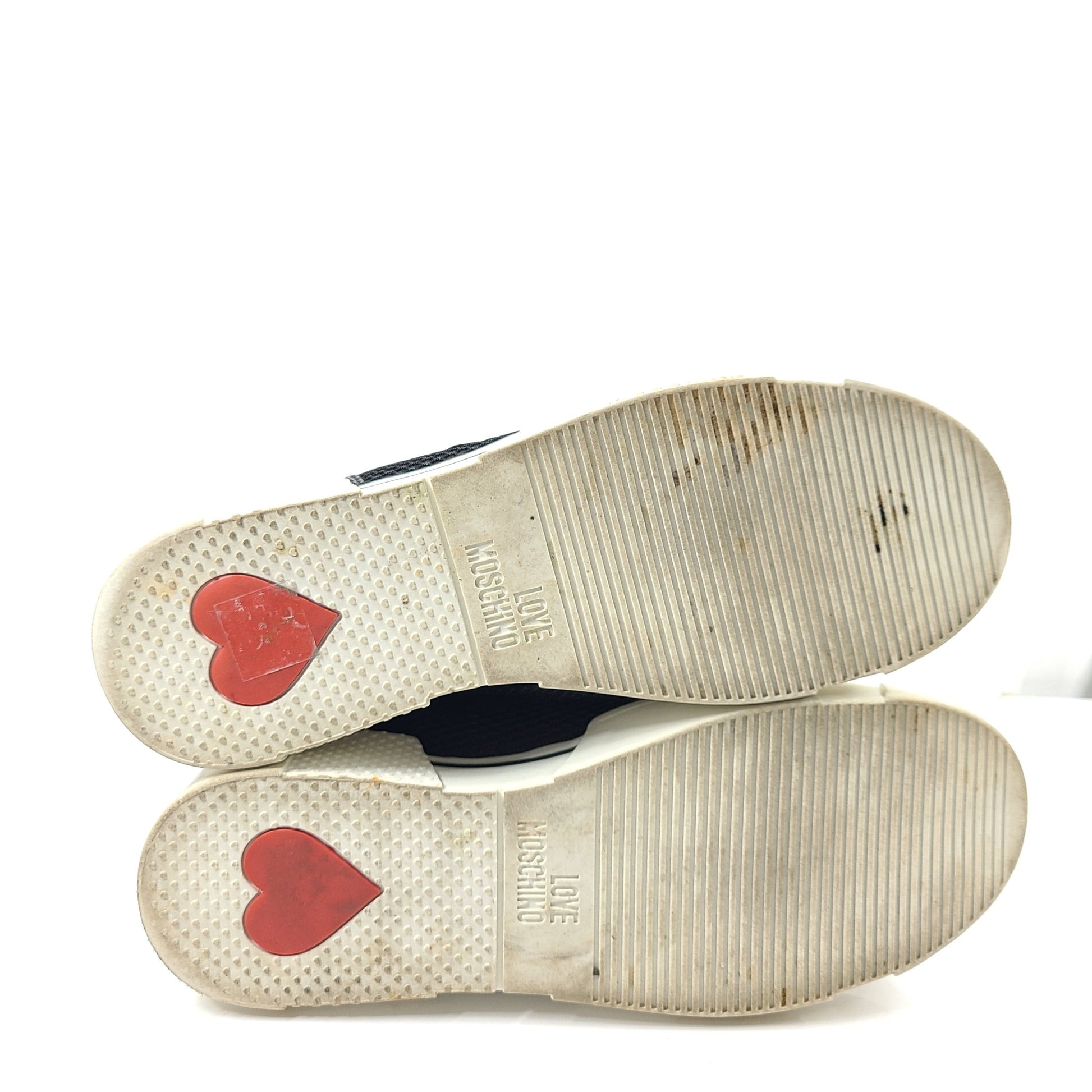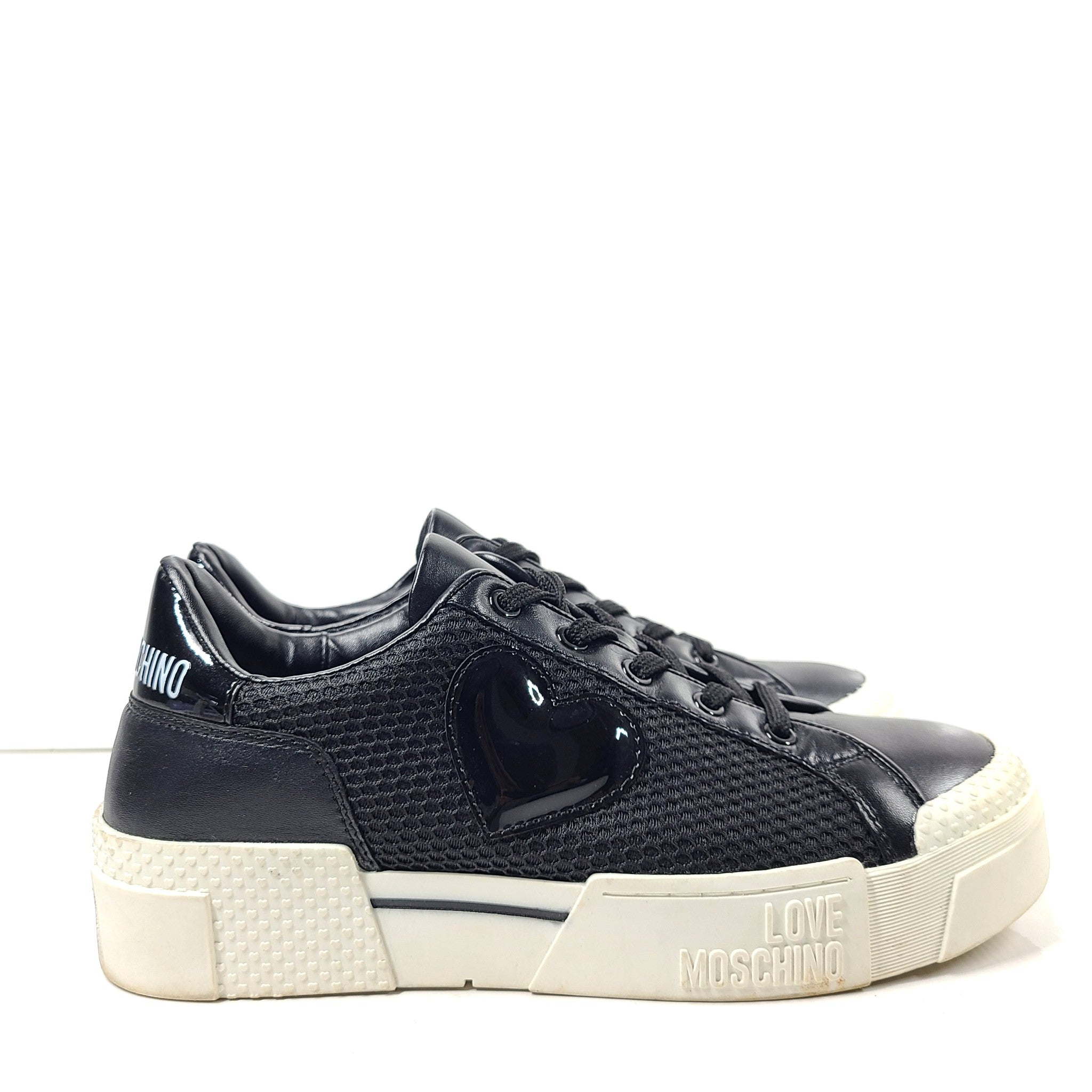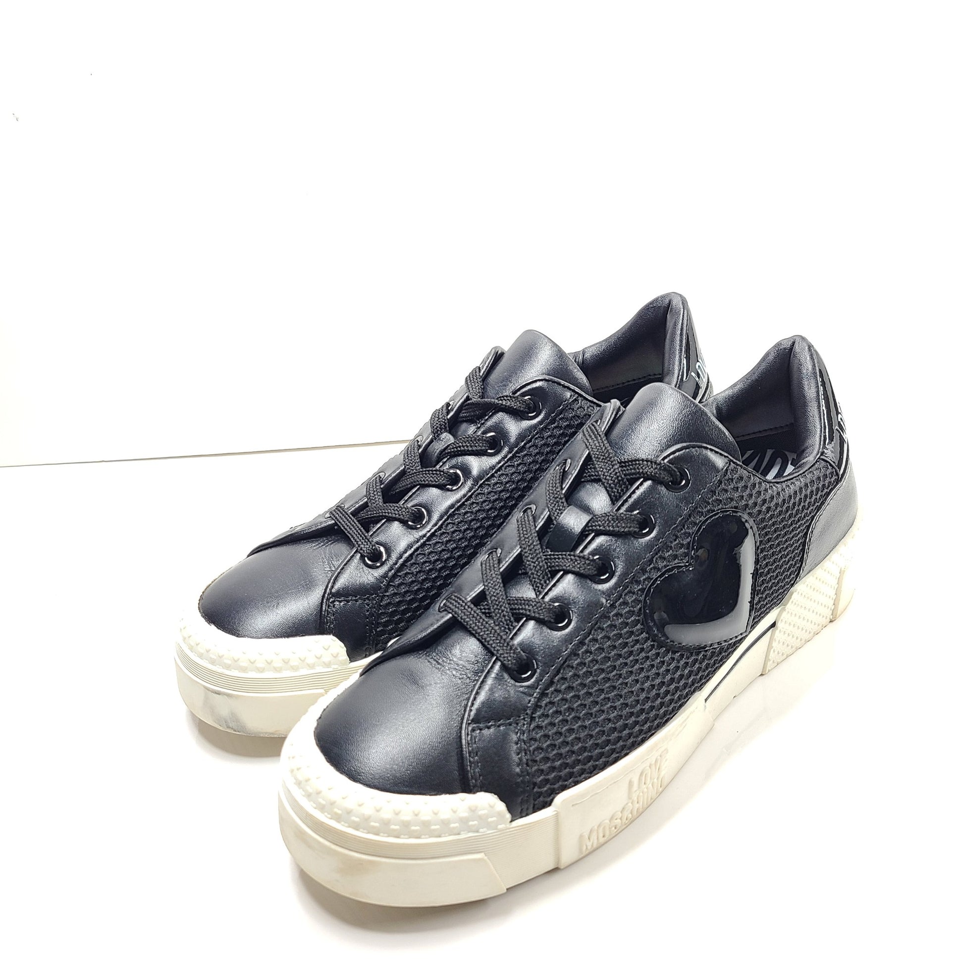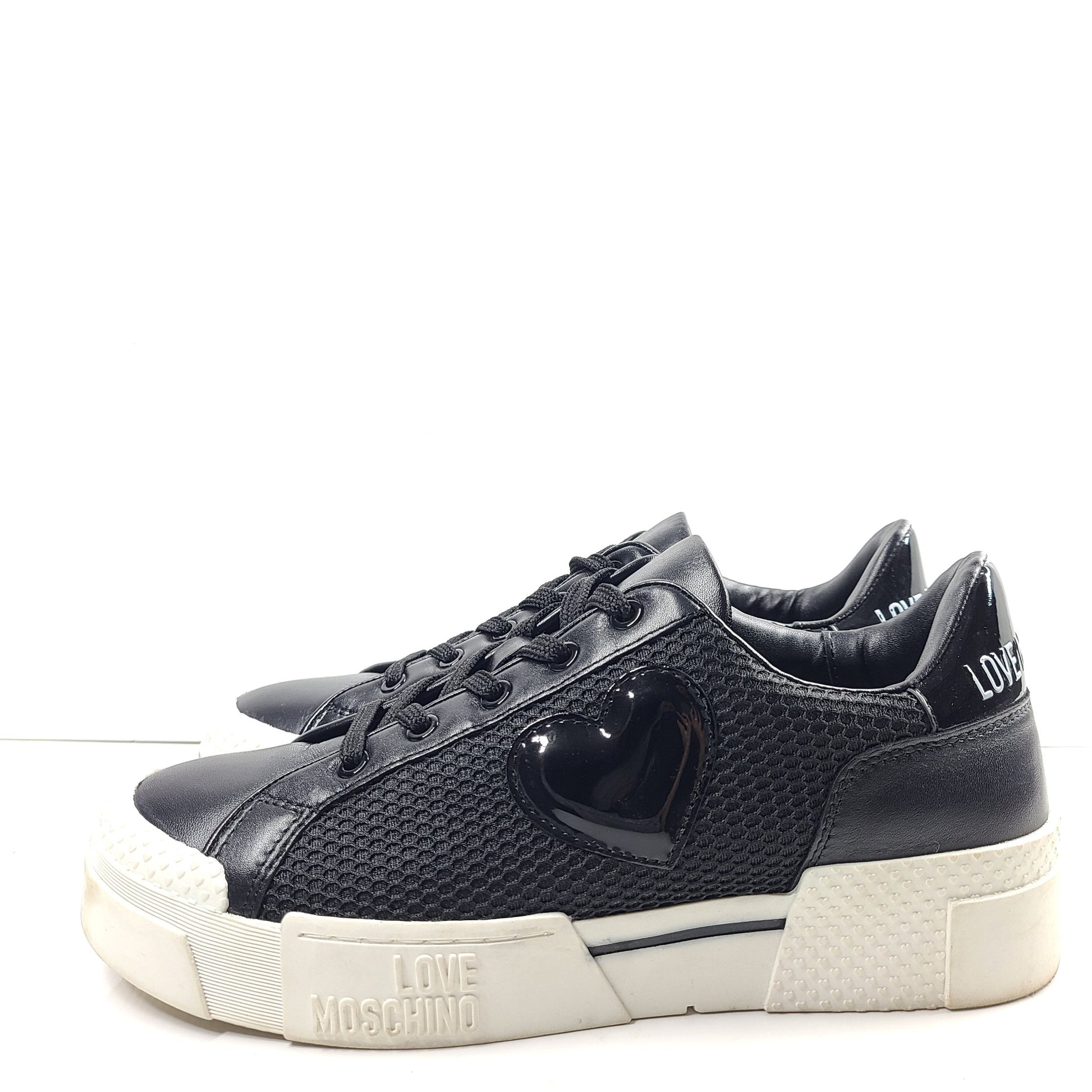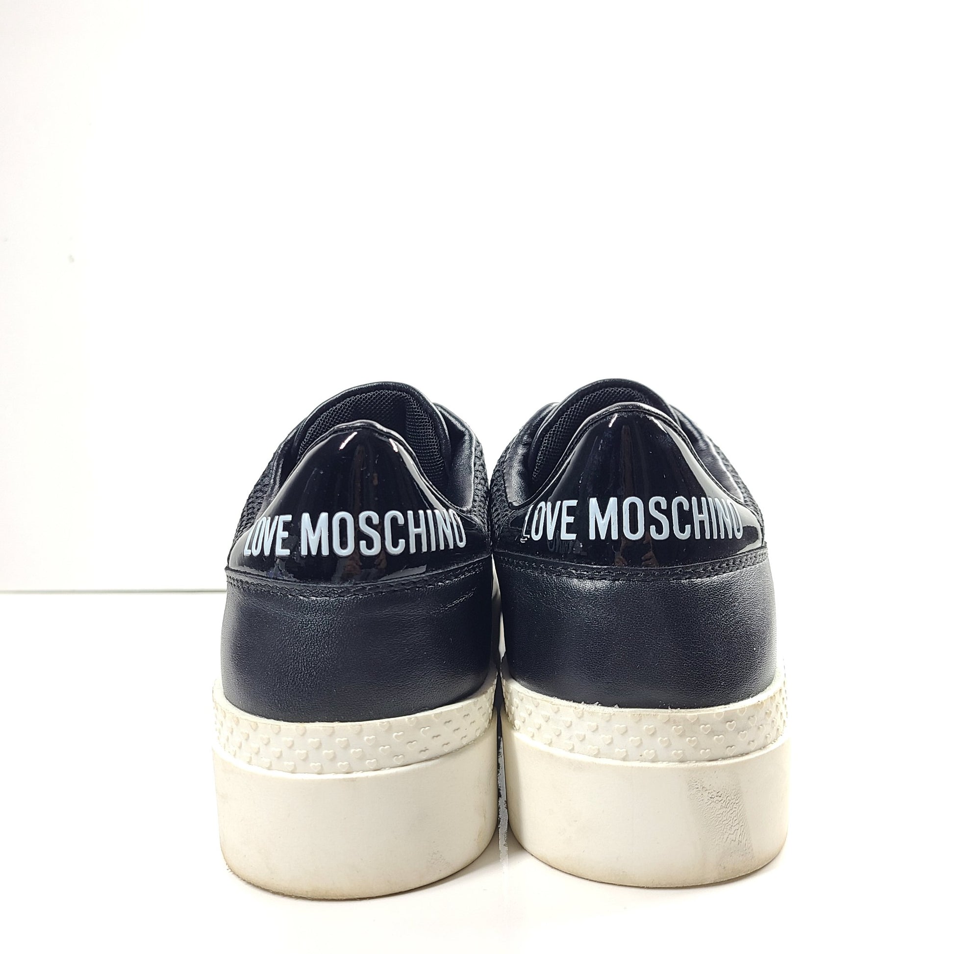 Love Moschino Women's Low Top Sneakers Calfskin Leather Black Sz US 9