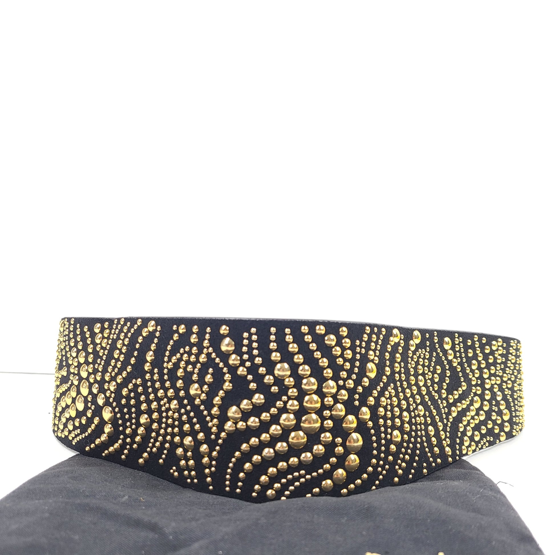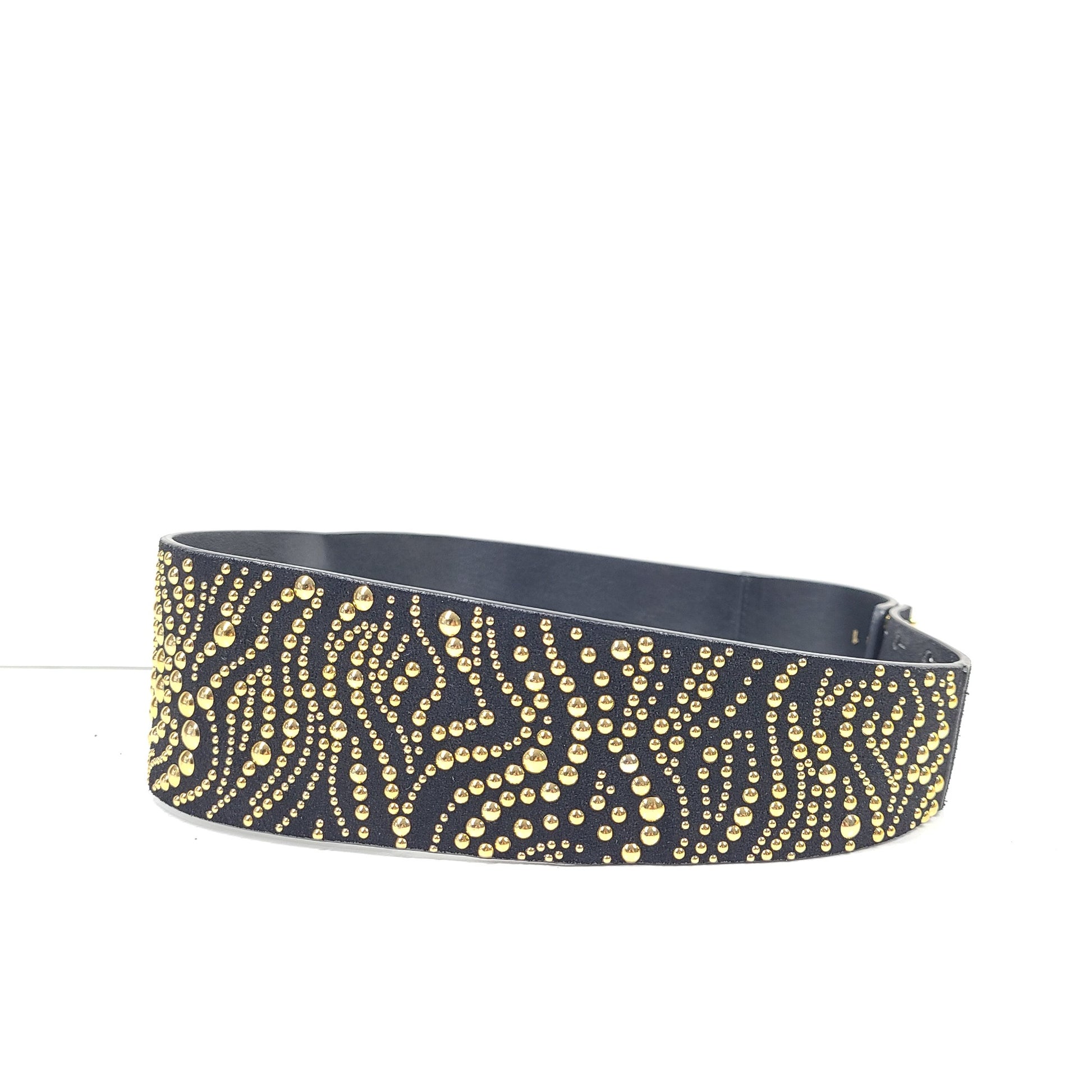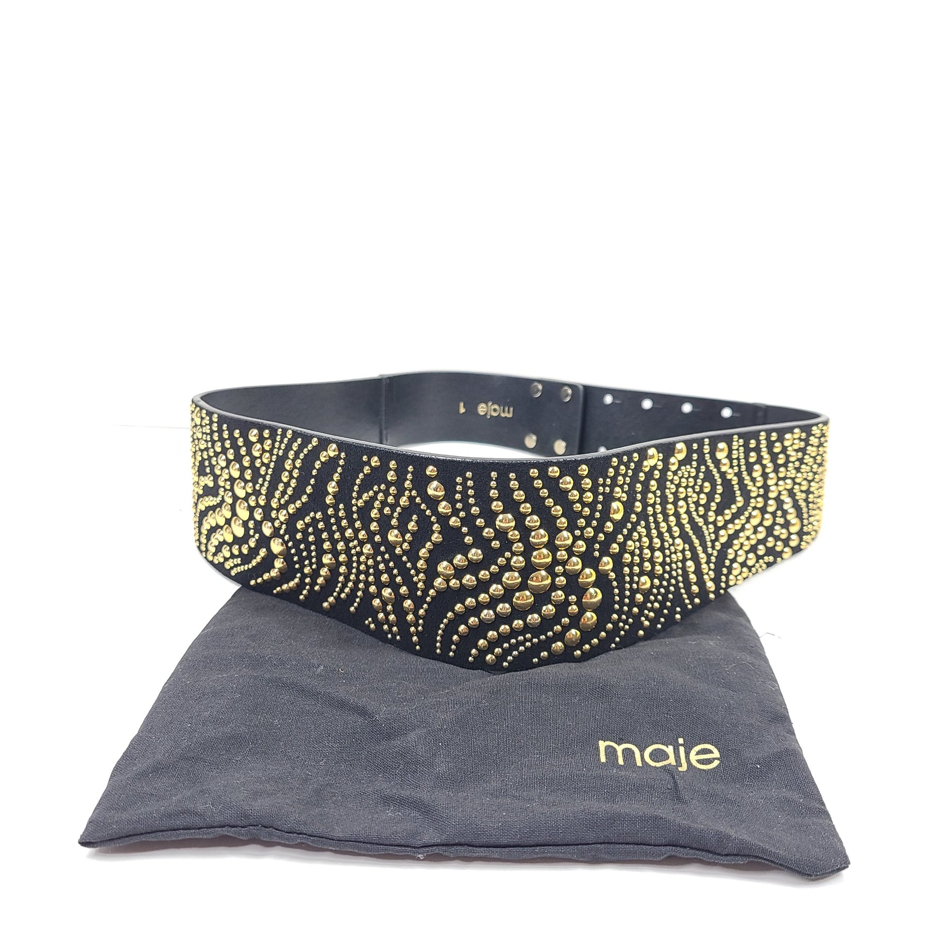 Maje Women's Suede Leather Studded Wide Belt Black Sz 29