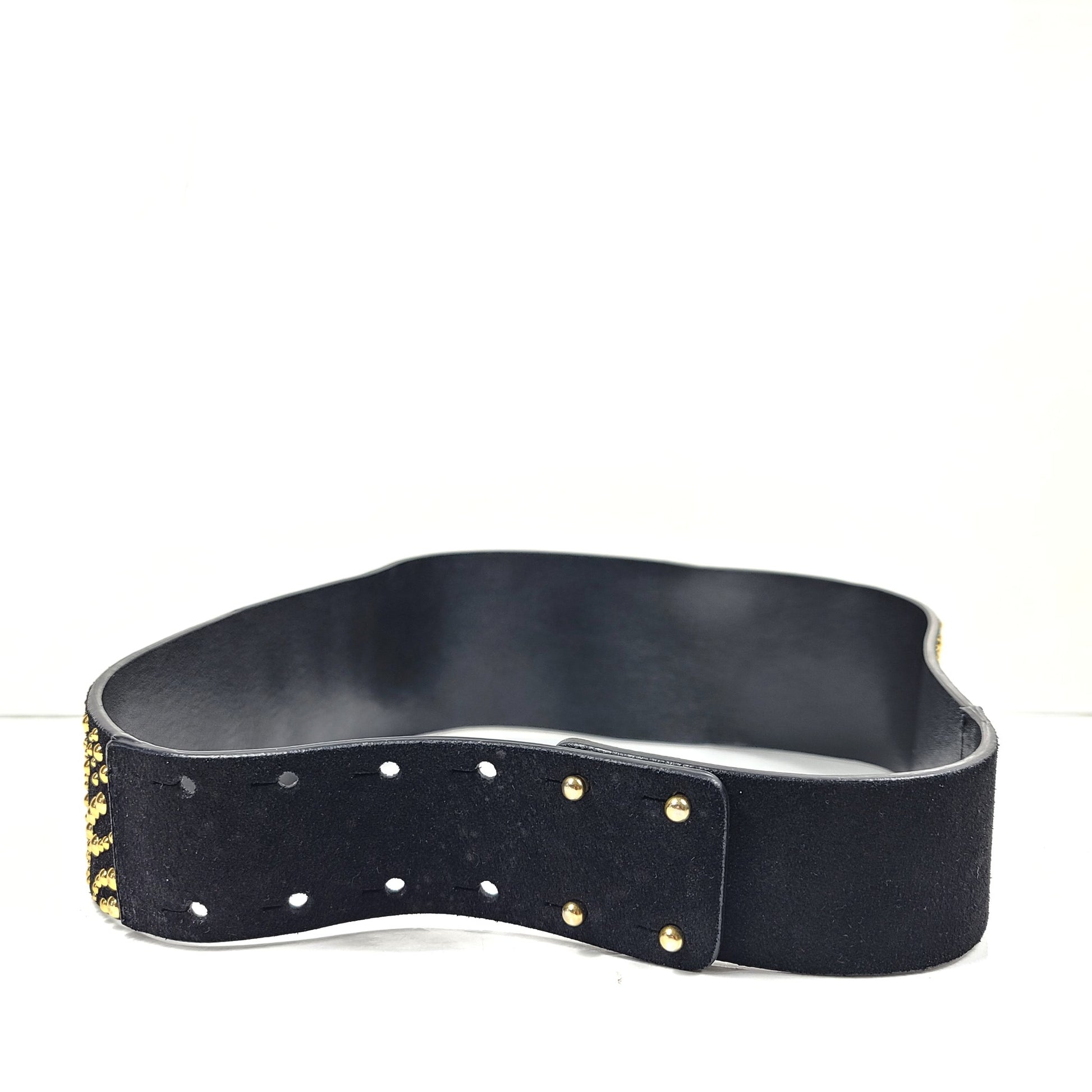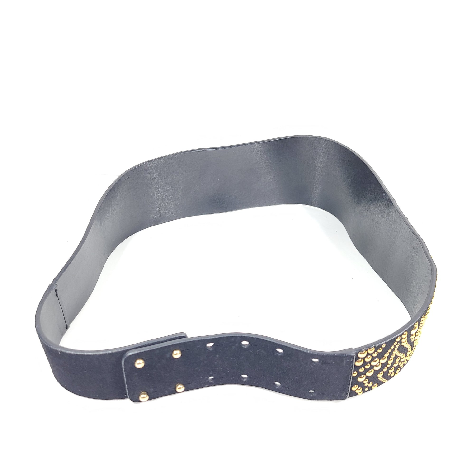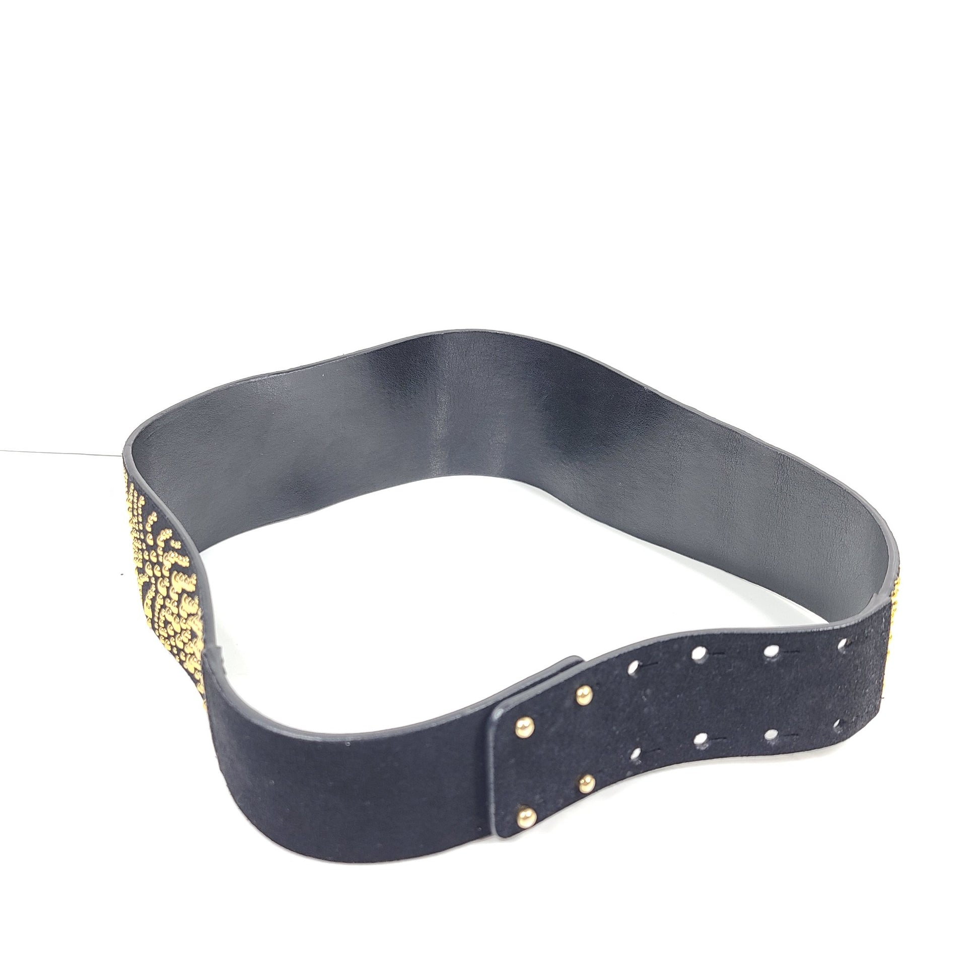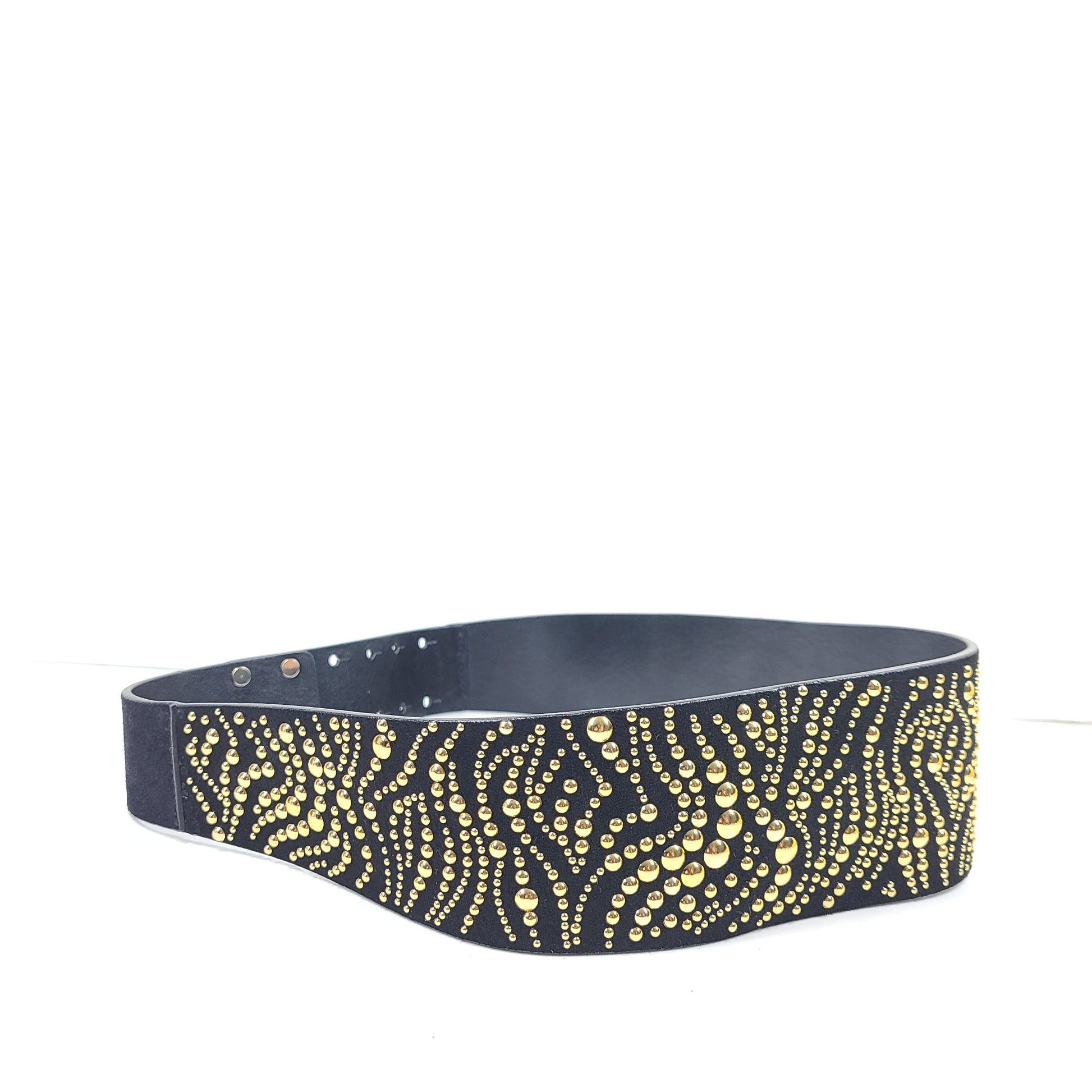 Maje Women's Suede Leather Studded Wide Belt Black Sz 29