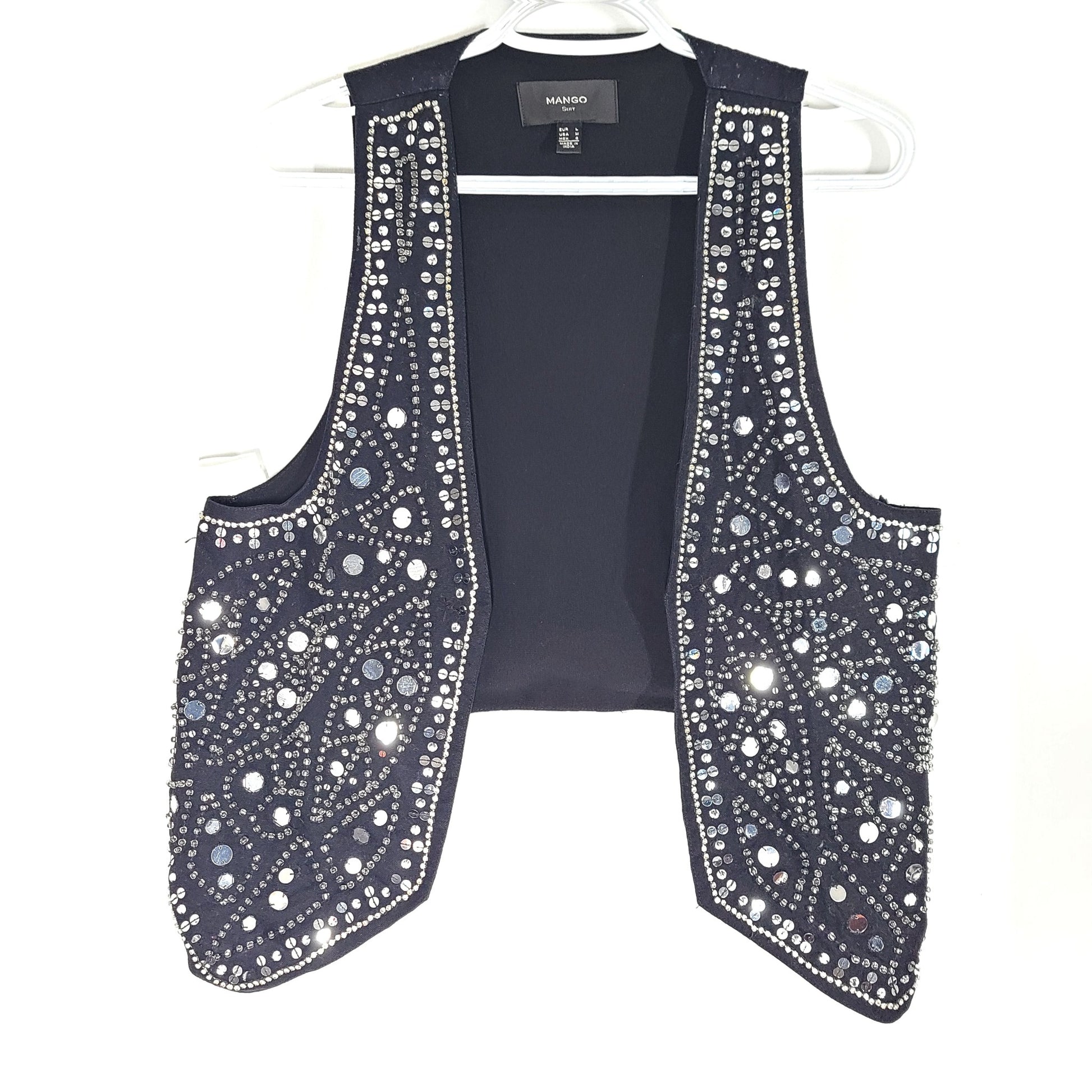 Mango MNG Women's Sequin Embroidered Vest Open Sleeveless Black Sz M