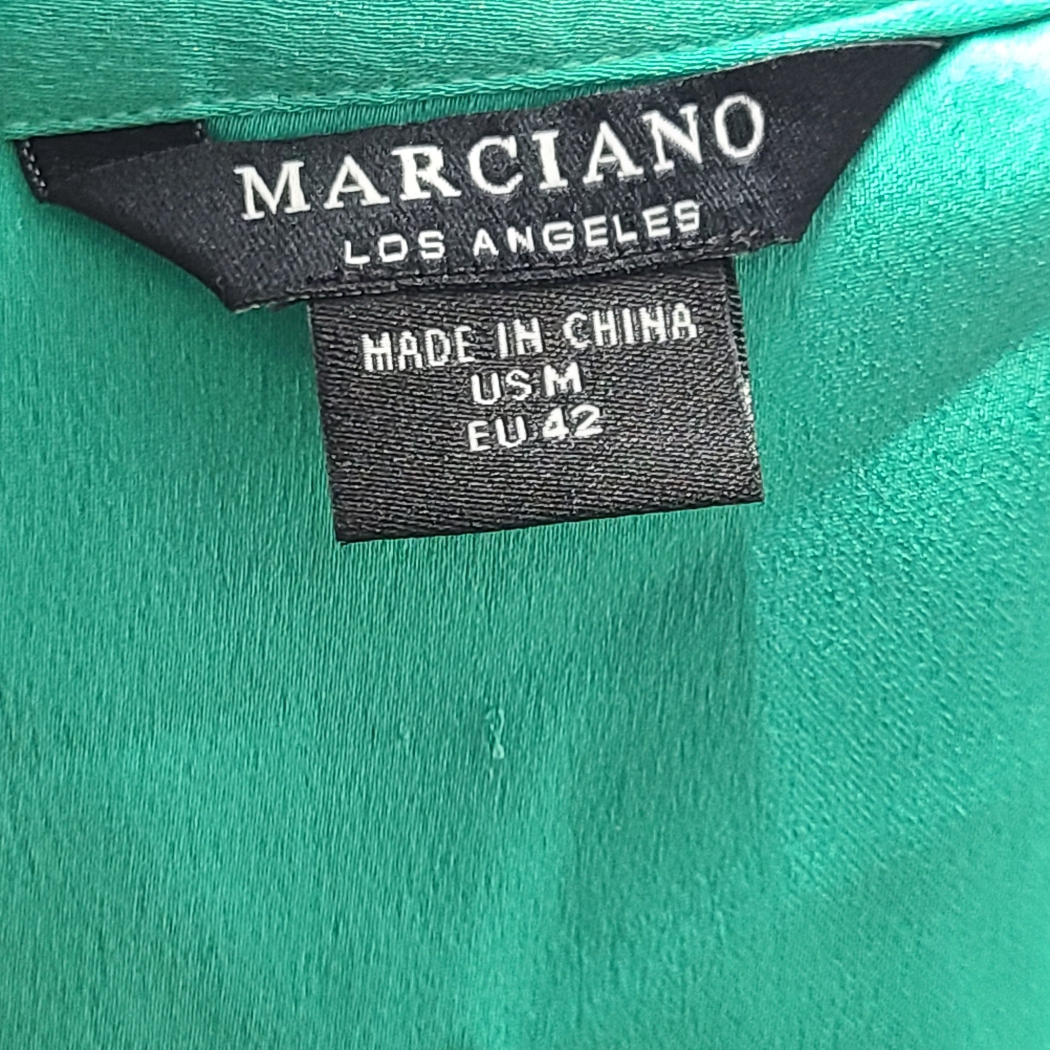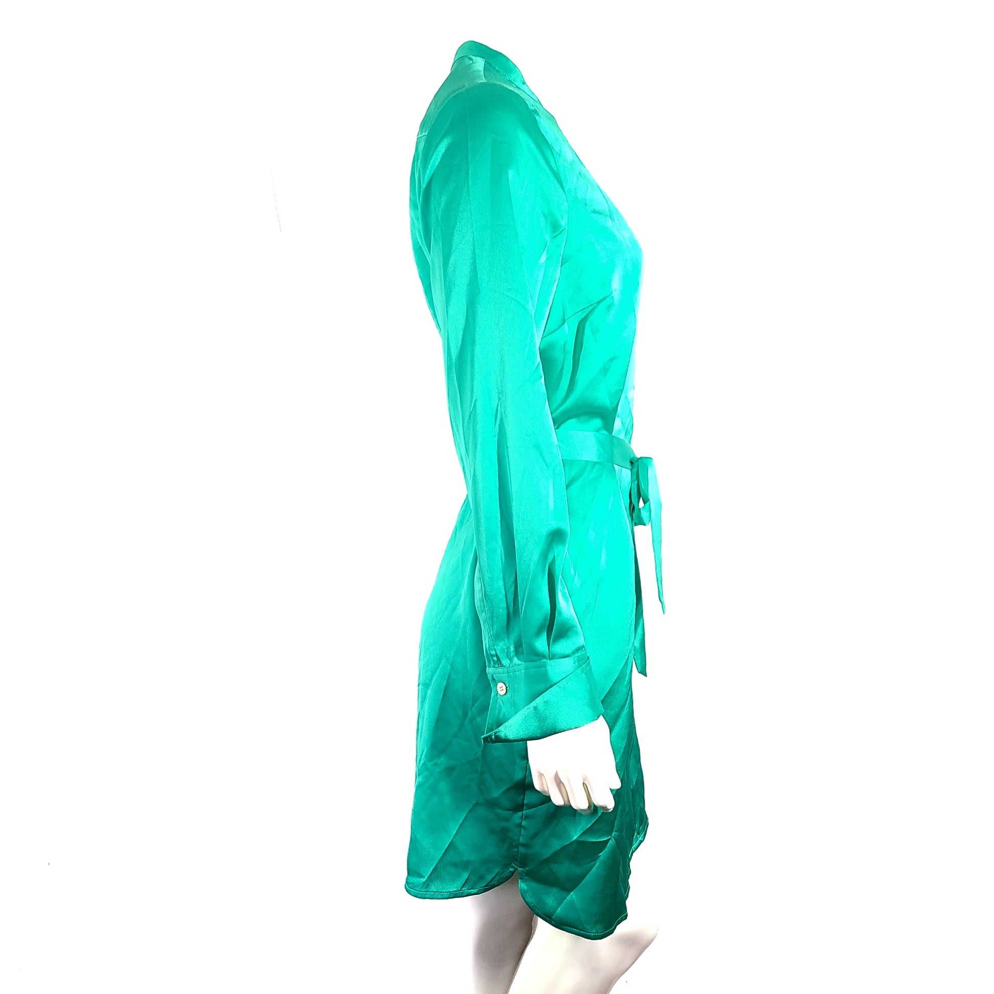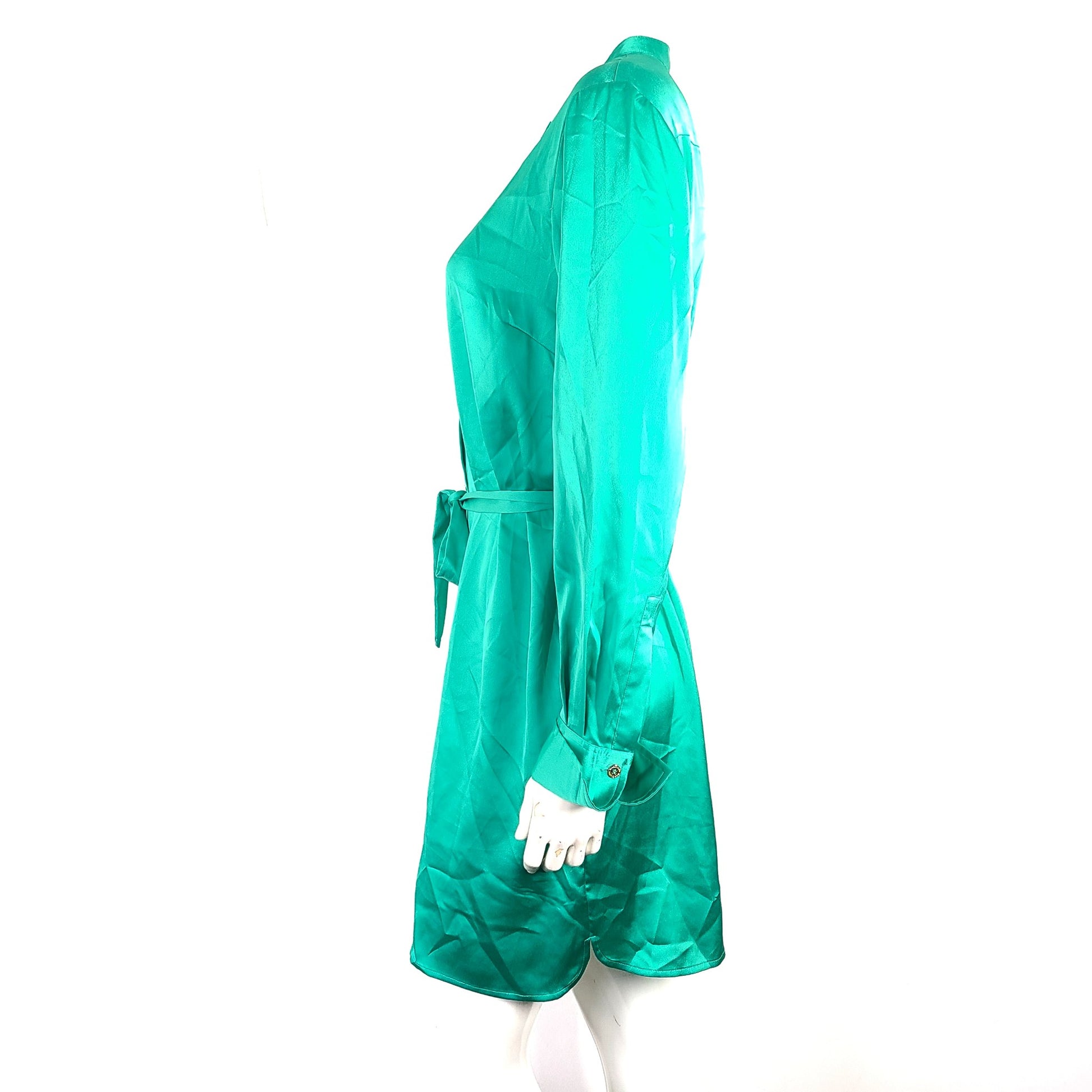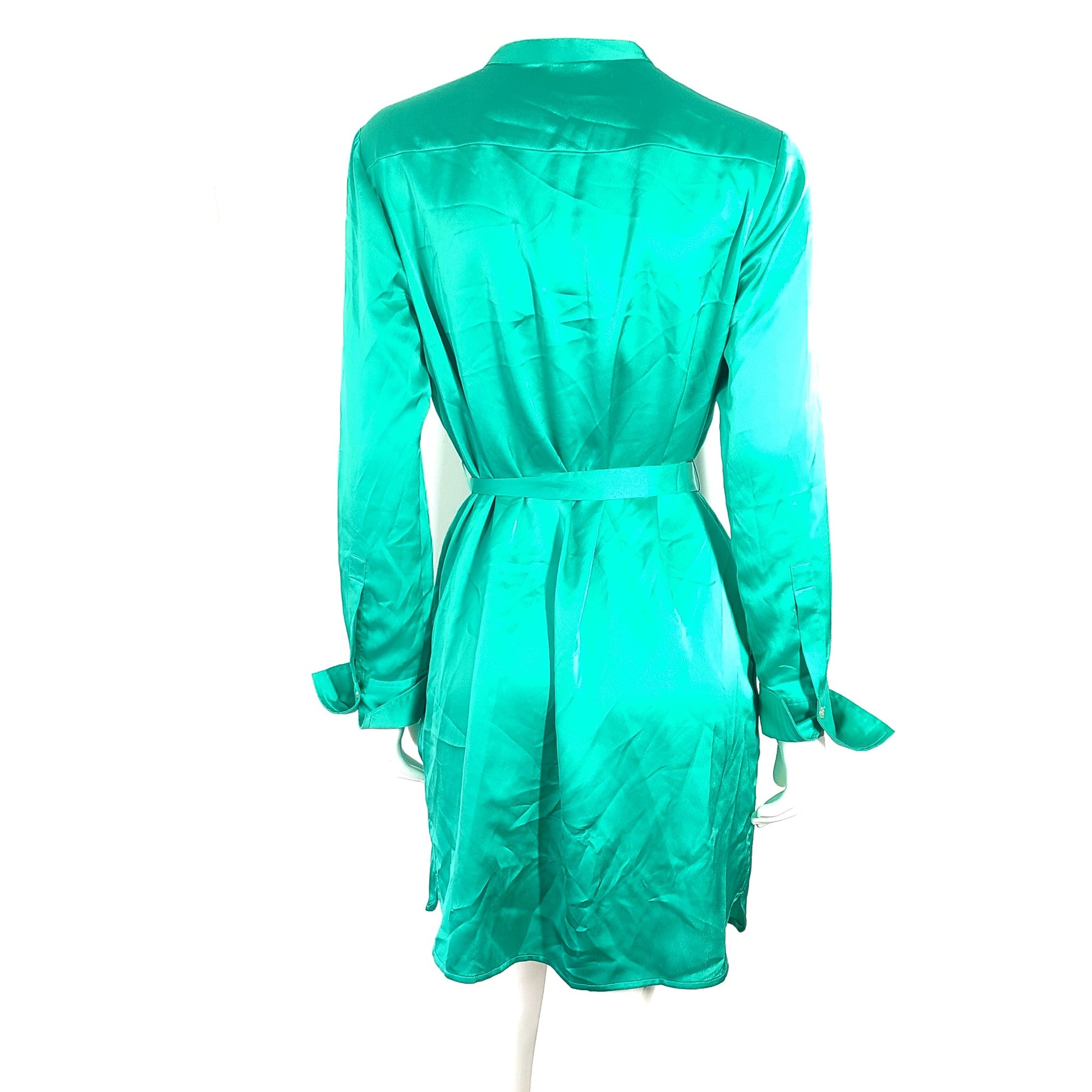 Marciano Women's Silky Satin Shirt Dress Belted Green Sz M