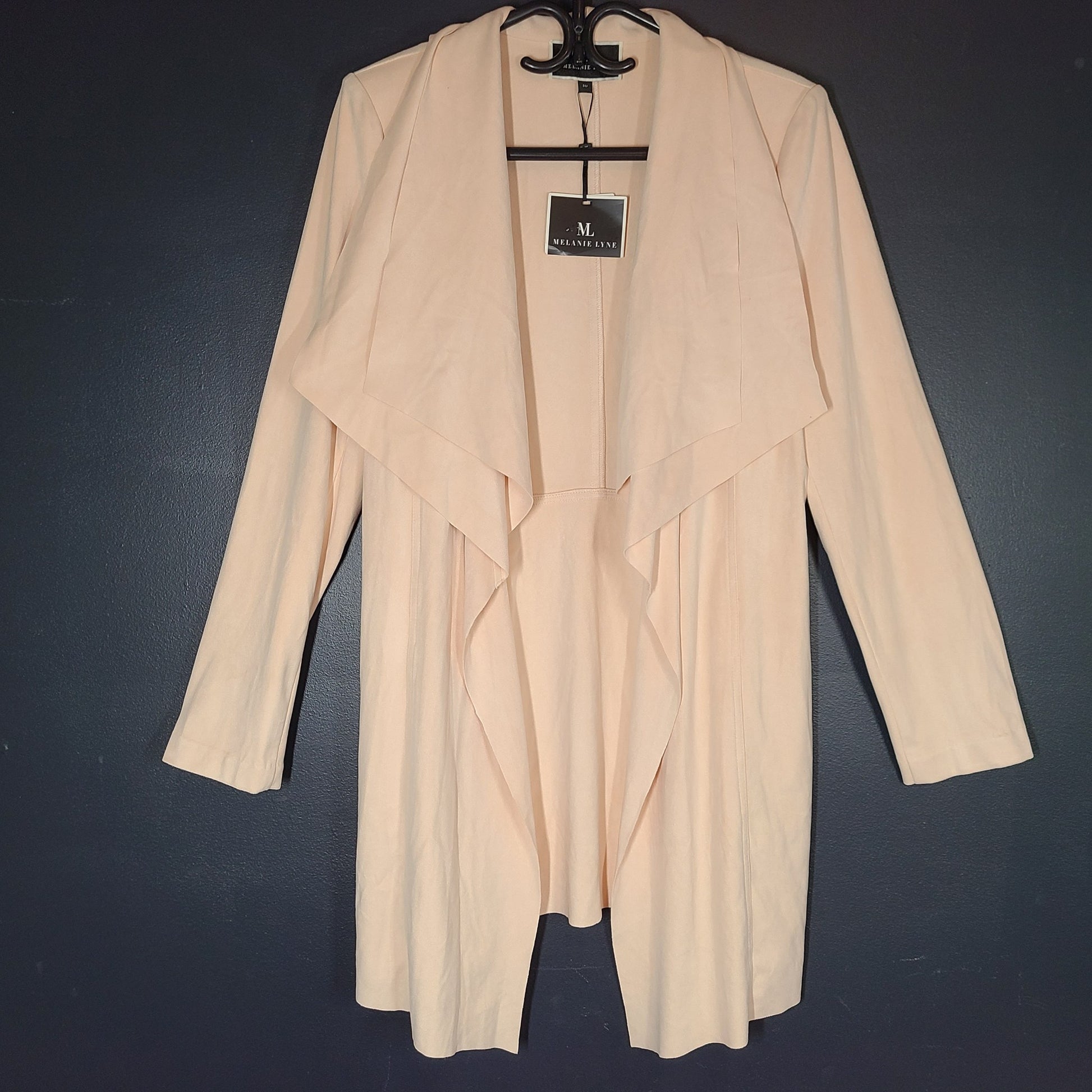 Melanie Lyne Drape Front Faux Suede Open Coat Raw Edge Mid Length Pink Sz 10
