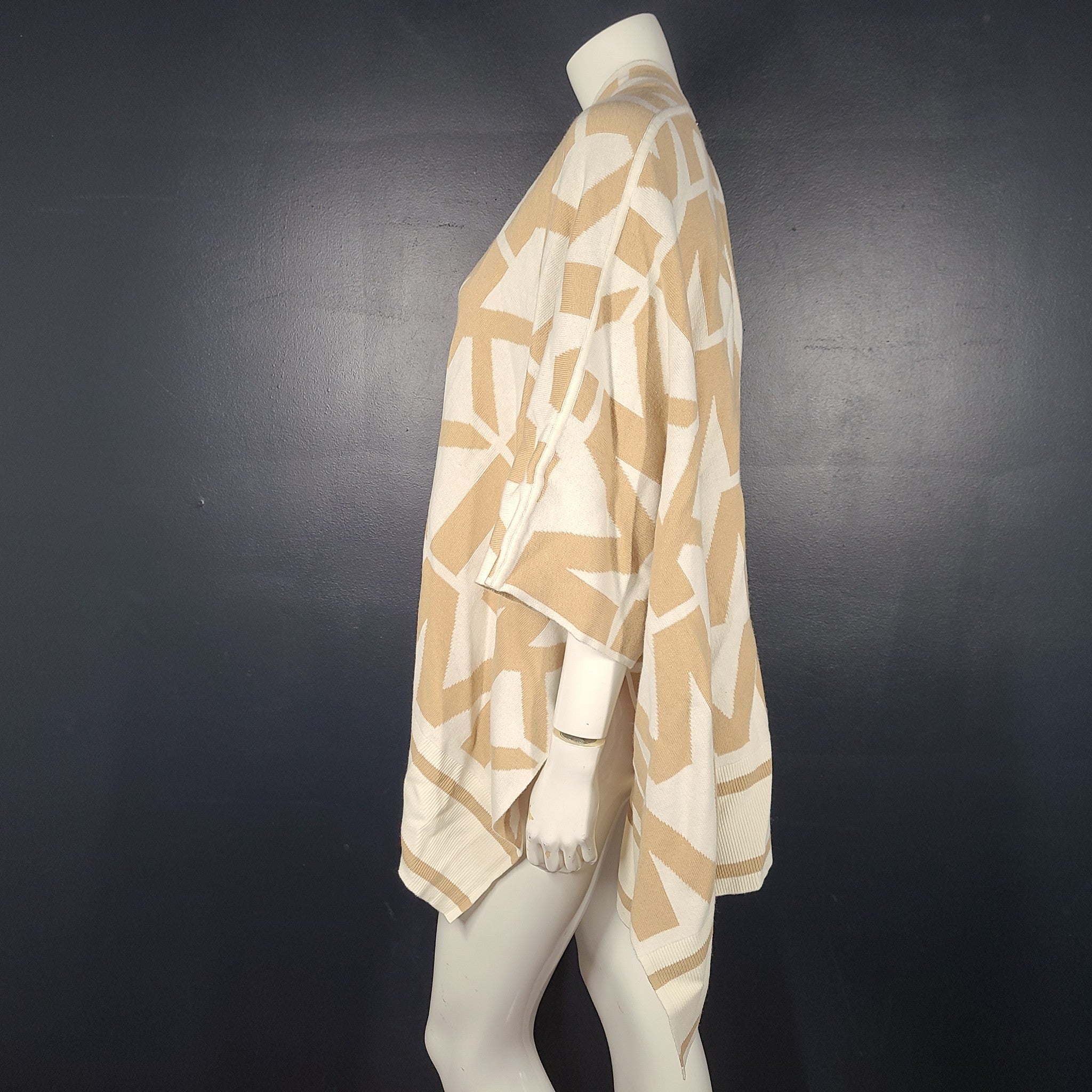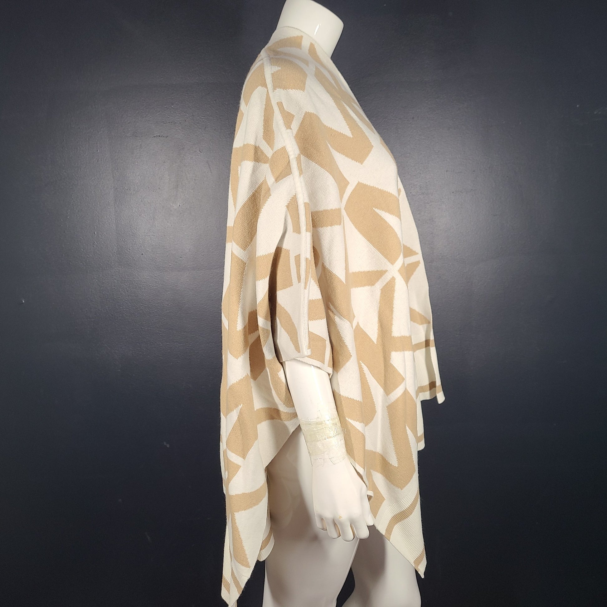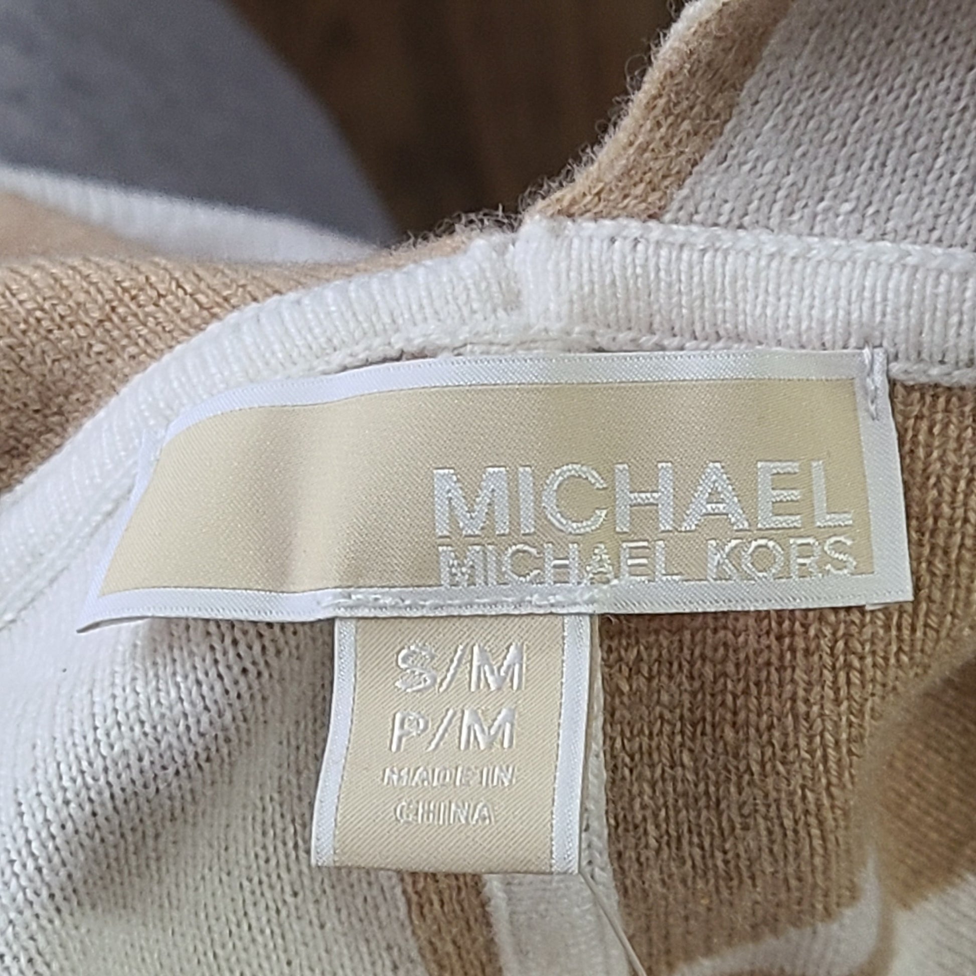 Michael Kors Women's Merino Wool Blend Logo Poncho Natural/Beige Khaki S/M NWT