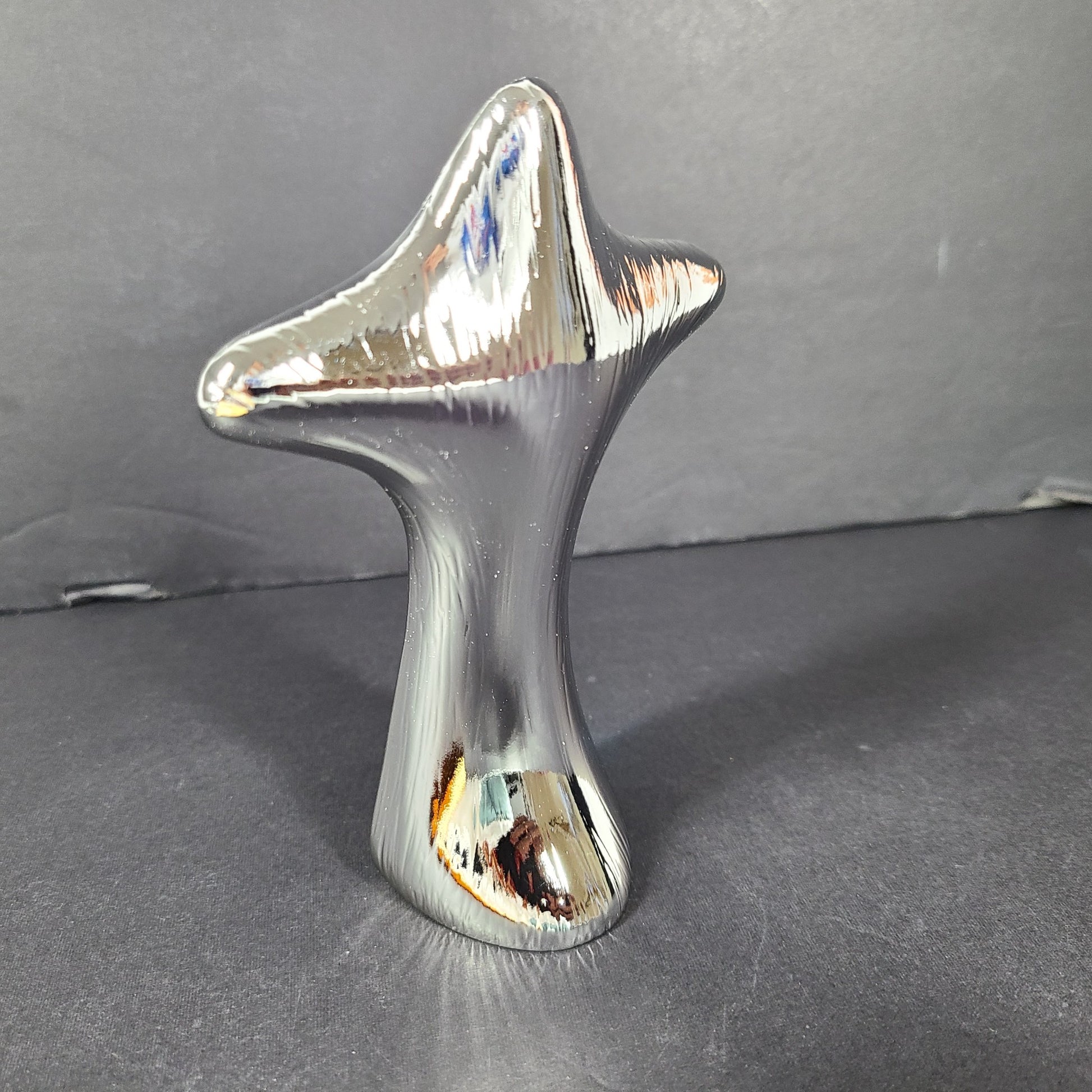 Modern sculpture of Christ on the Cross. Silver coated resin.