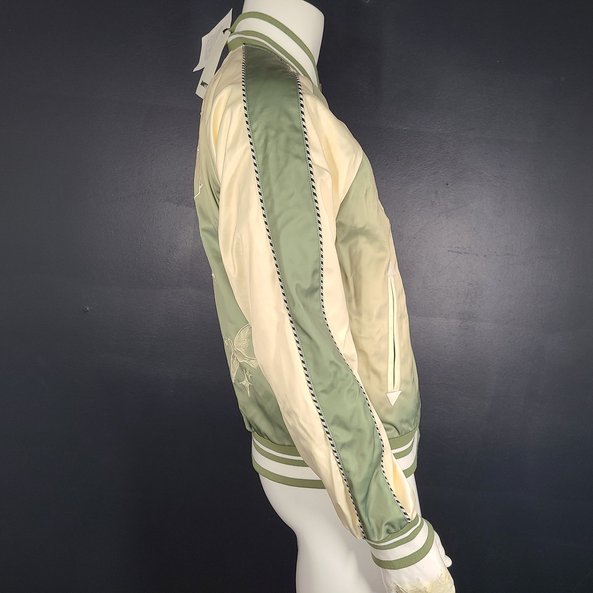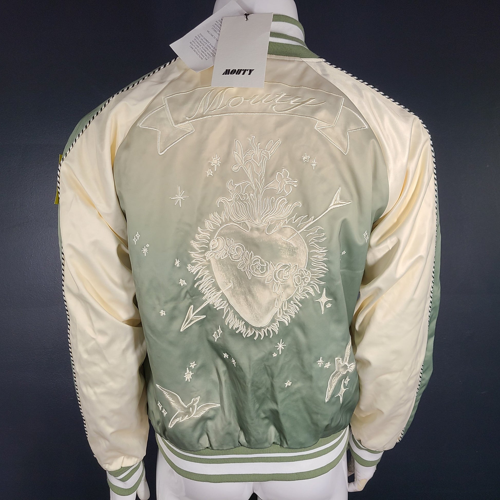 Mouty Men’s Souvenir Bomber Jacket Lined Embroidered Viscose Green Size S
