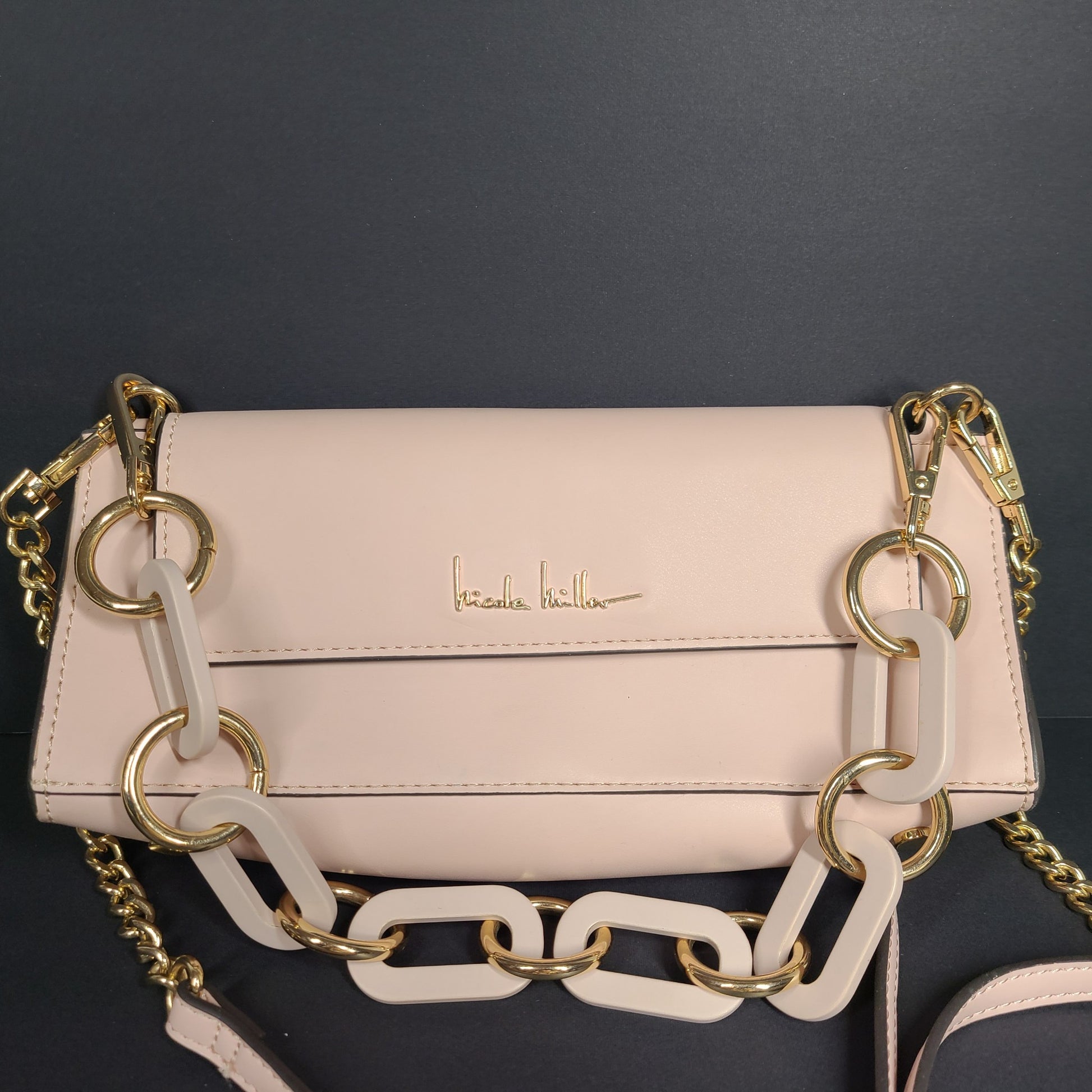 Nicole Miller Baguette Long Shoulder Bag Crossbody Strap Purse Flap Closure Pink