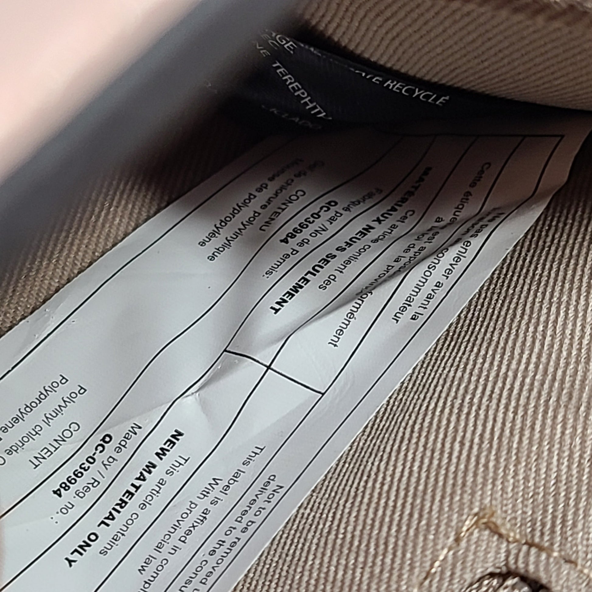 Lining: 100% Polyethylene.
