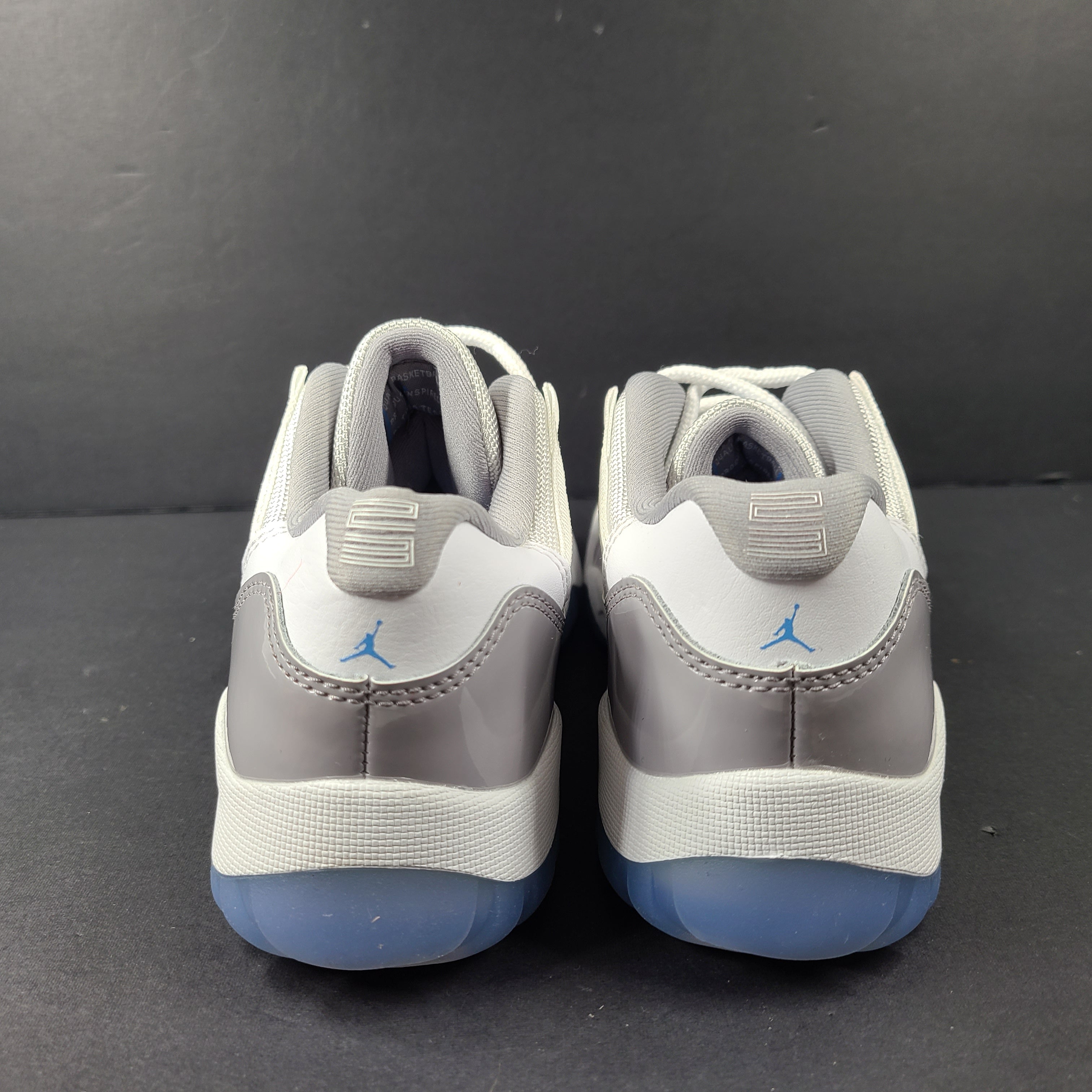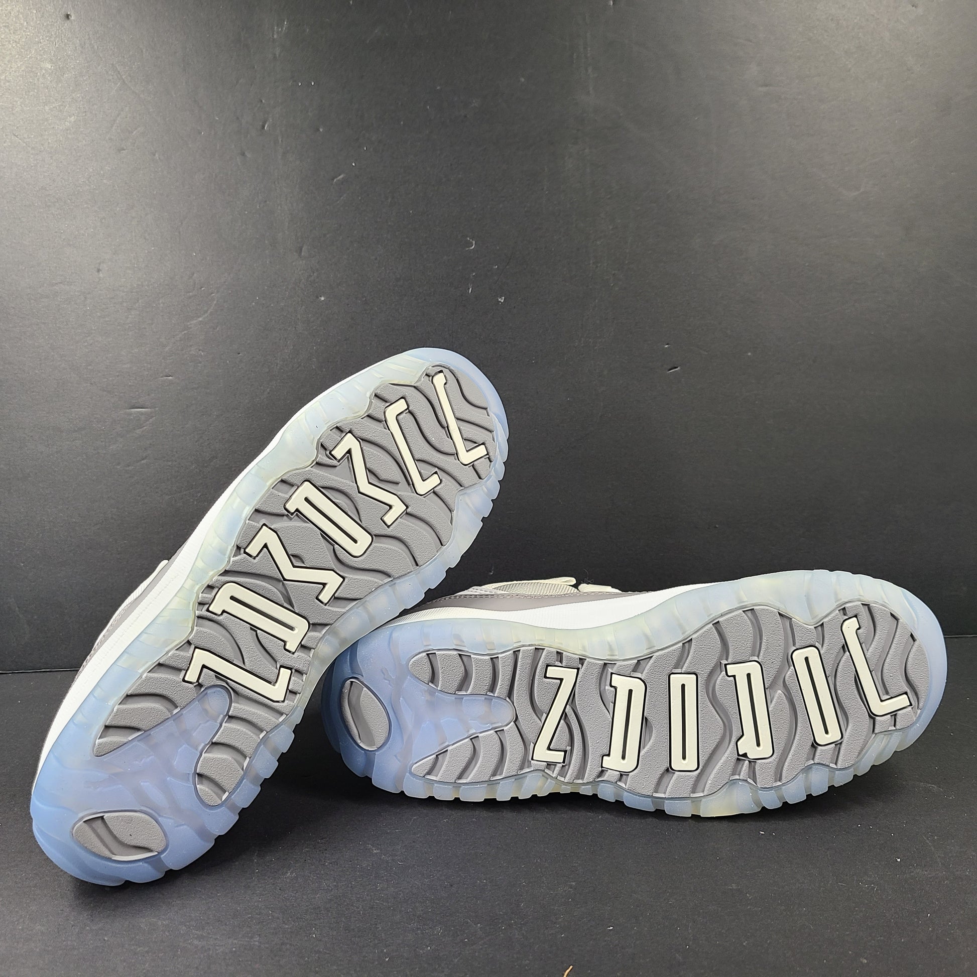 Outsole: Clear, translucent rubber with grey-tinged traction pods and an exposed carbon fiber shank plate—designed to replicate the original AJ11 traction and flexibility in a compact, youth-friendly form.