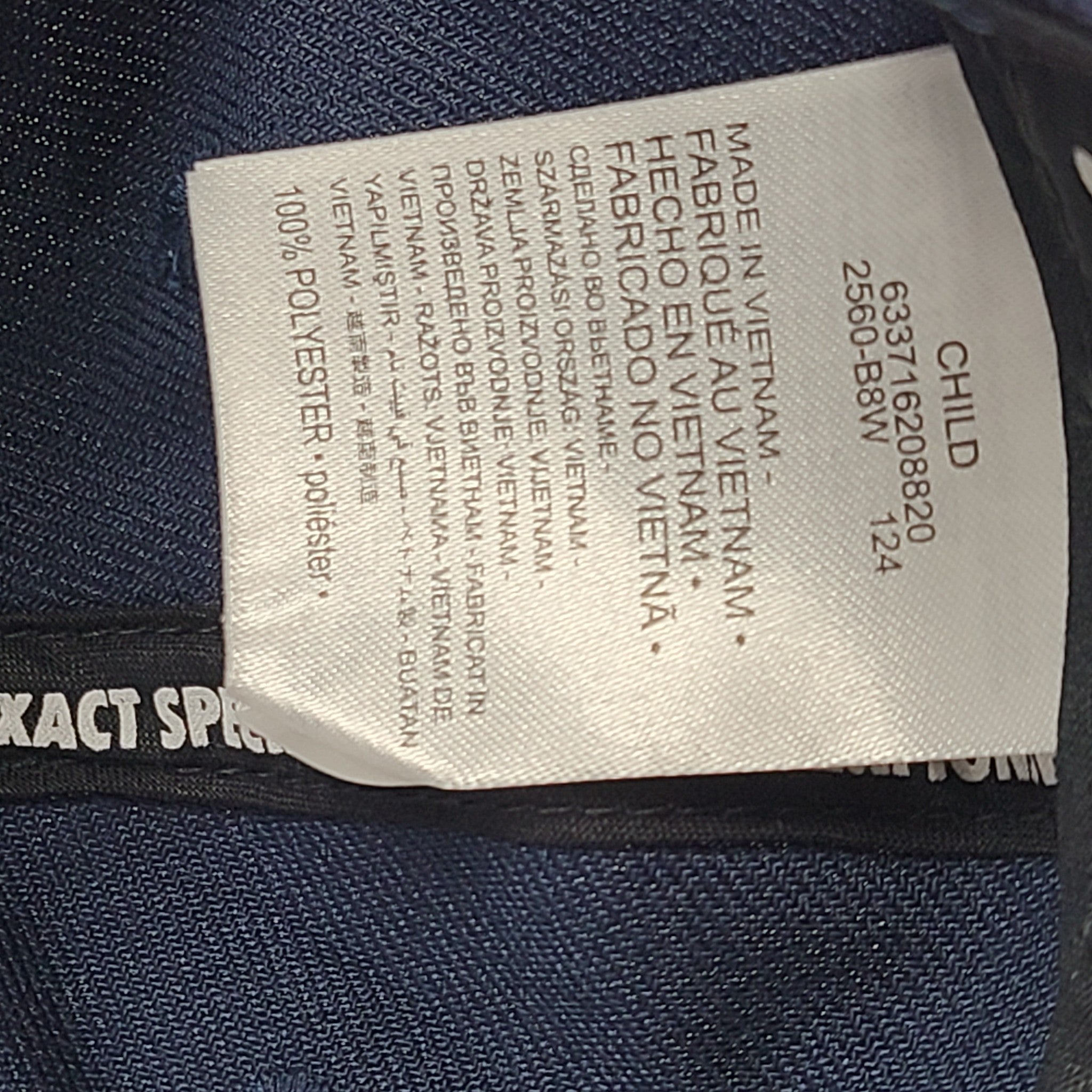 - Fabric: Body/back of front panel: 100% polyester. Underbill: 100% cotton.