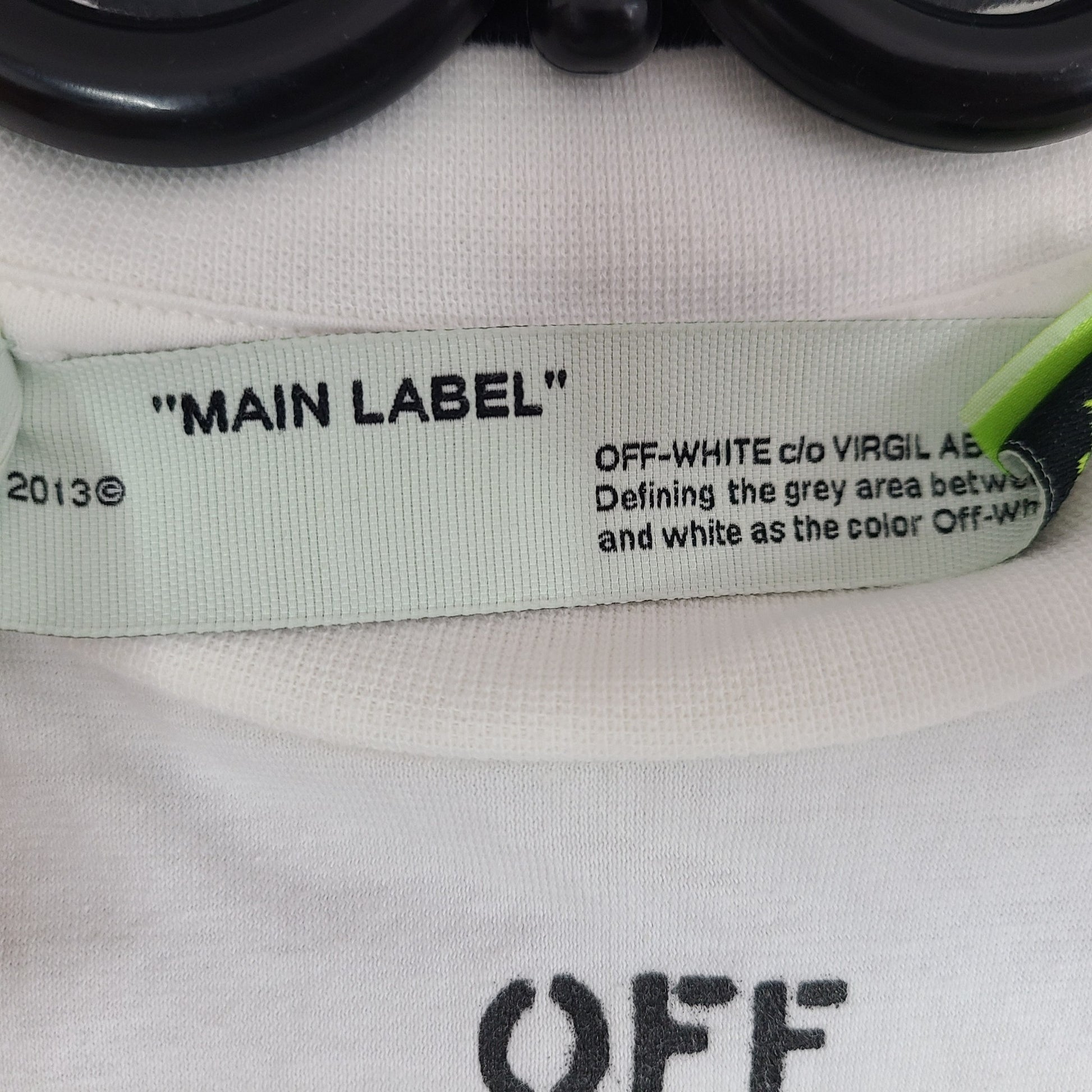 The classic black and white color combination ensures versatility, making it perfect for any occasion. Elevate your wardrobe with this unique and fashion-forward t-shirt by Off-White. It has the brand name on the front and the brand image across the back on the back.
