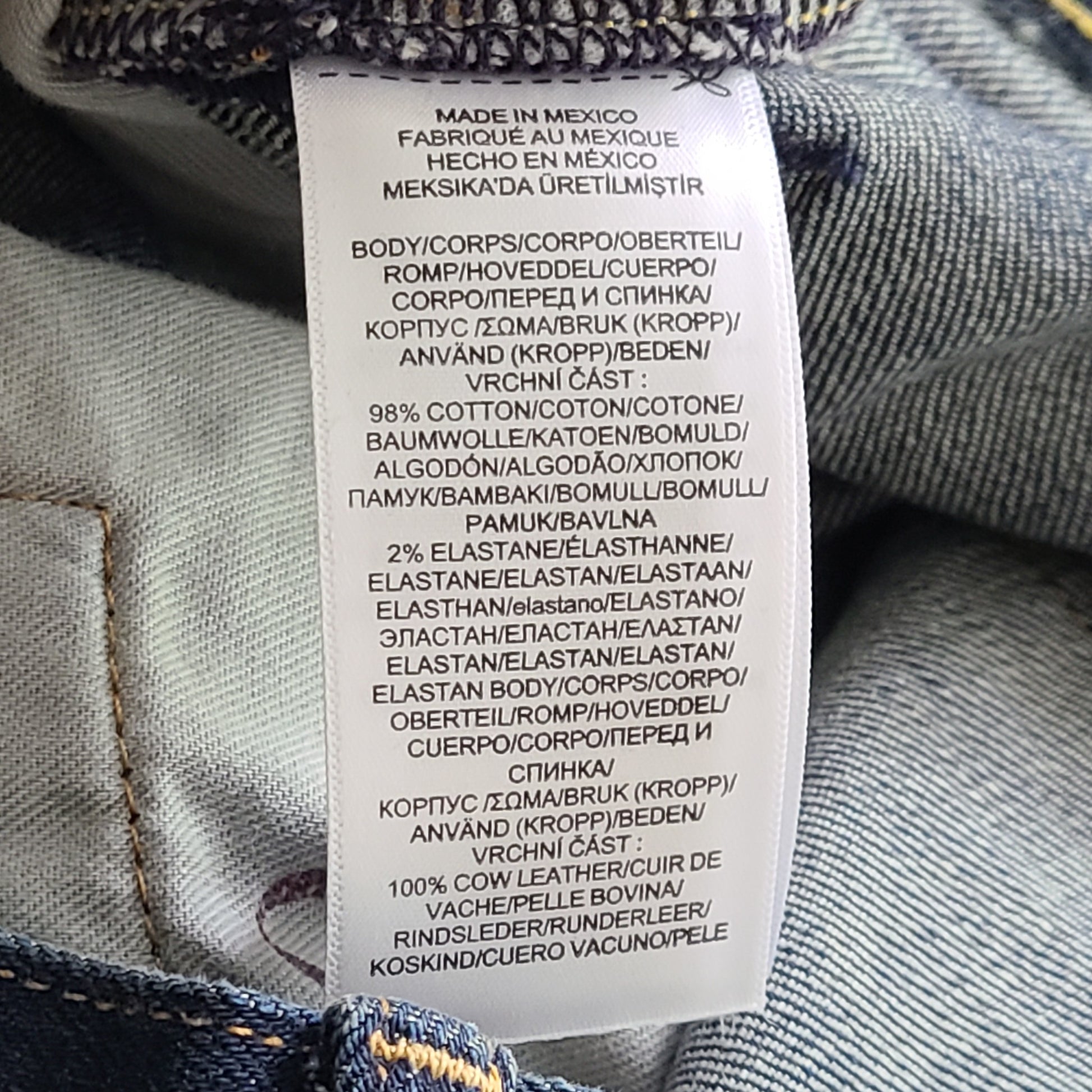 Shell: 100% cotton. Patch: 100% cow leather.