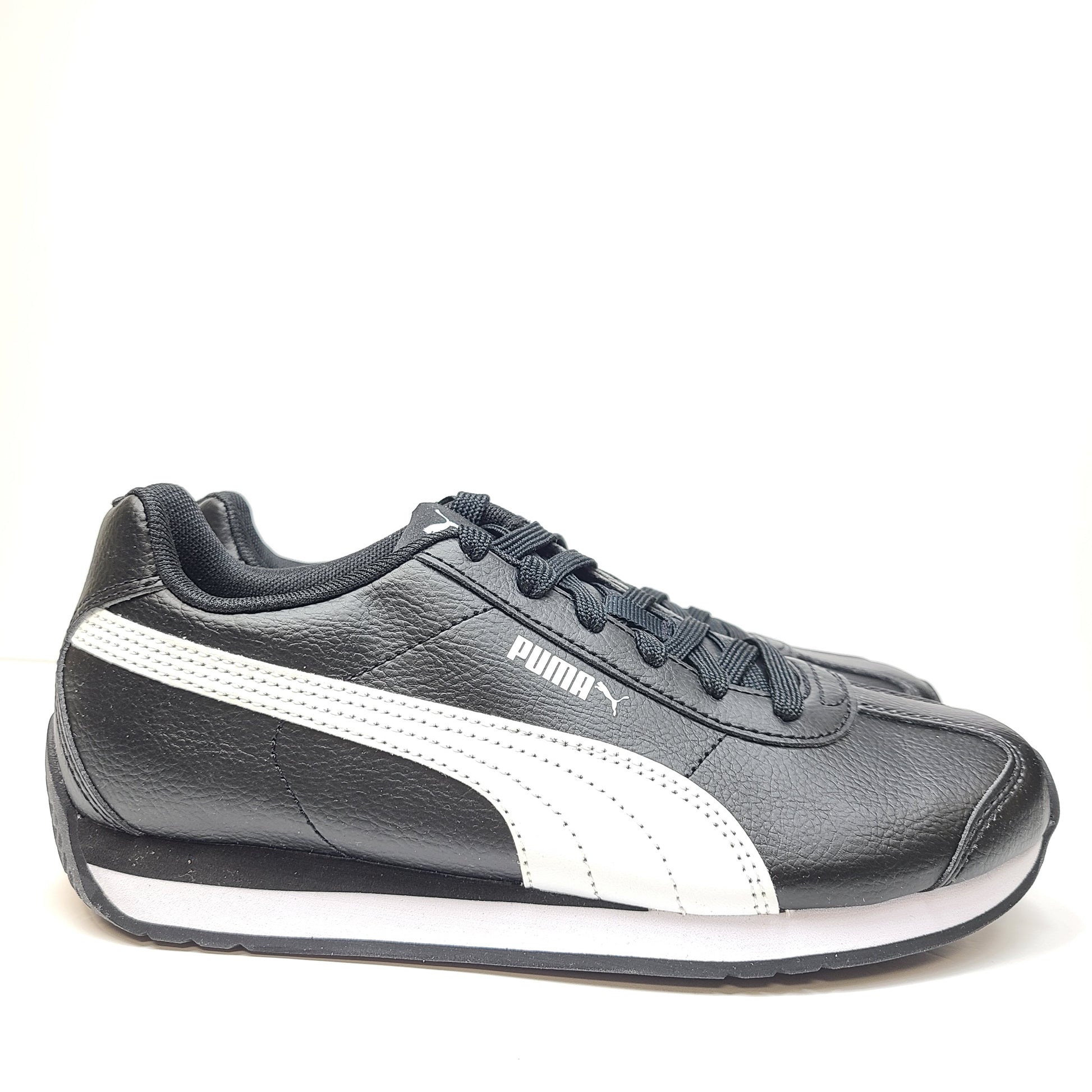 Description: The Puma Turin 3 GS Black / White sneakers exemplify a blend of classic design and contemporary comfort, ideal for those seeking a versatile and stylish addition to their footwear collection. The timeless black and white color scheme offers a sleek, minimalist aesthetic that seamlessly complements a wide range of outfits.
