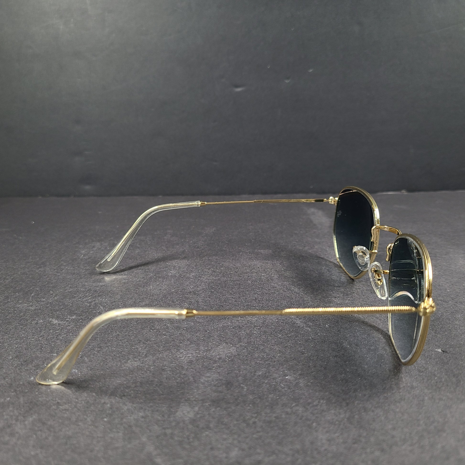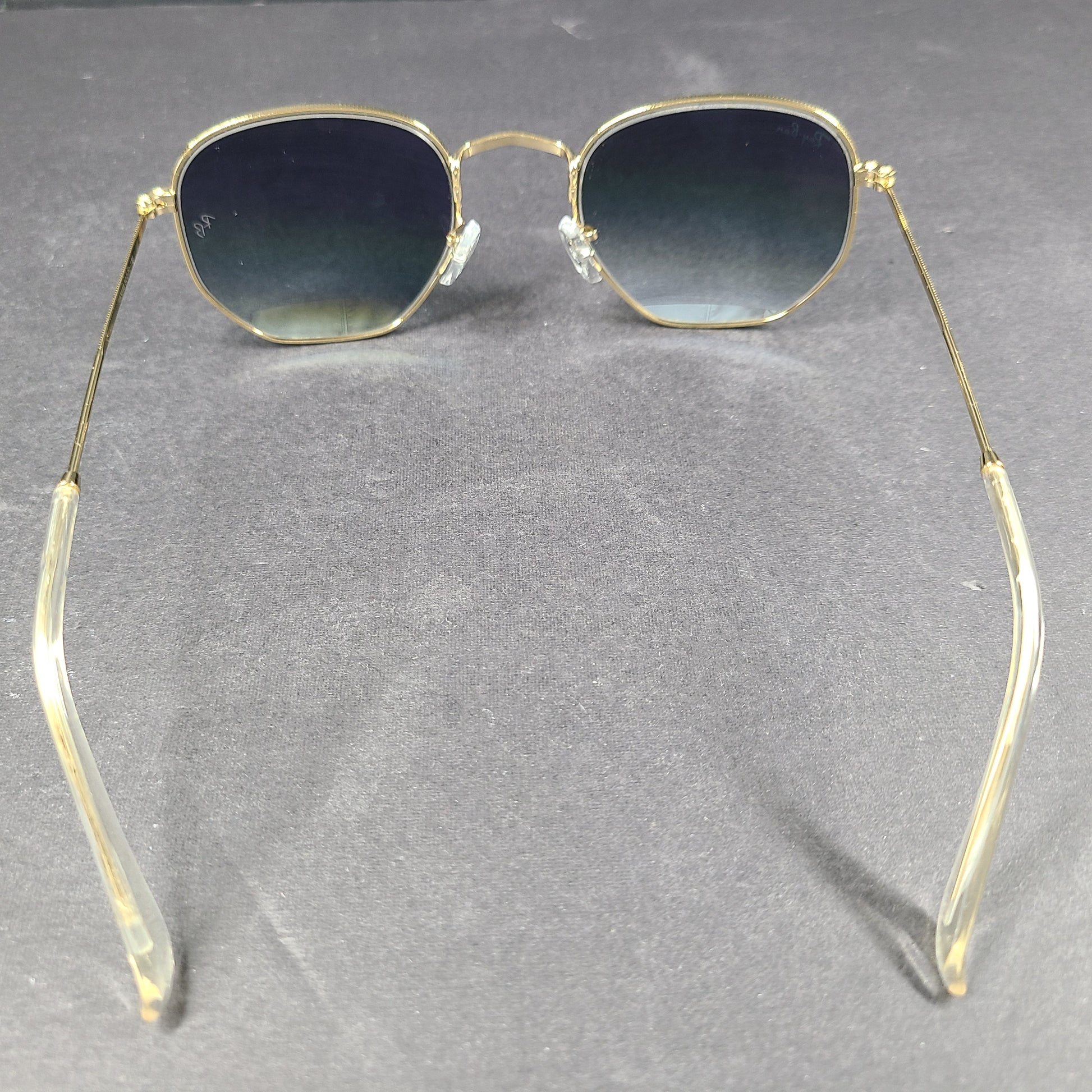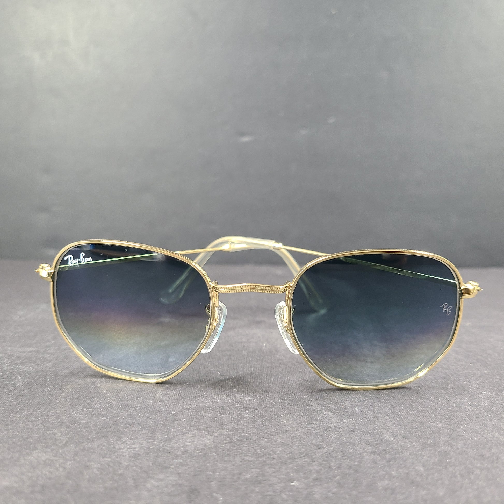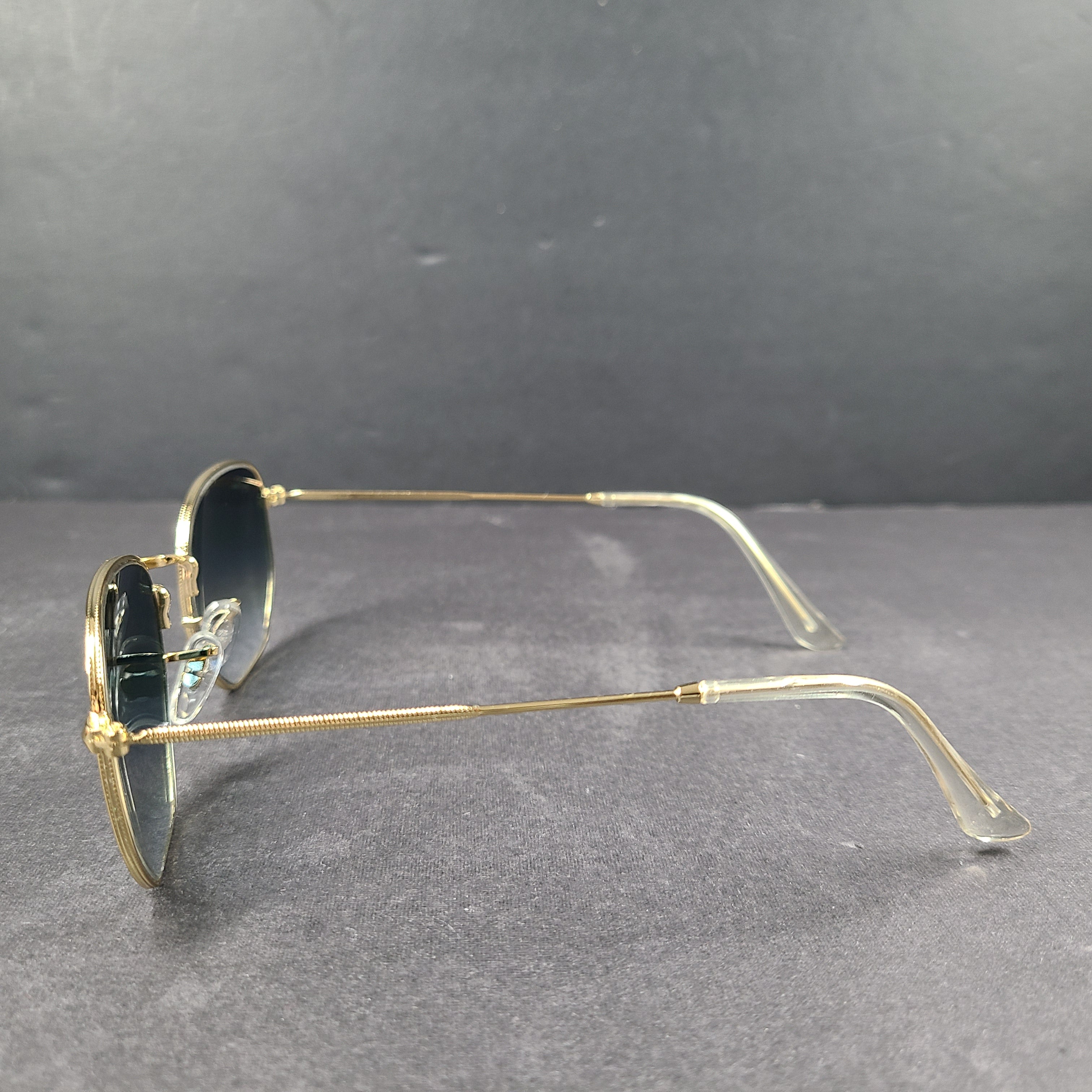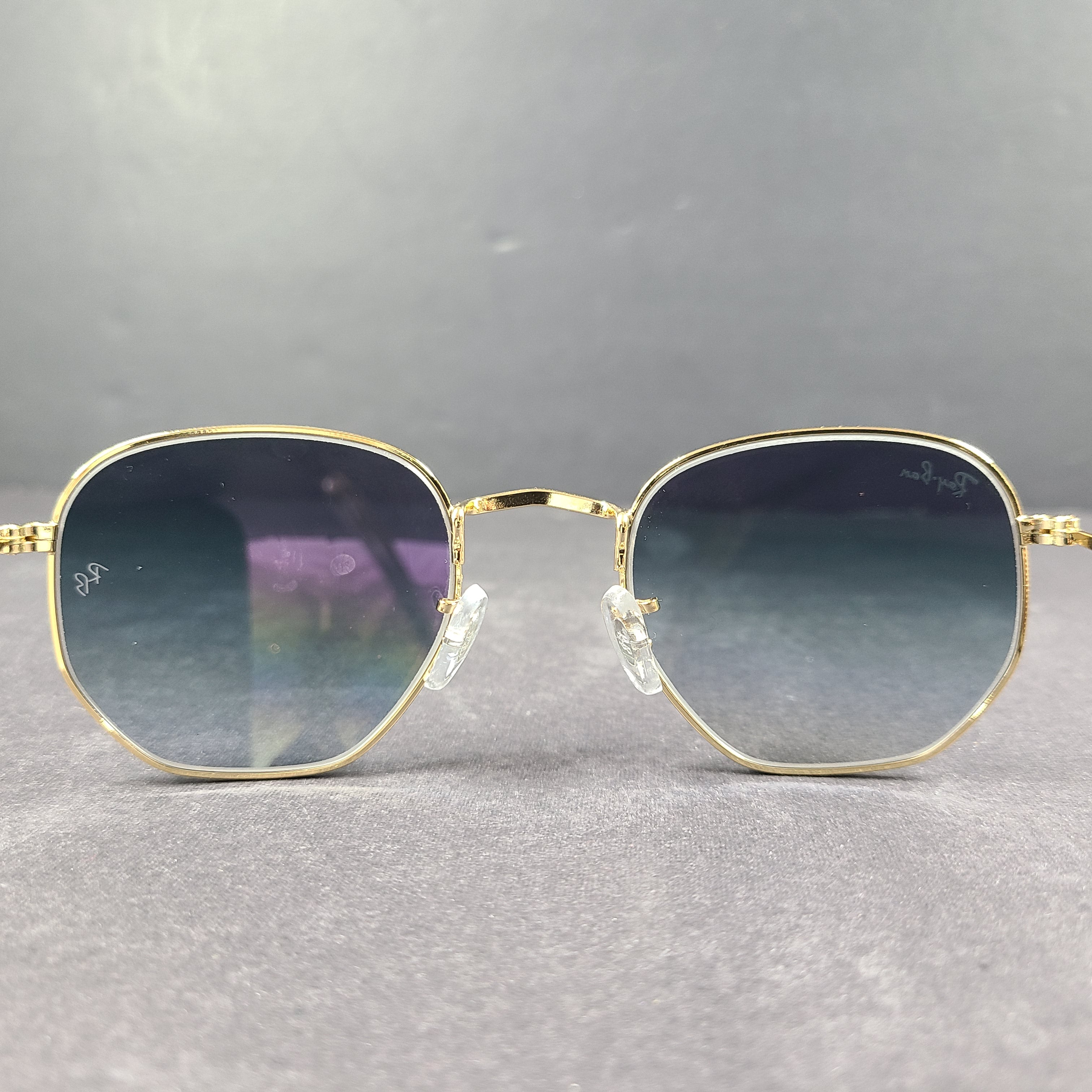 - Gold frame with blue lenses