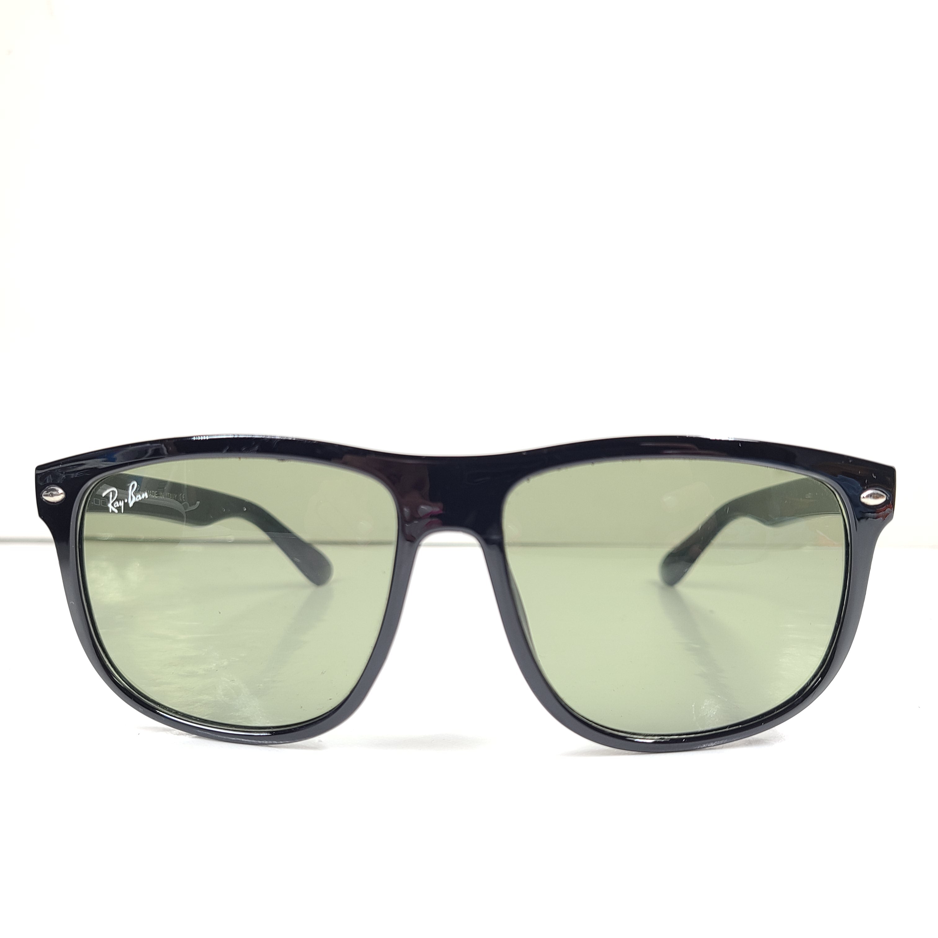 Description: These stylish Ray-Ban sunglasses feature a black frame and green lenses, offering bold fashion with larger rounded square lenses.