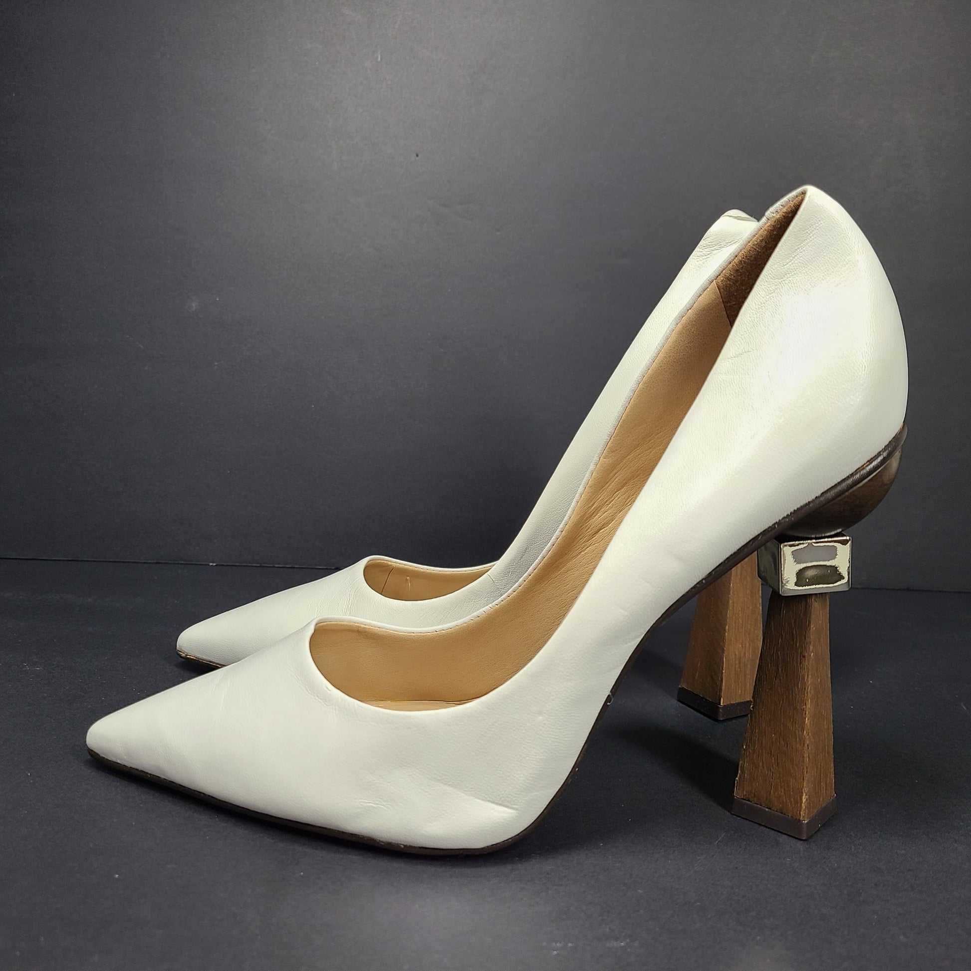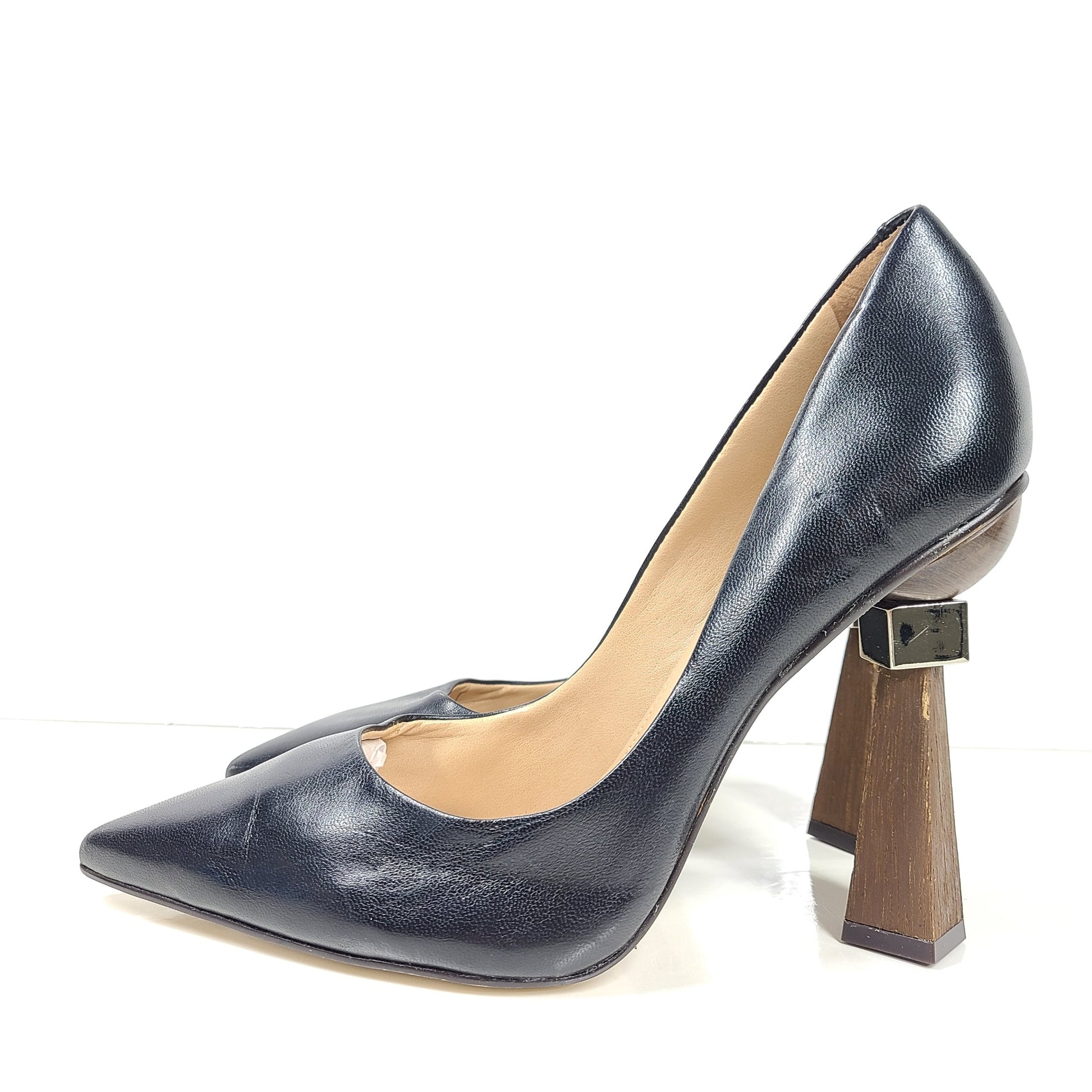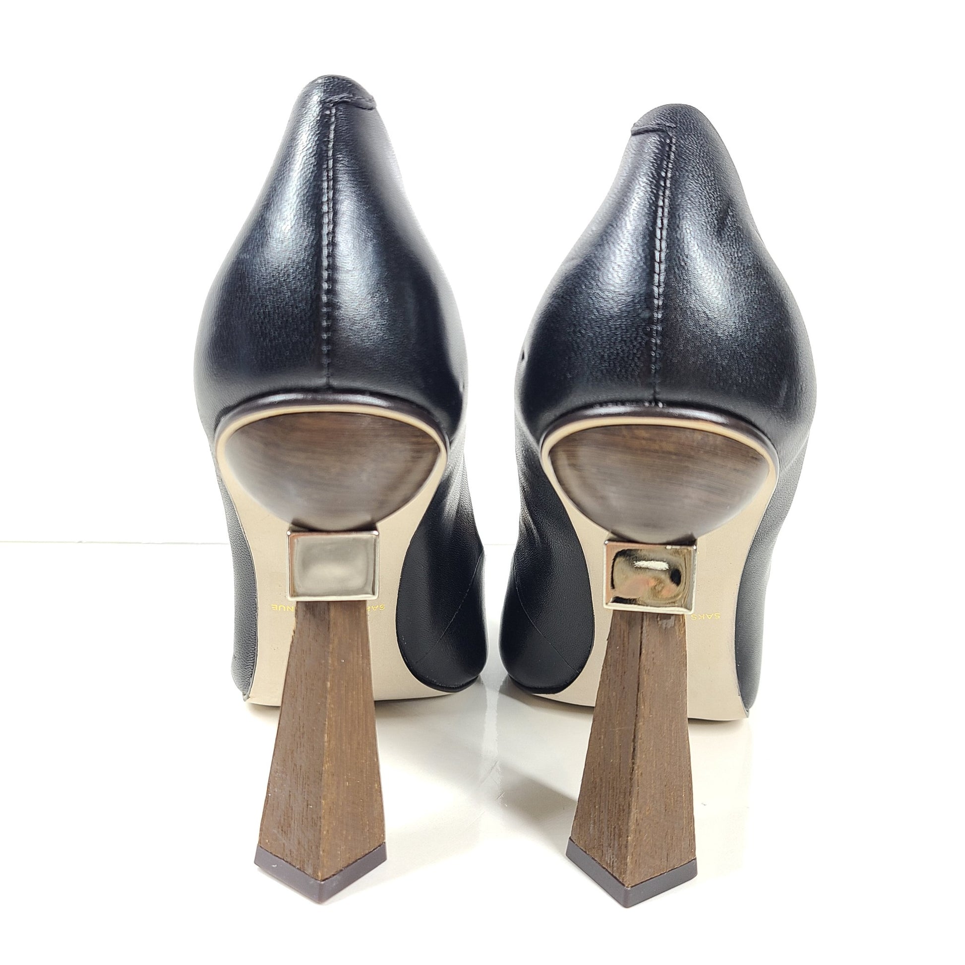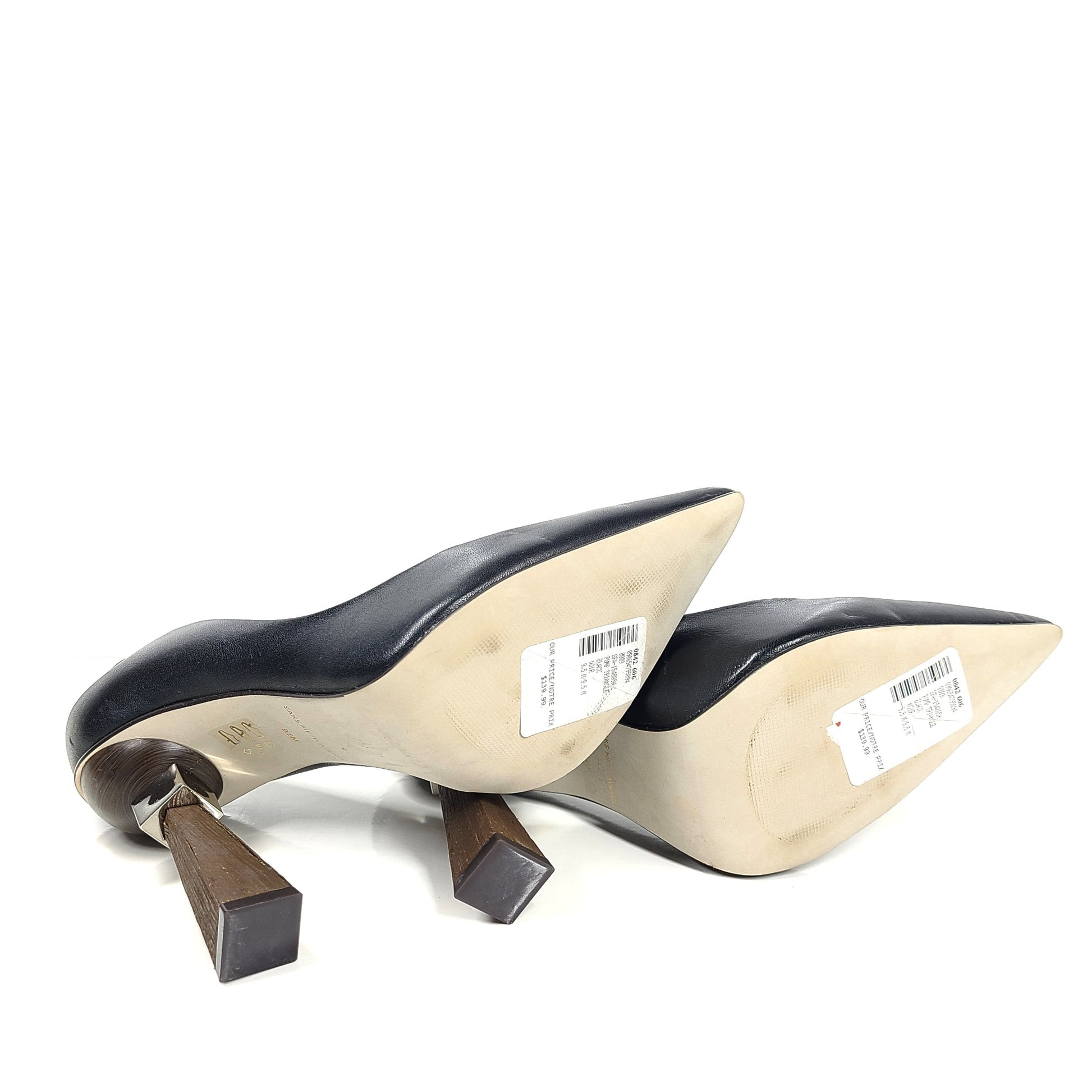 Saks Fifth Avenue Women's Geometric Triangle Heel Leather Pumps Shoes Sz 9.5