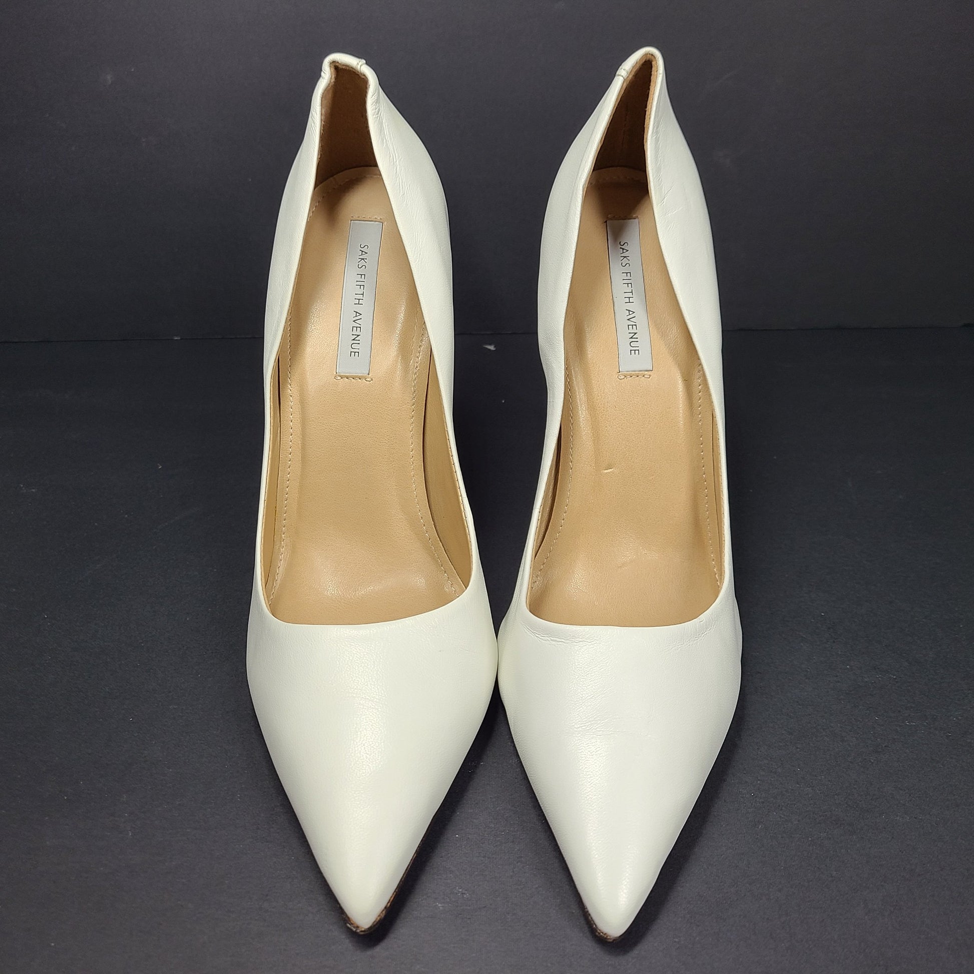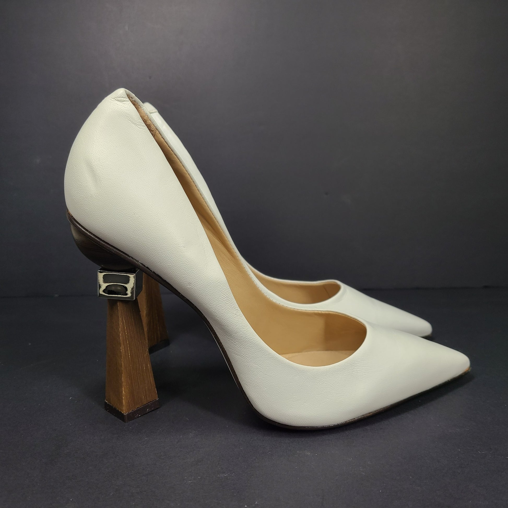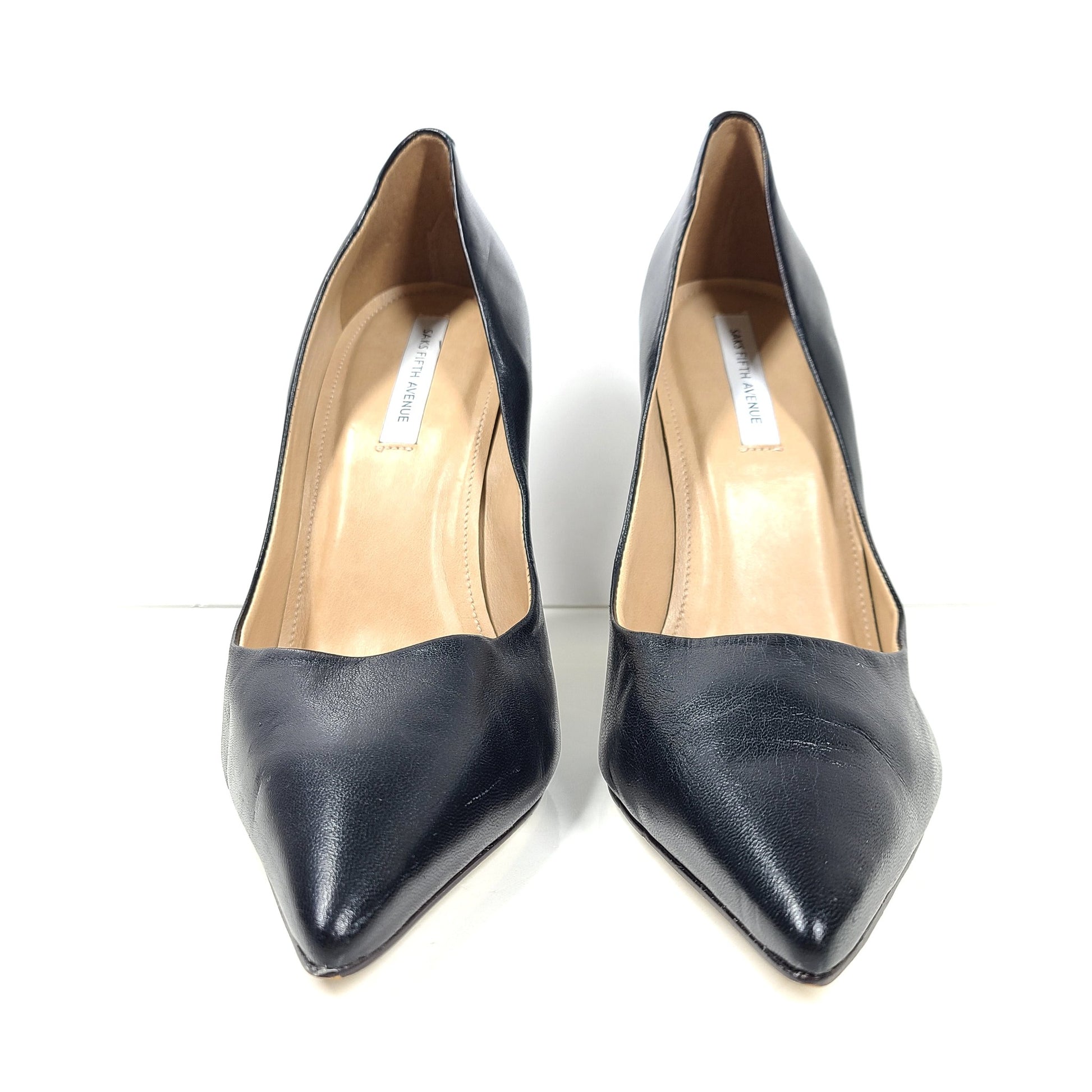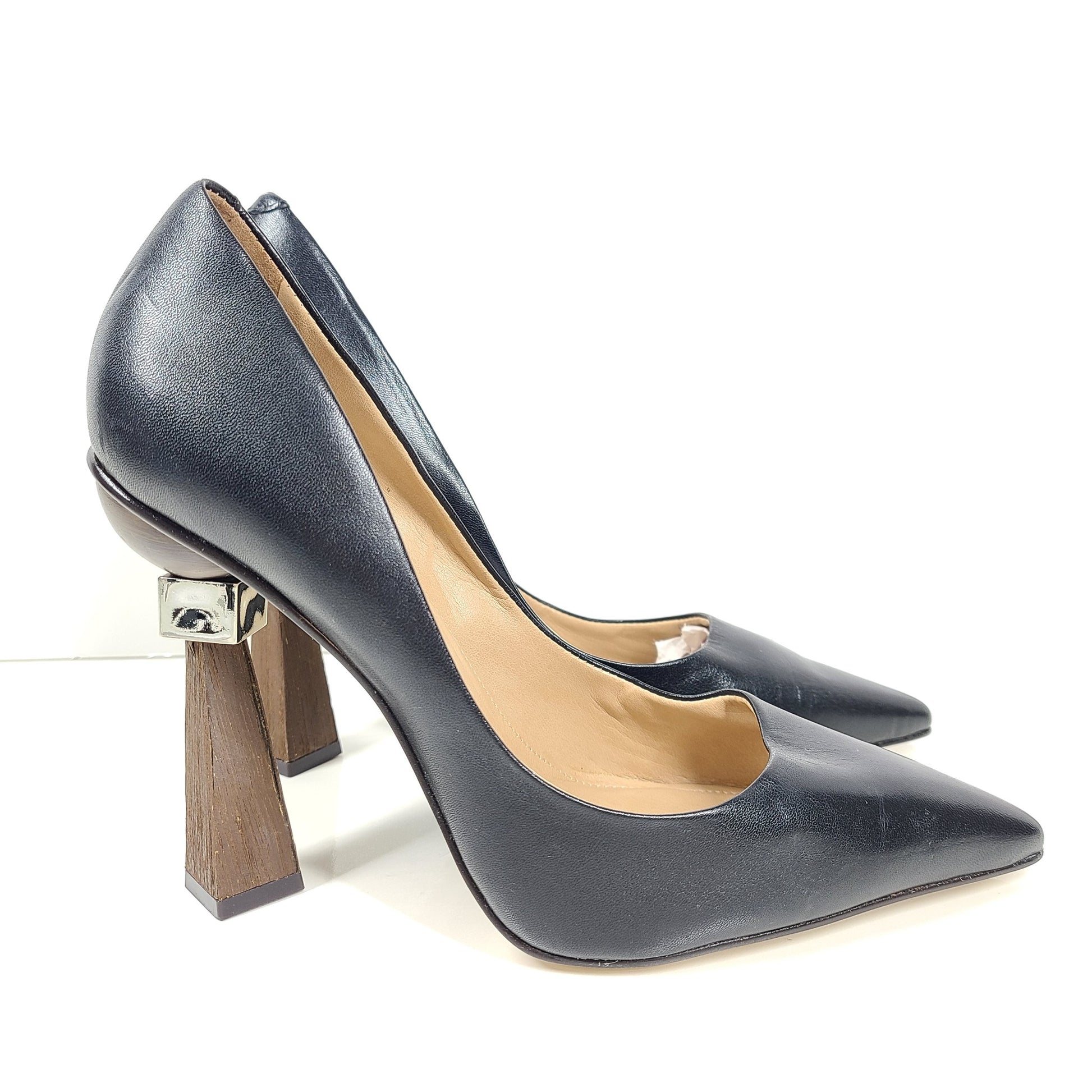 Saks Fifth Avenue Women's Geometric Triangle Heel Leather Pumps Shoes Sz 9.5