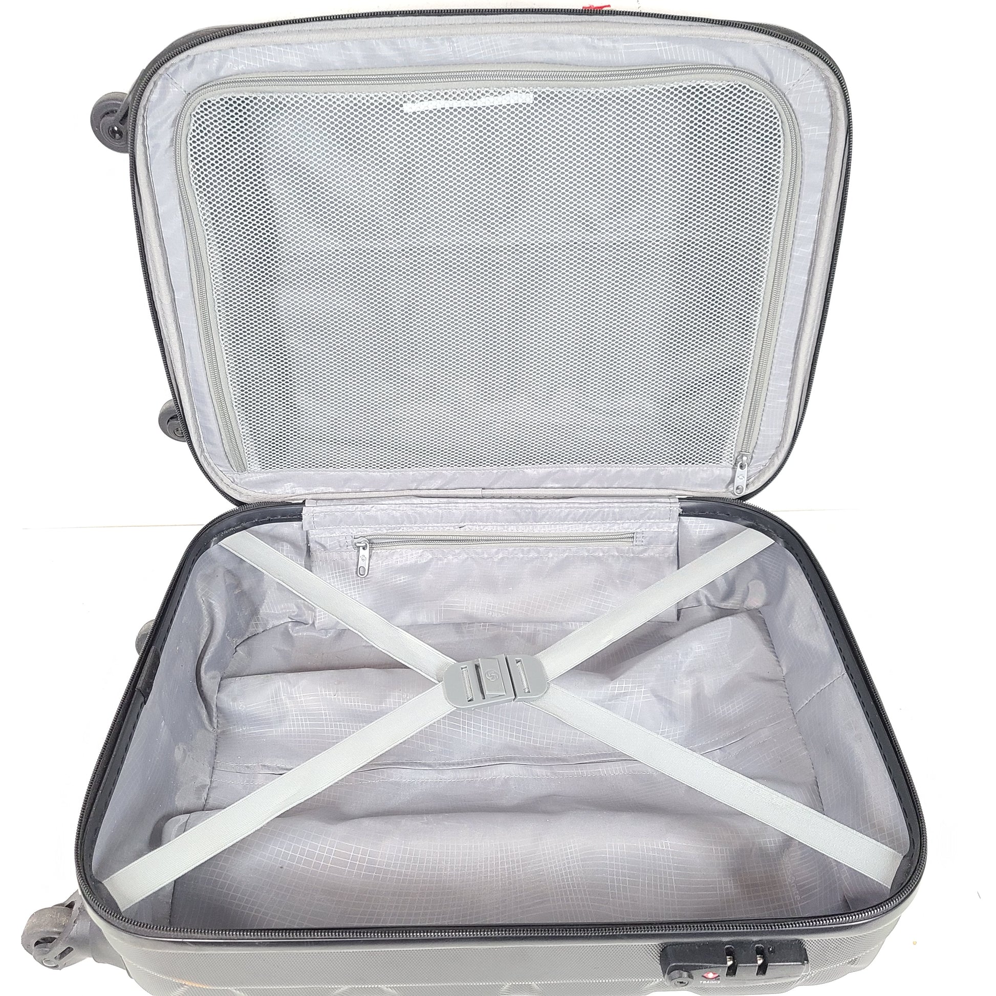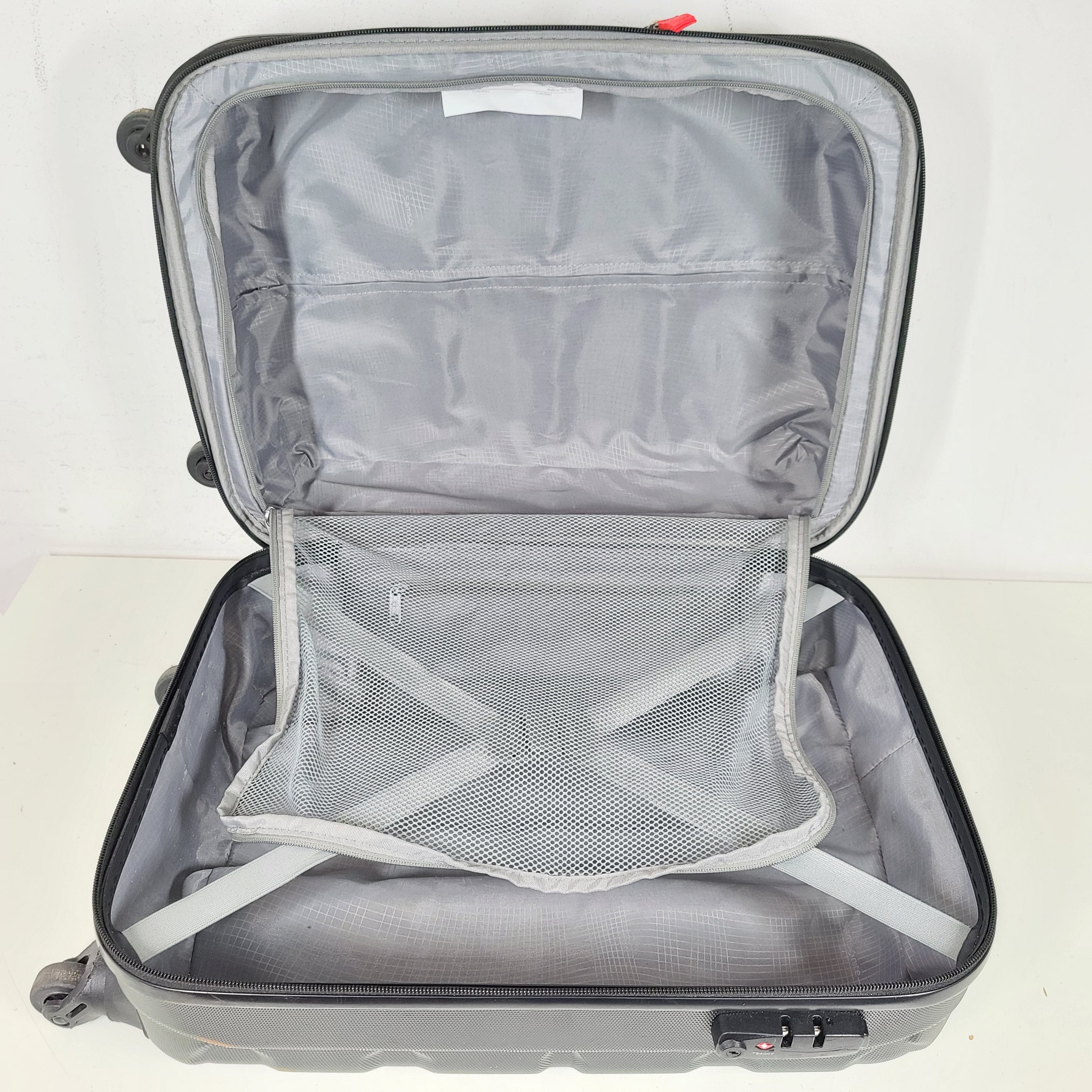 Description: This Samsonite Black Spinner Luggage 5000771 offers practicality and style in a pre-owned condition with signs of wear. Perfect for travel enthusiasts looking for a reliable luggage option.