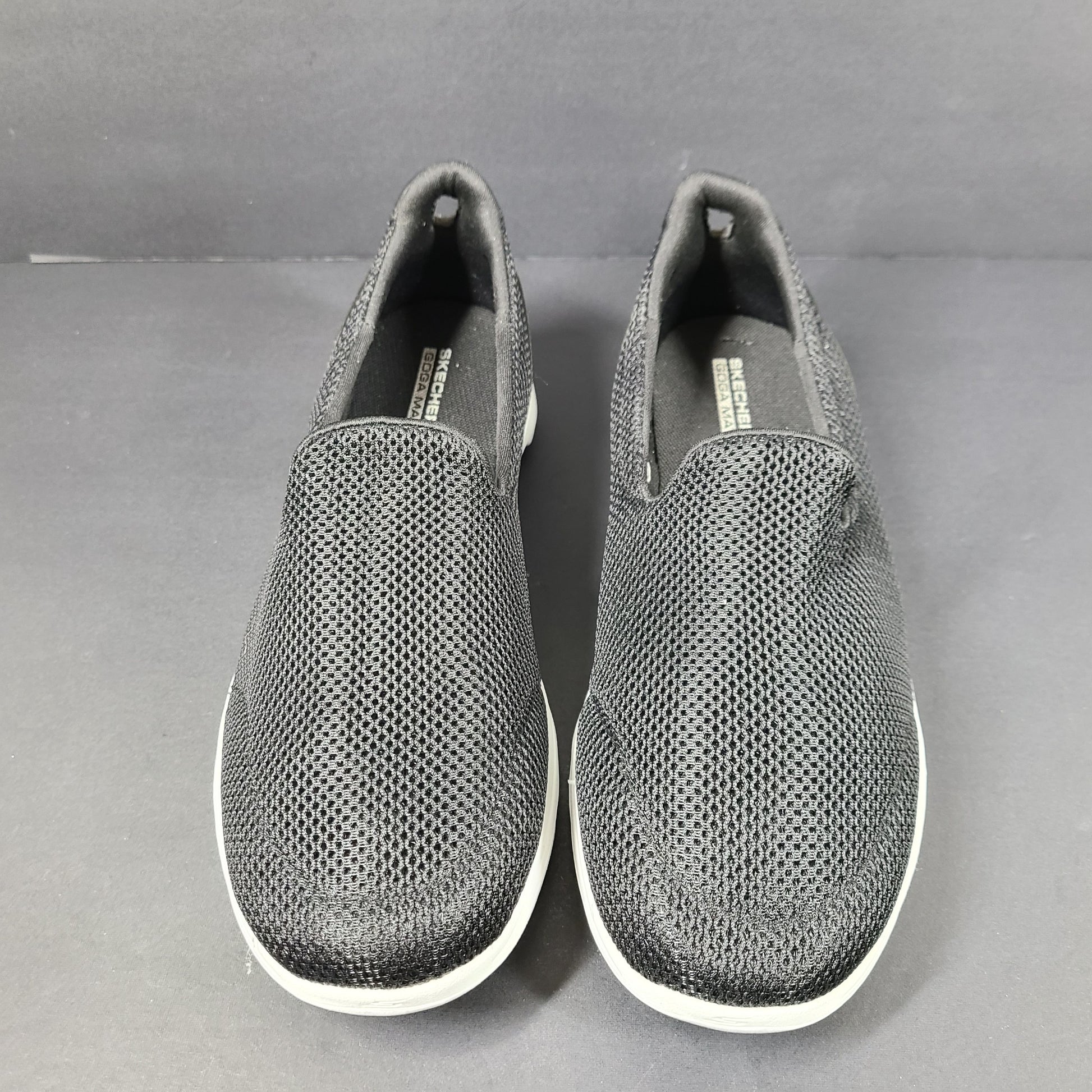 - Flexible soft knit mesh fabric upper, Air Cooled Goga Mat™ insole system for comfort.